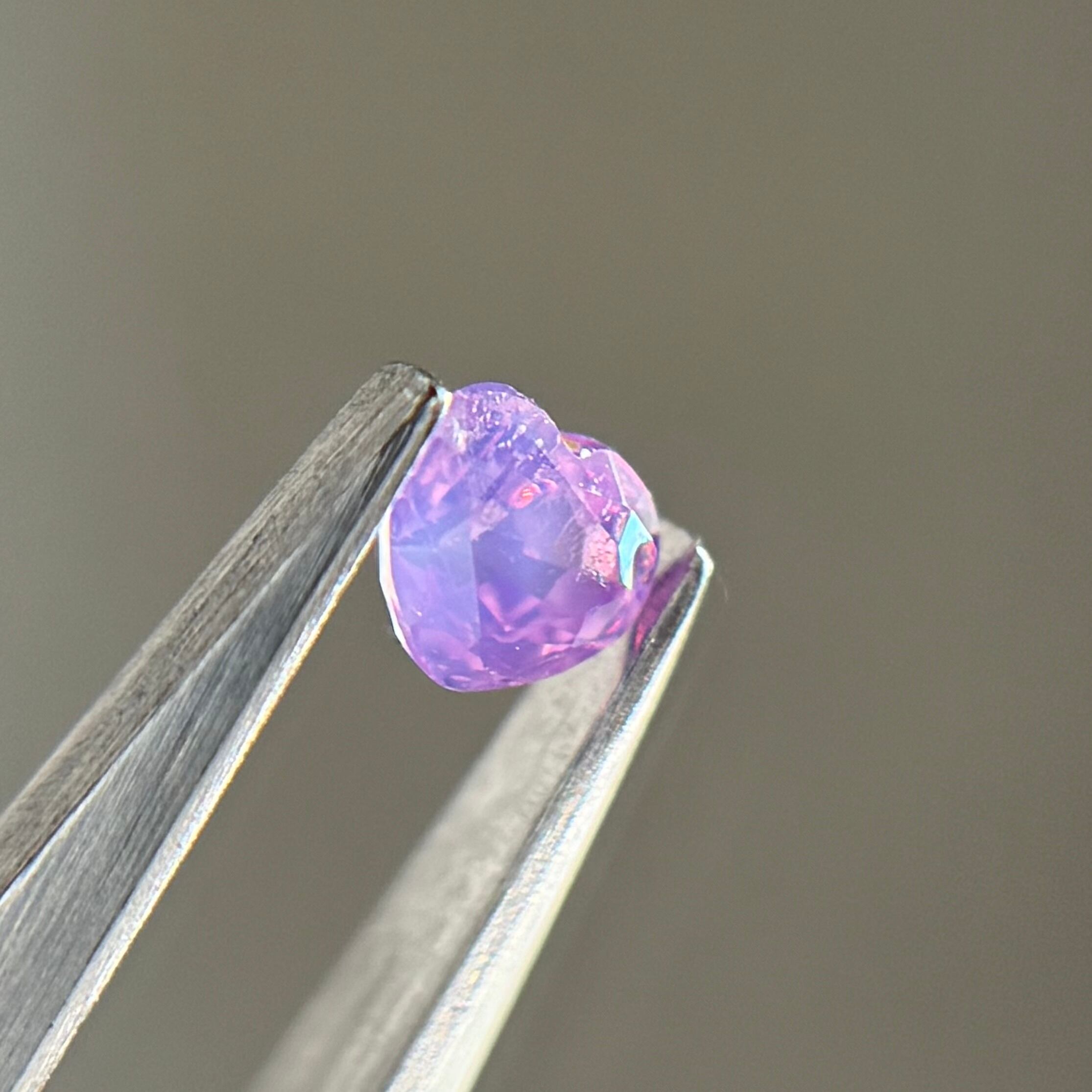 クラウド状のインクルージョンと色だまりのコントラストがまるでしましま模様のように見えるシルキーサファイアです。ミルキーな部分とシルキーな部分を楽しめます