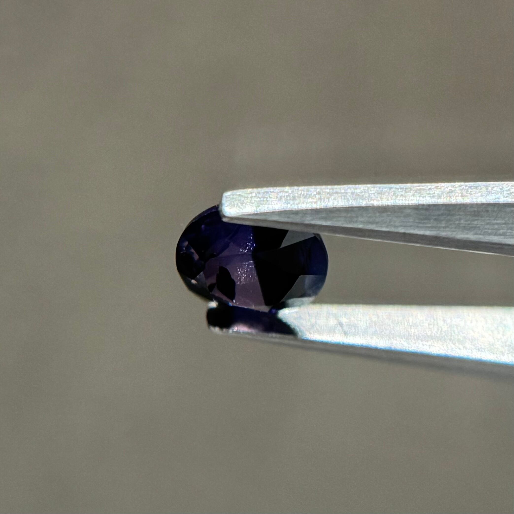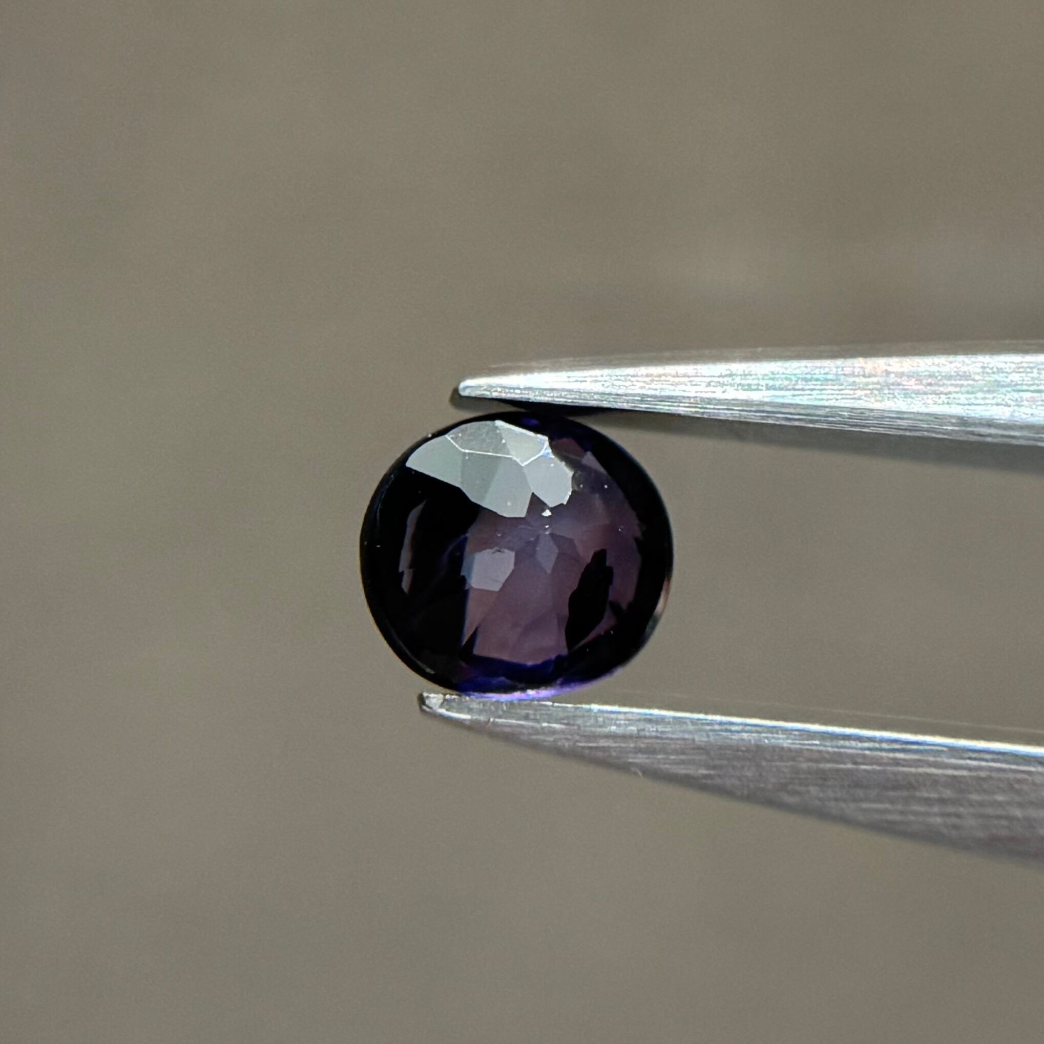 まるで夜の街のような個性派カラーのシルキーサファイアです。実はバイカラーで、青だまりがまるでビルの影のようです。角度によって暖色系のテリがまるで街に灯りが灯ったかのように幻想的に見えます