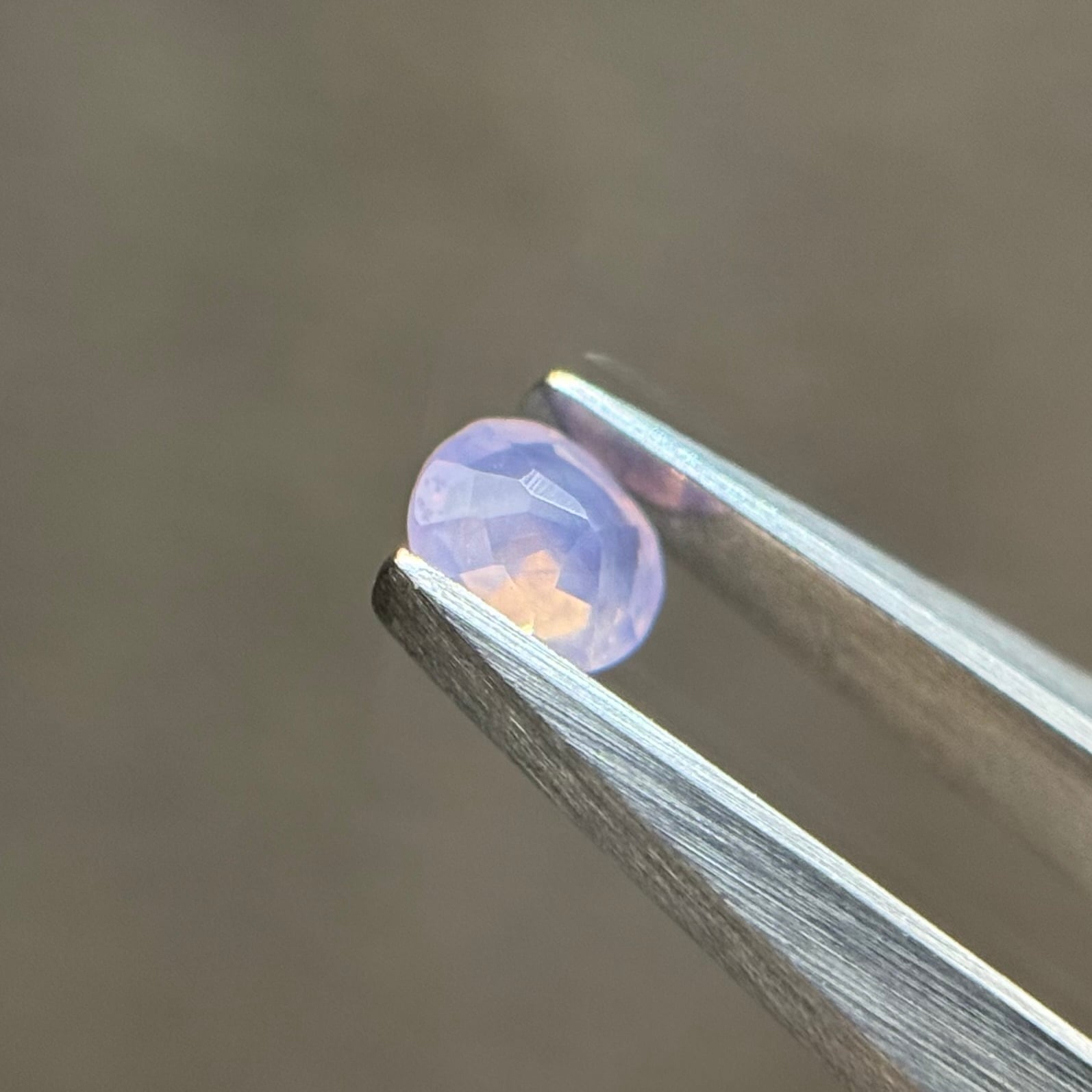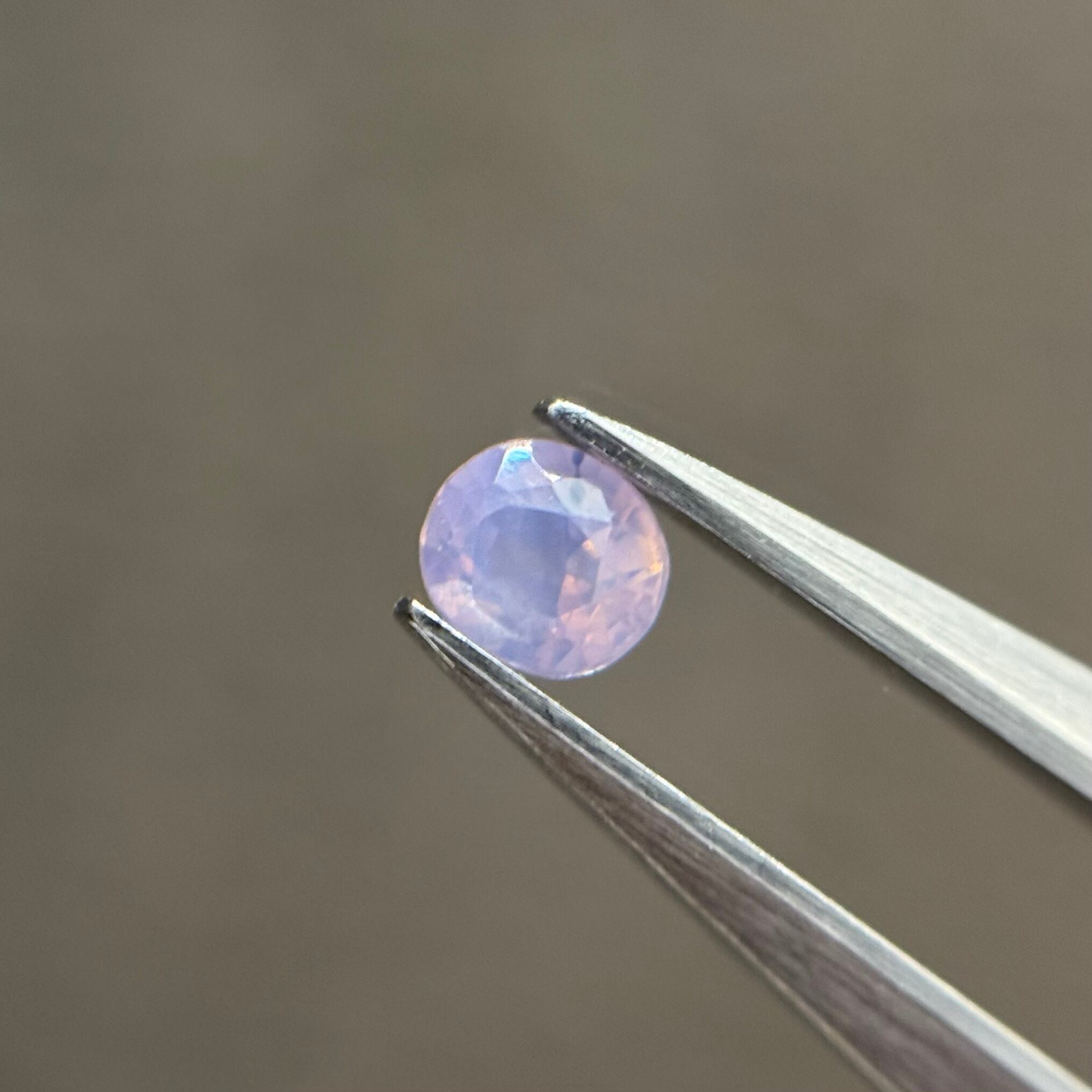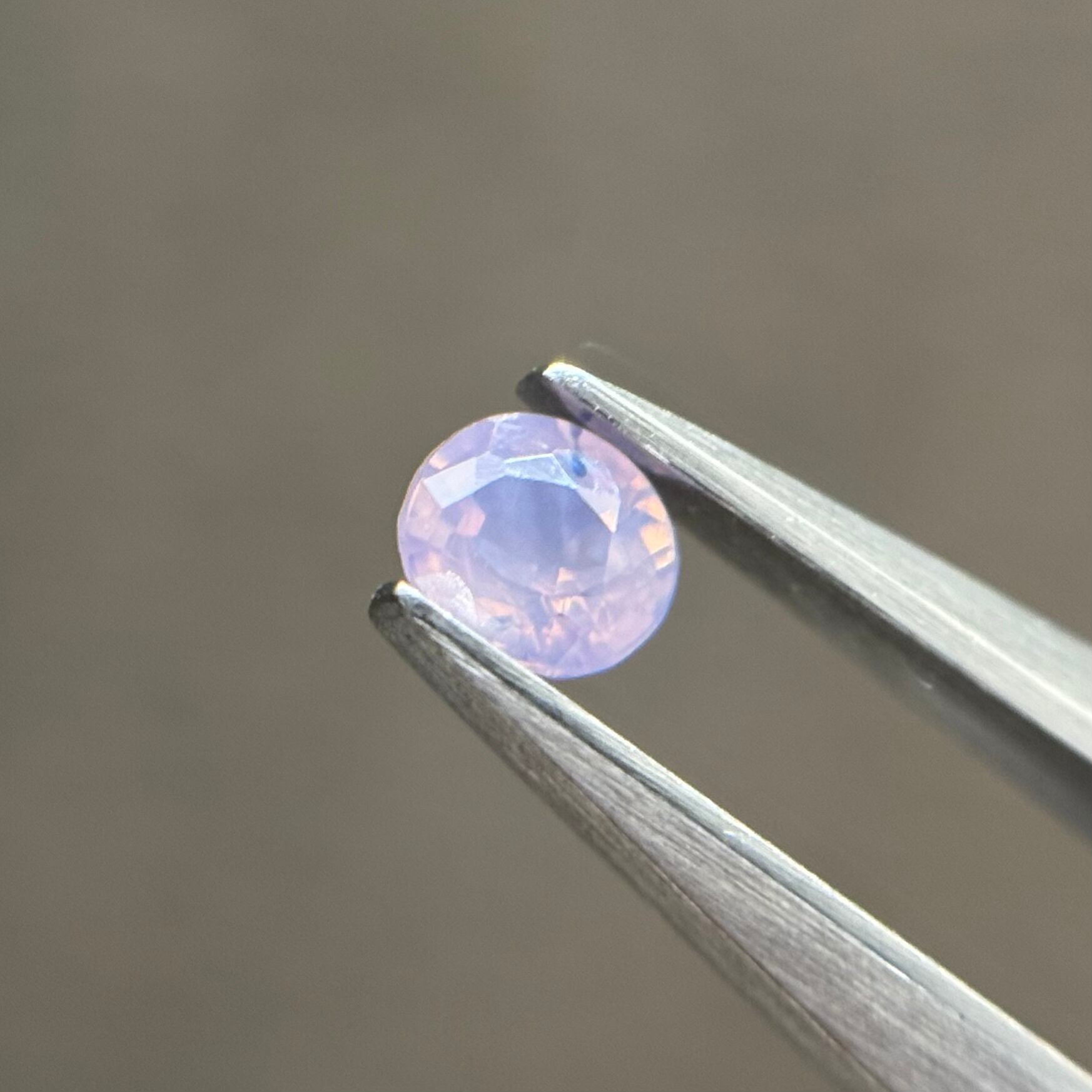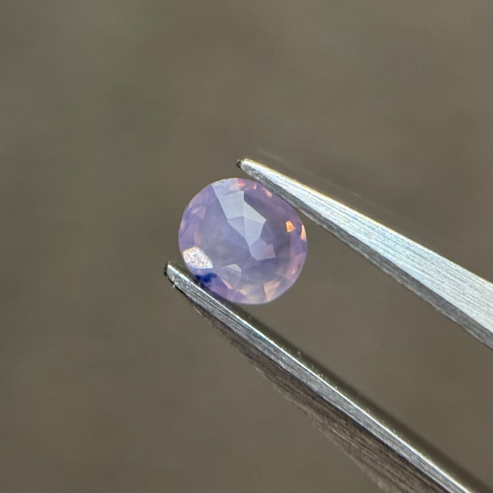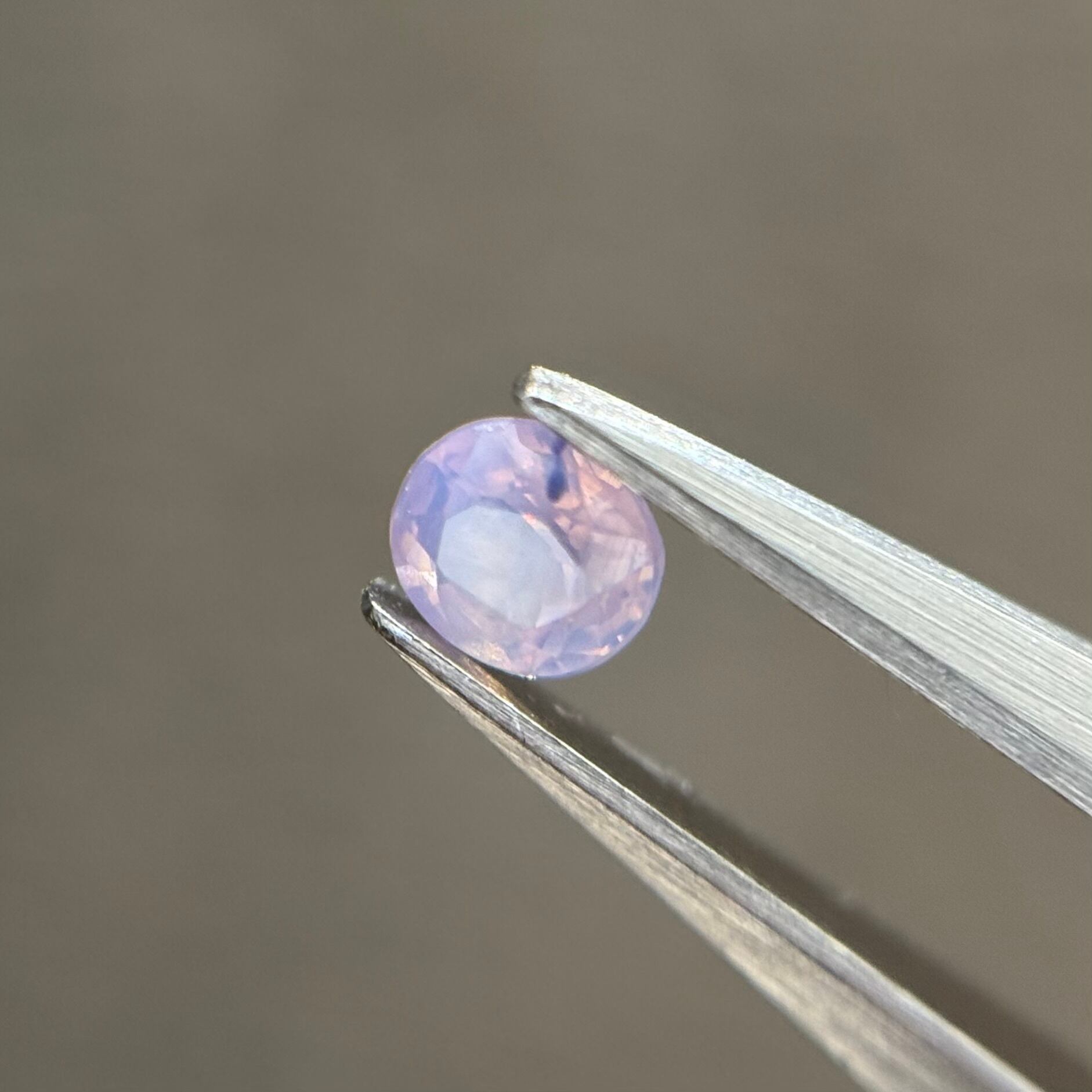 ほんのりピンクみのある淡い紫が可愛いシルキーサファイアです。小粒ですが複数色のテリがバチバチに入っているため、存在感があります