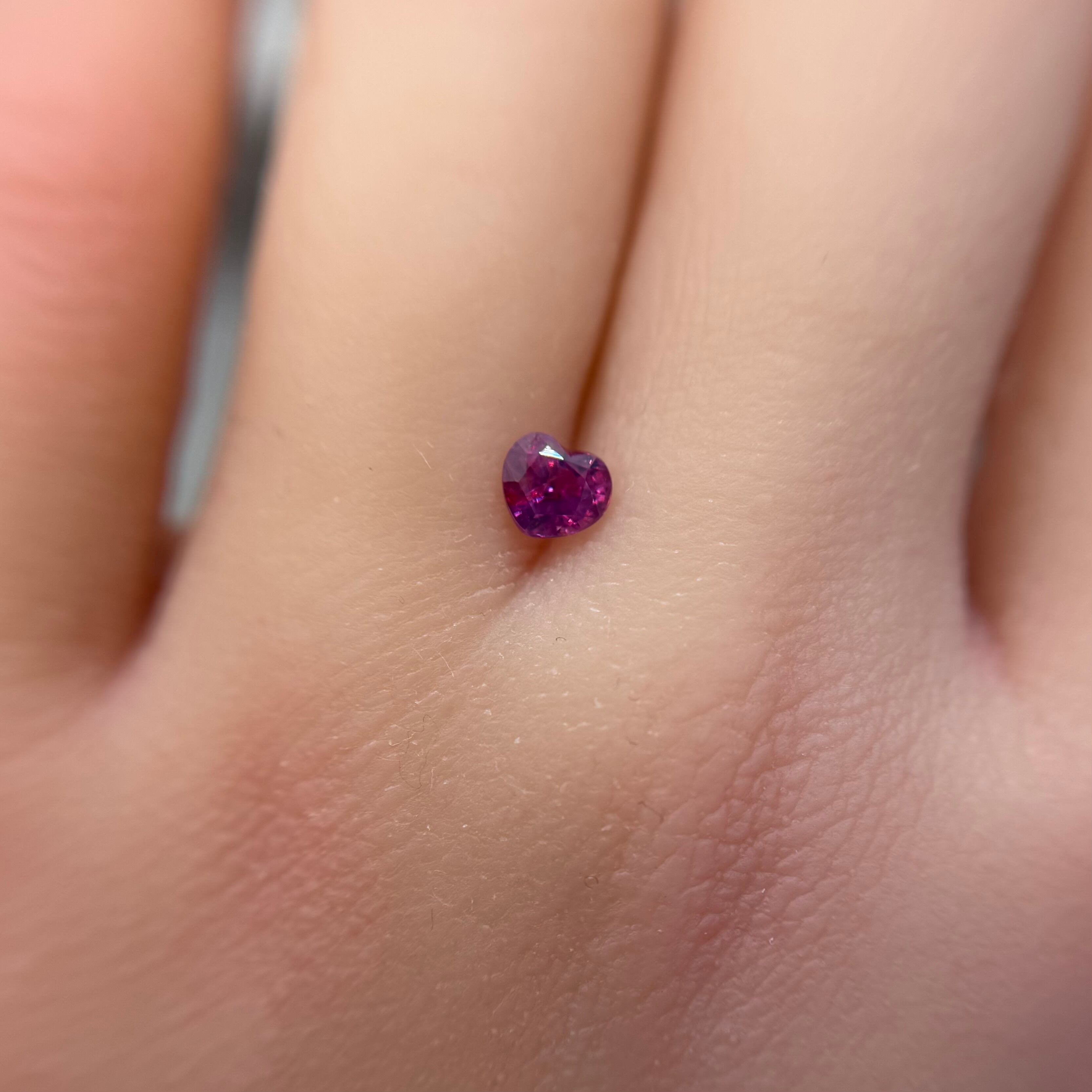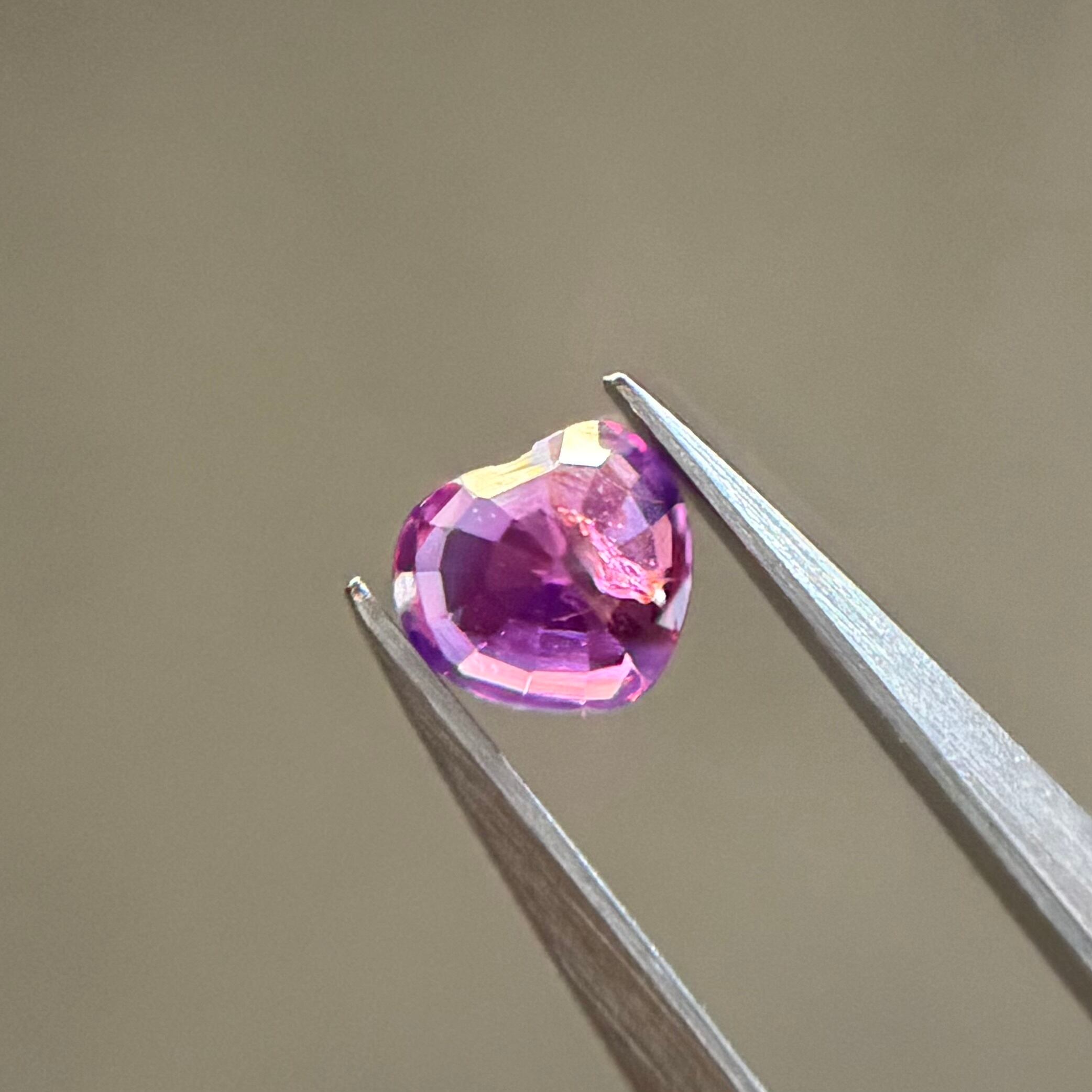 複数のインクルージョンとクラックがマーブル模様のように複雑な色合いを作り出すシルキーサファイアです。まるで少しずつ悪の色に染まりかけた、でも元々のハートを忘れない、魔法少女のアイテムに使われてそうななんとも奥深い色合いを楽しめます