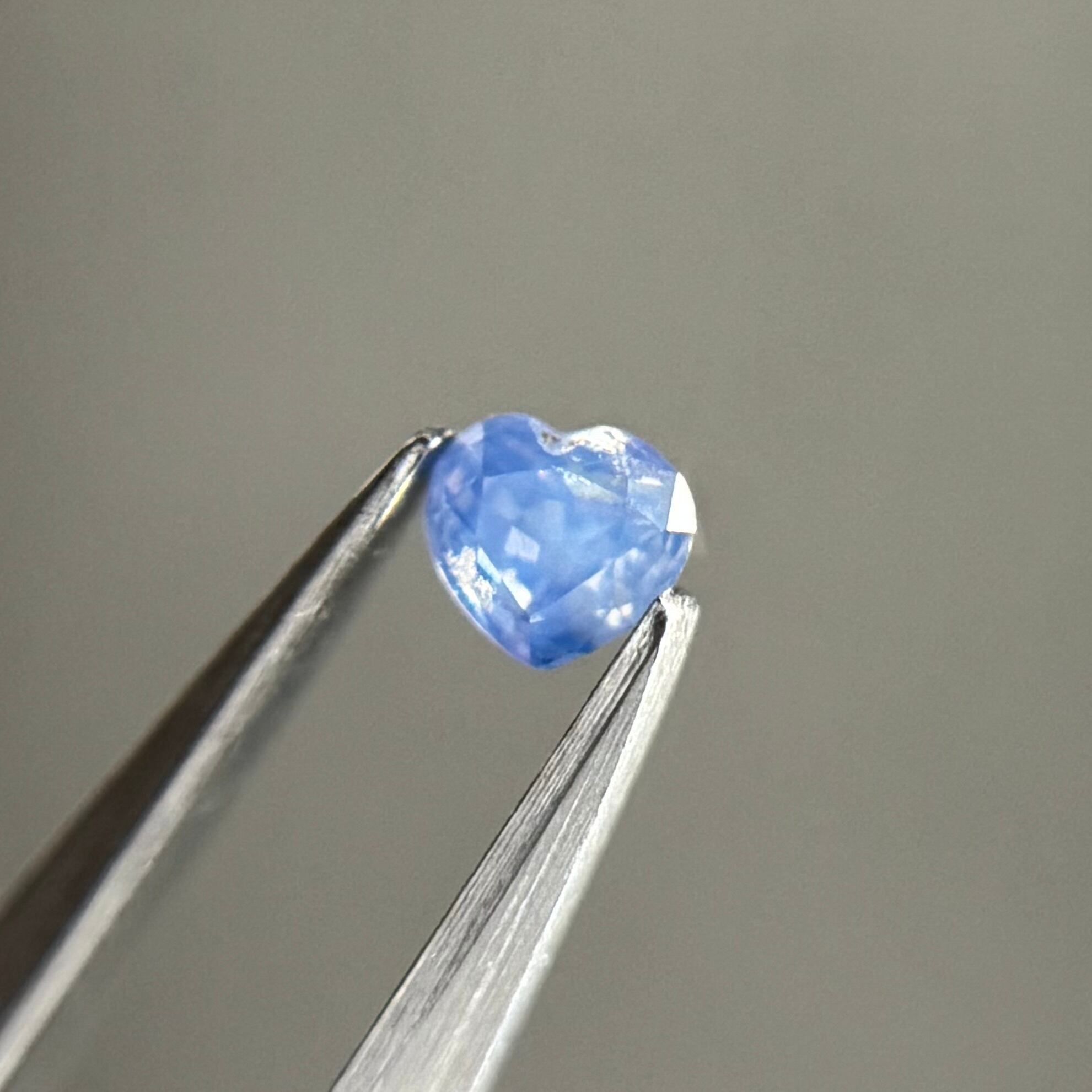ミルキーブルーに優しい色合いのテリが可愛らしいシルキーサファイアです。小さいですがハートのシェイプも綺麗です