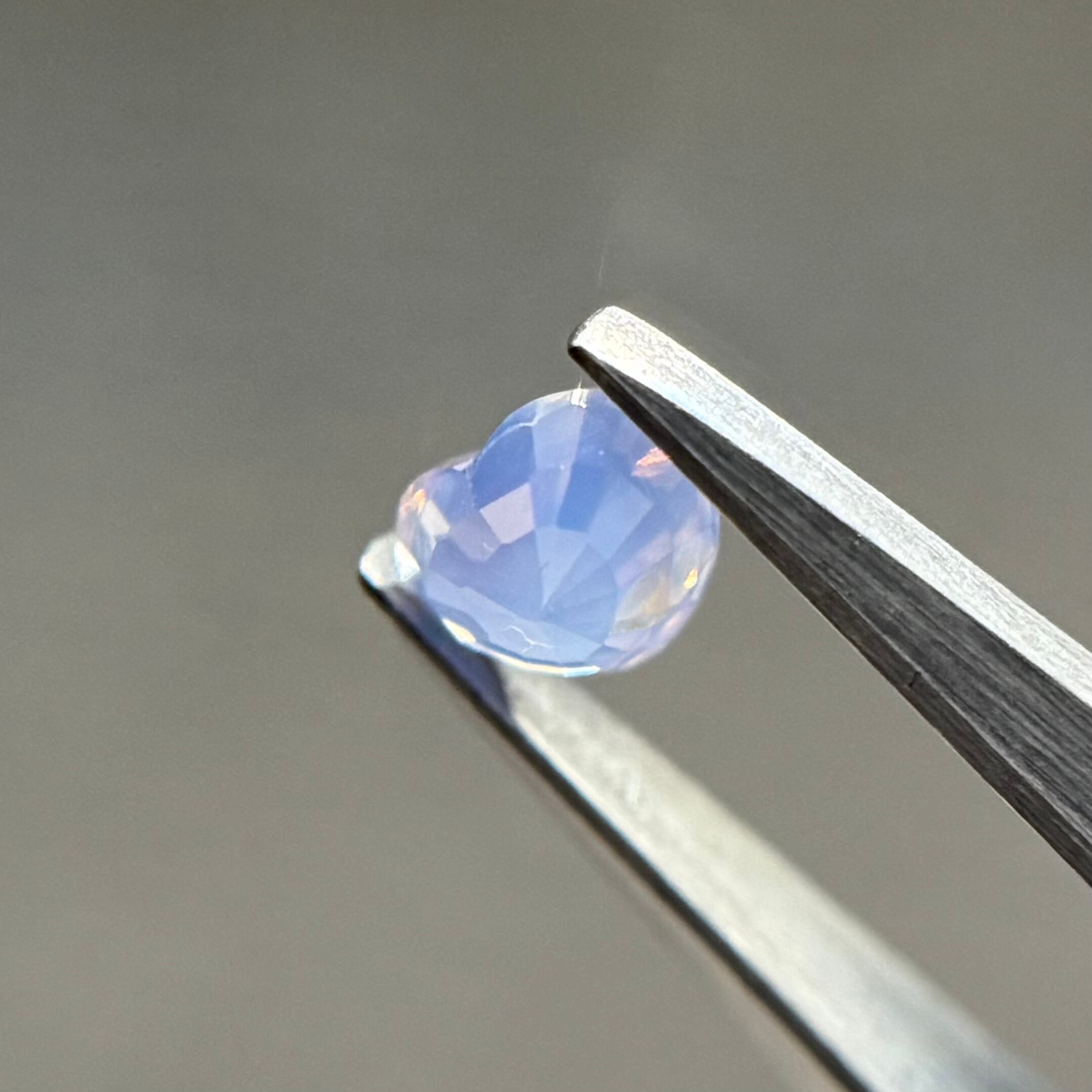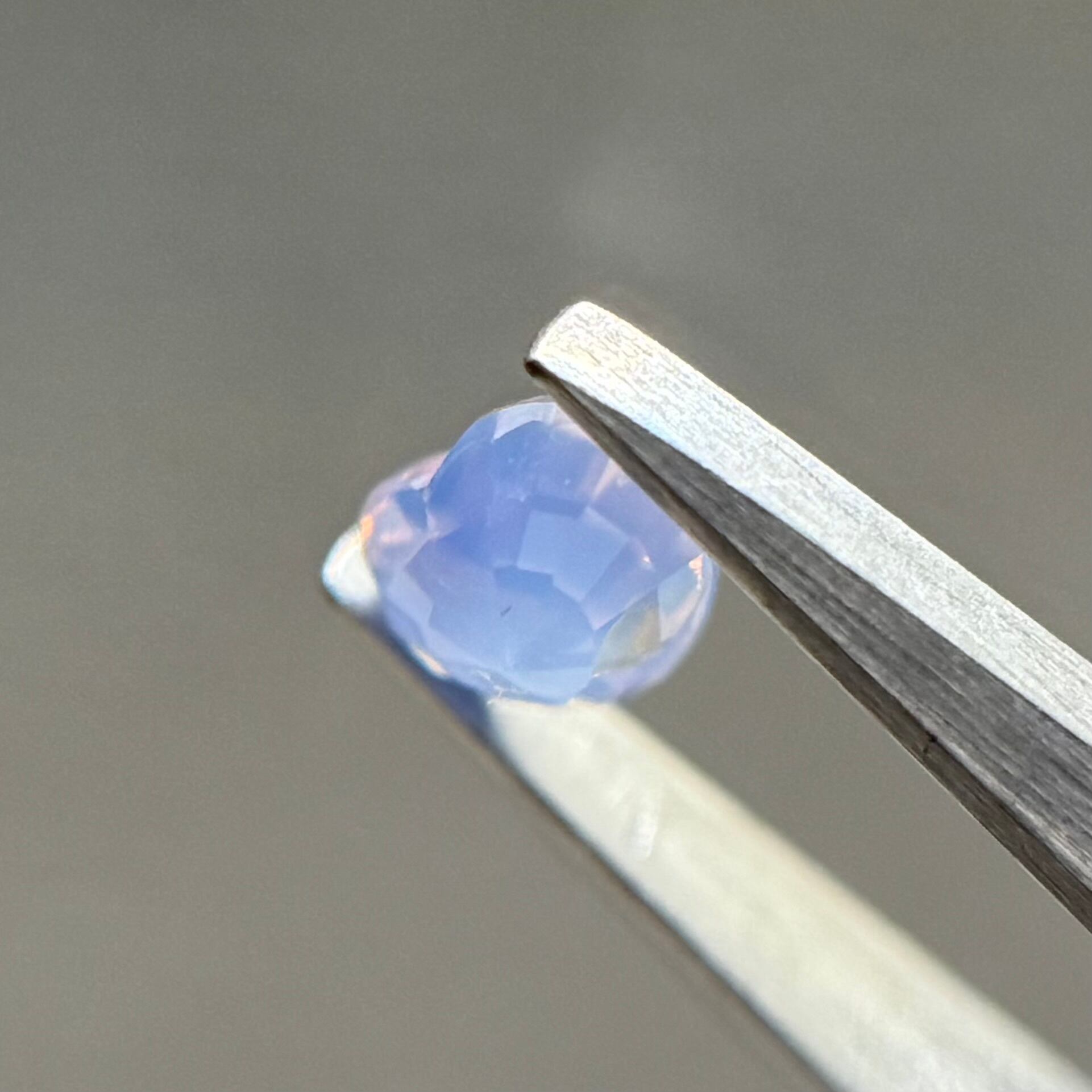 ほんのり紫が入った水色に複数色のテリがユメカワなシルキーサファイアです。形もぽってりと可愛らしいです。パビリオンの黄色インクルージョンはテリに隠れてほとんど目立ちません