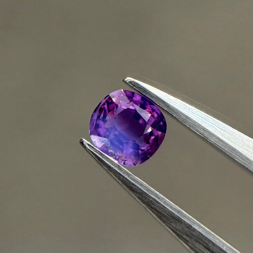 ピンクの色だまりが入り、ピンクみが強い紫と青みの強い紫とでまるでバイカラーのような二面性が楽しめるシルキーサファイアです。テリもしっかり感じられ、とても華やかです