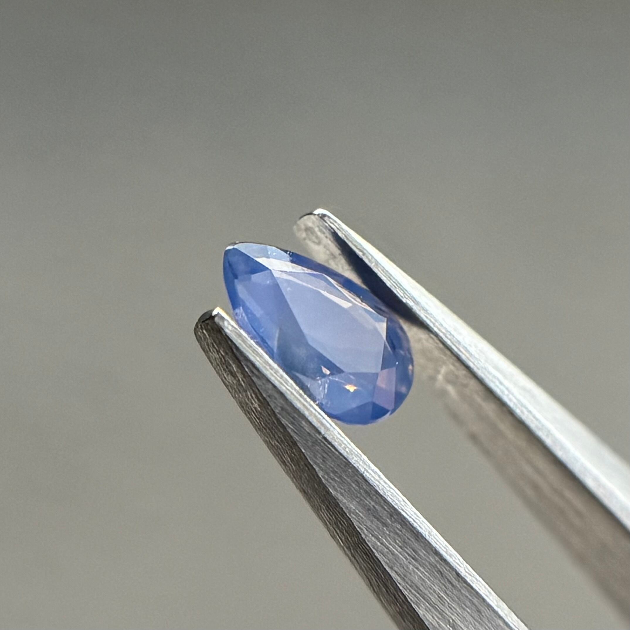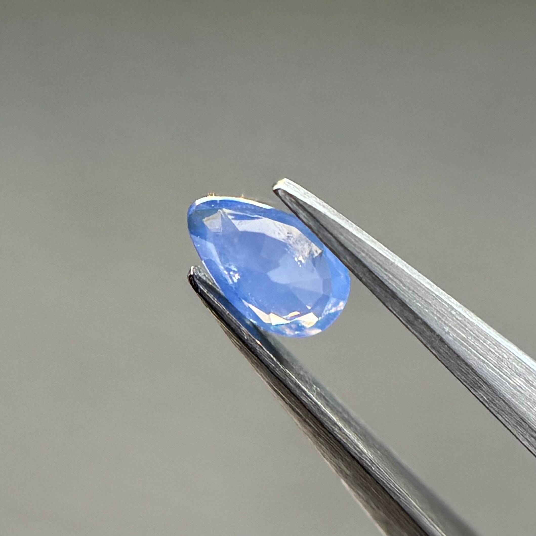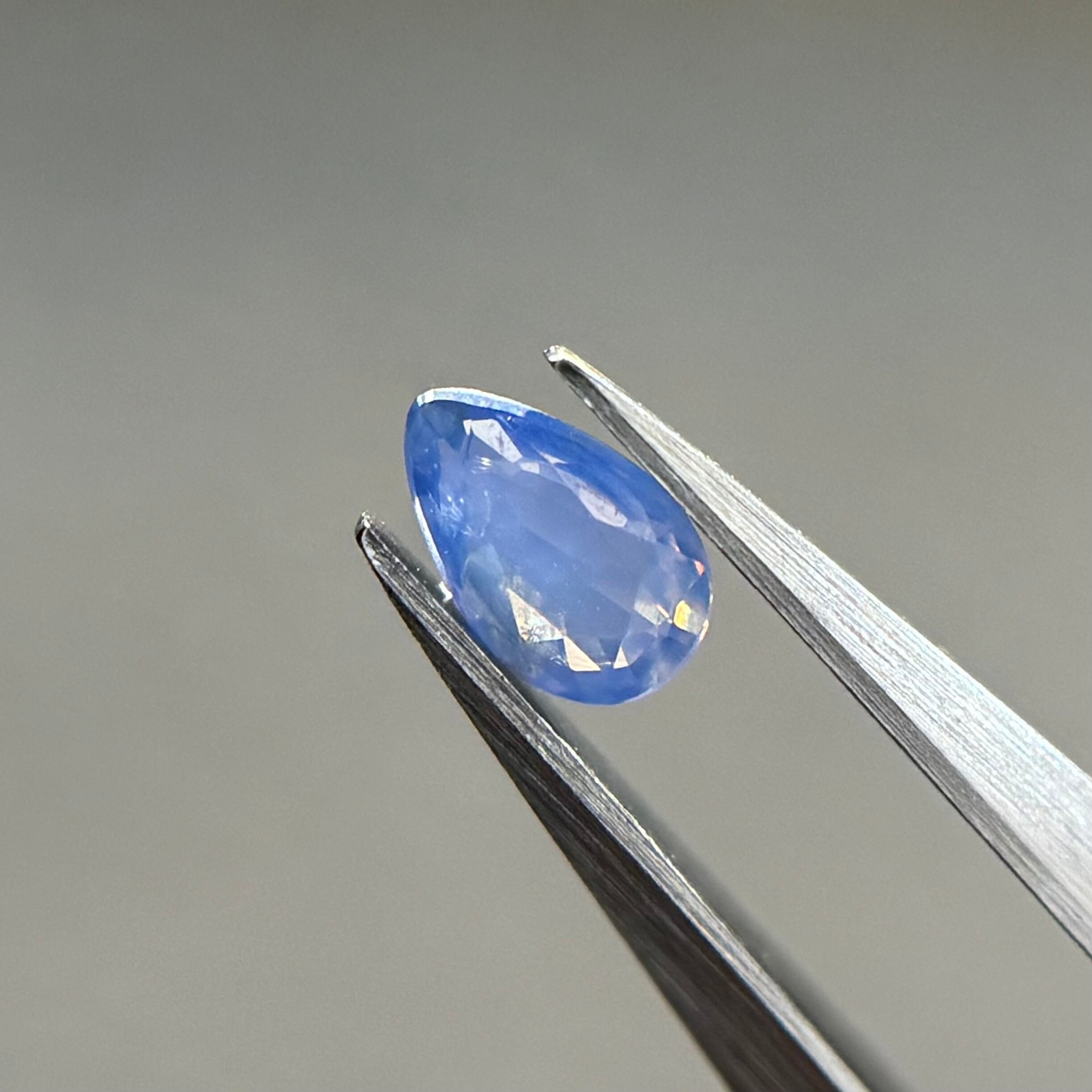 ミルキーブルーに淡いテリが可愛らしいシルキーサファイアです。結晶体インクルージョンに光が反射してルーペで見ると小さな虹が楽しめます