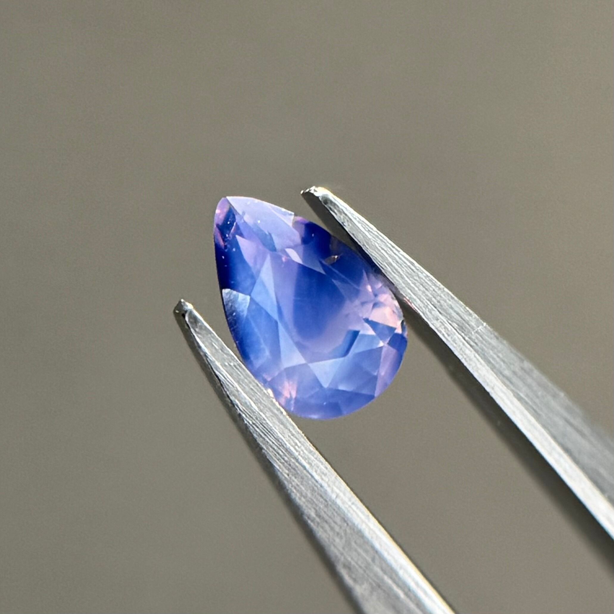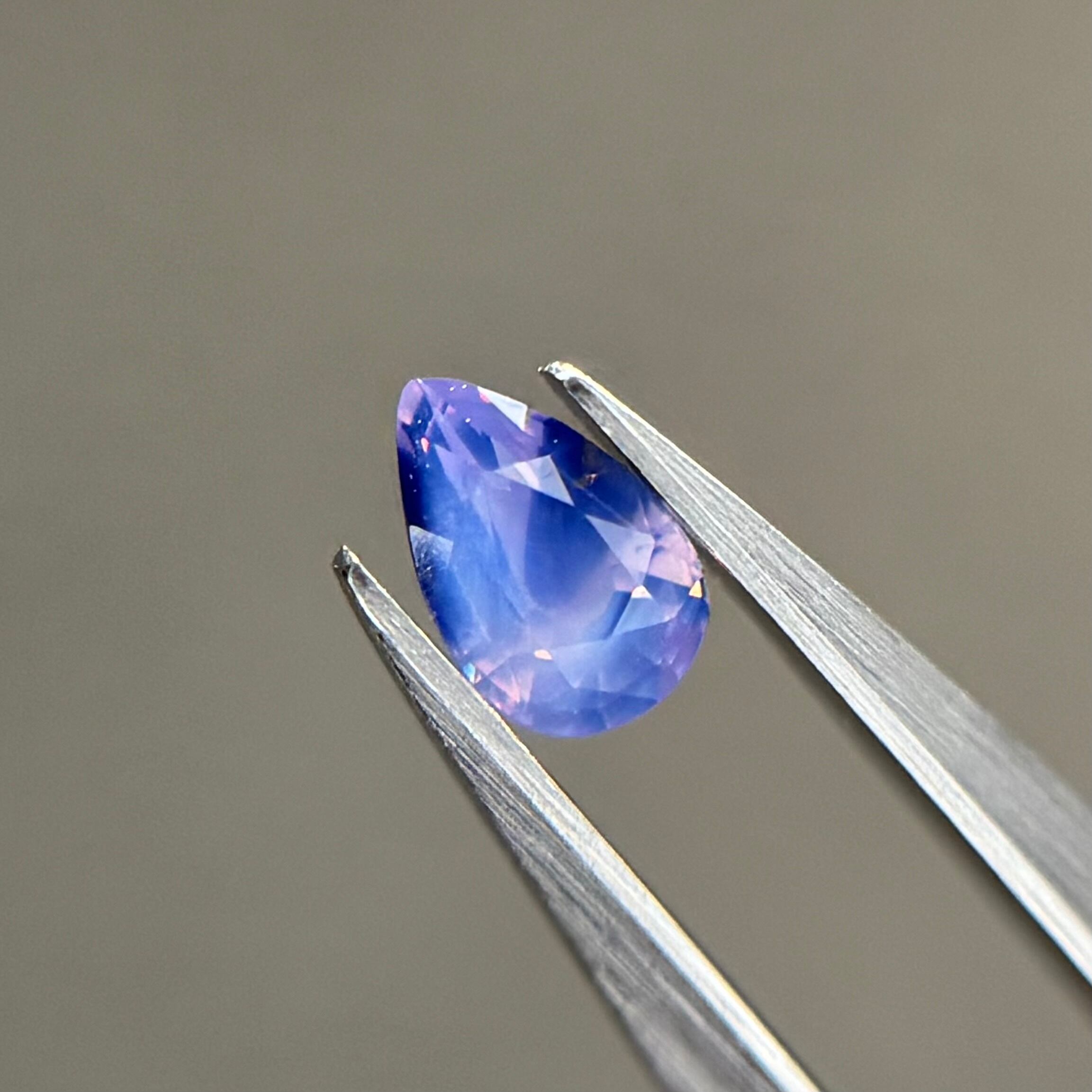 色だまりによってとても幻想的な、夜と朝の境界線のような色合いが美しいシルキーサファイアです。テリの色の数がすごく、テーブルからは寒色系+ピンク中心、パビリオンからは暖色系中心に楽しめます