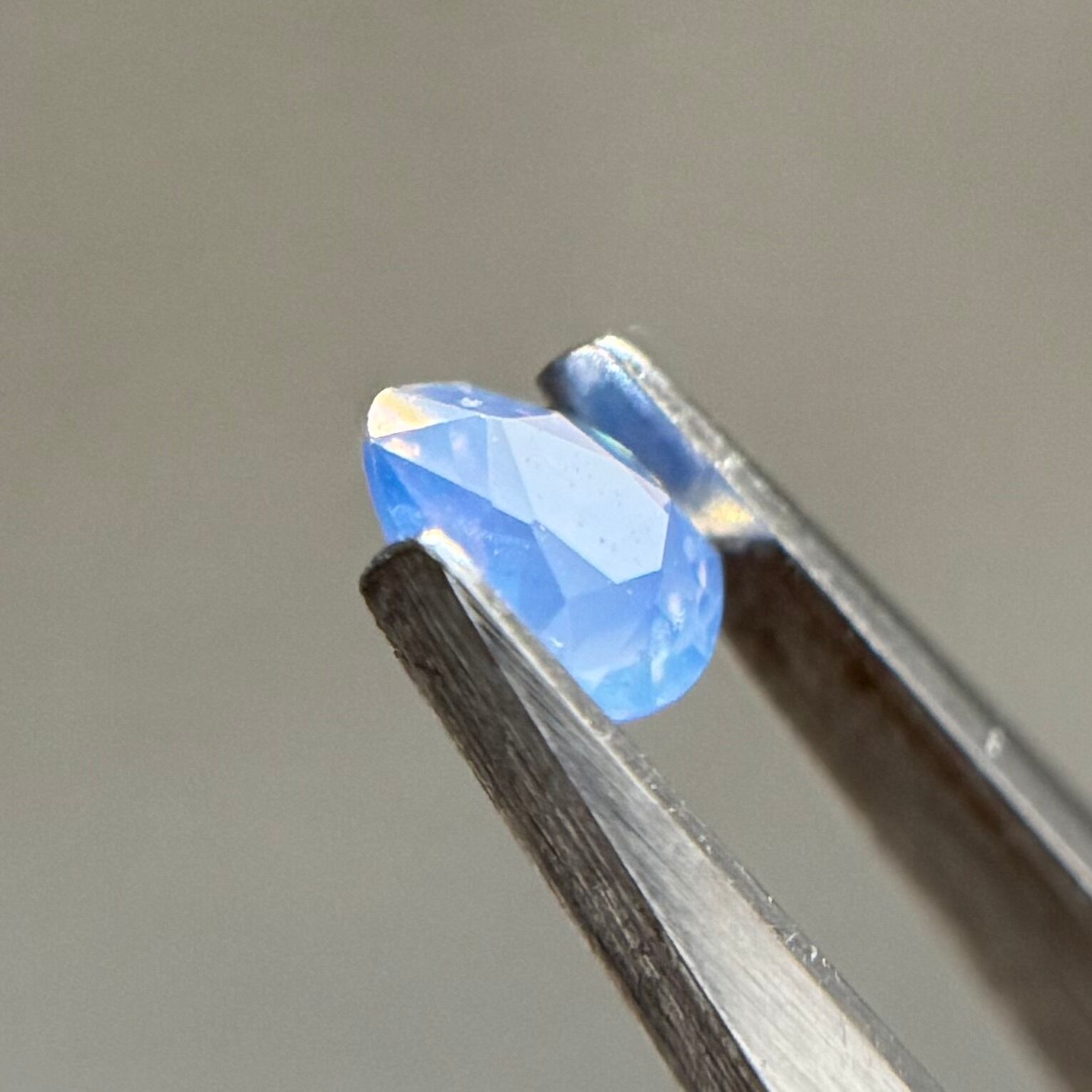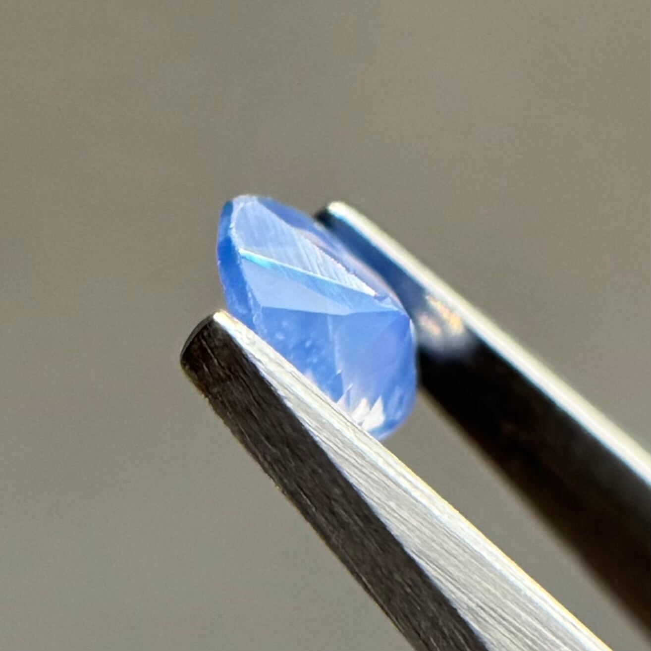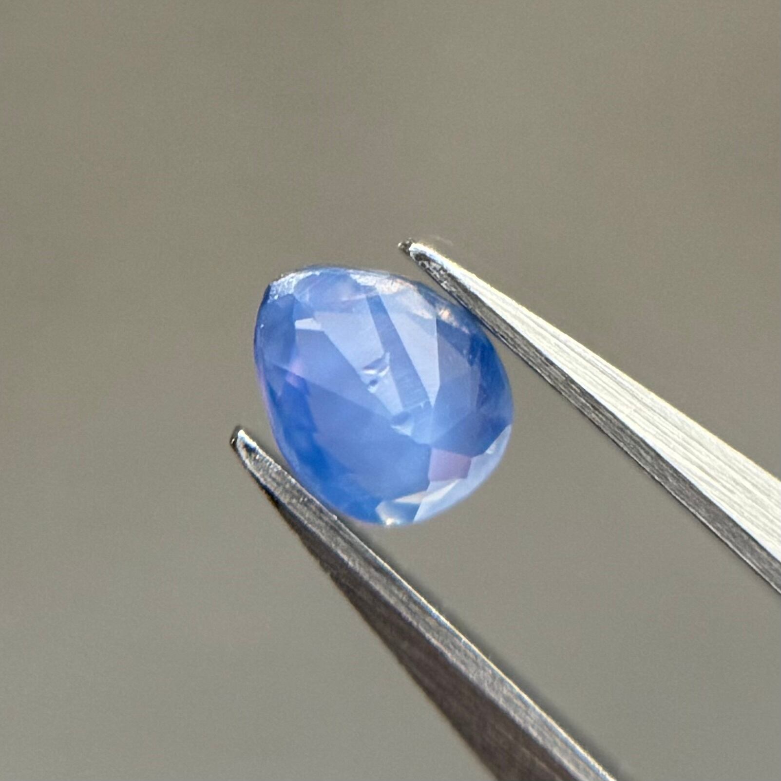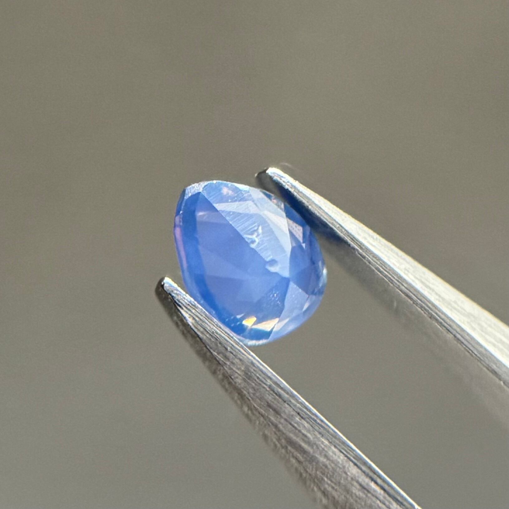 ほんのりピンクや紫を感じるブルーに黄色のテリが可愛らしいシルキーサファイアです。ややカットが甘めですが、まるで水滴をギュッと閉じ込めたような可愛らしさがたまらないです