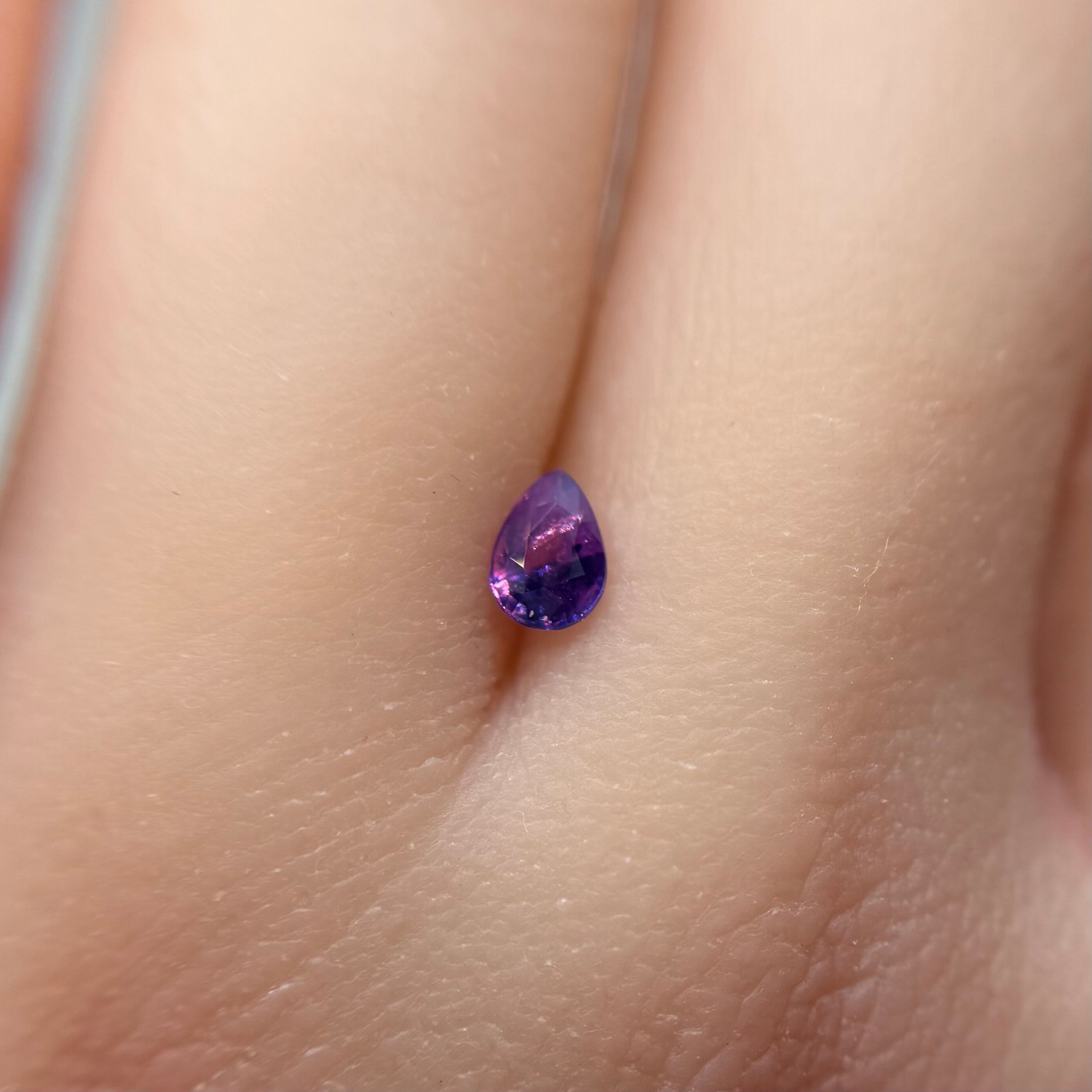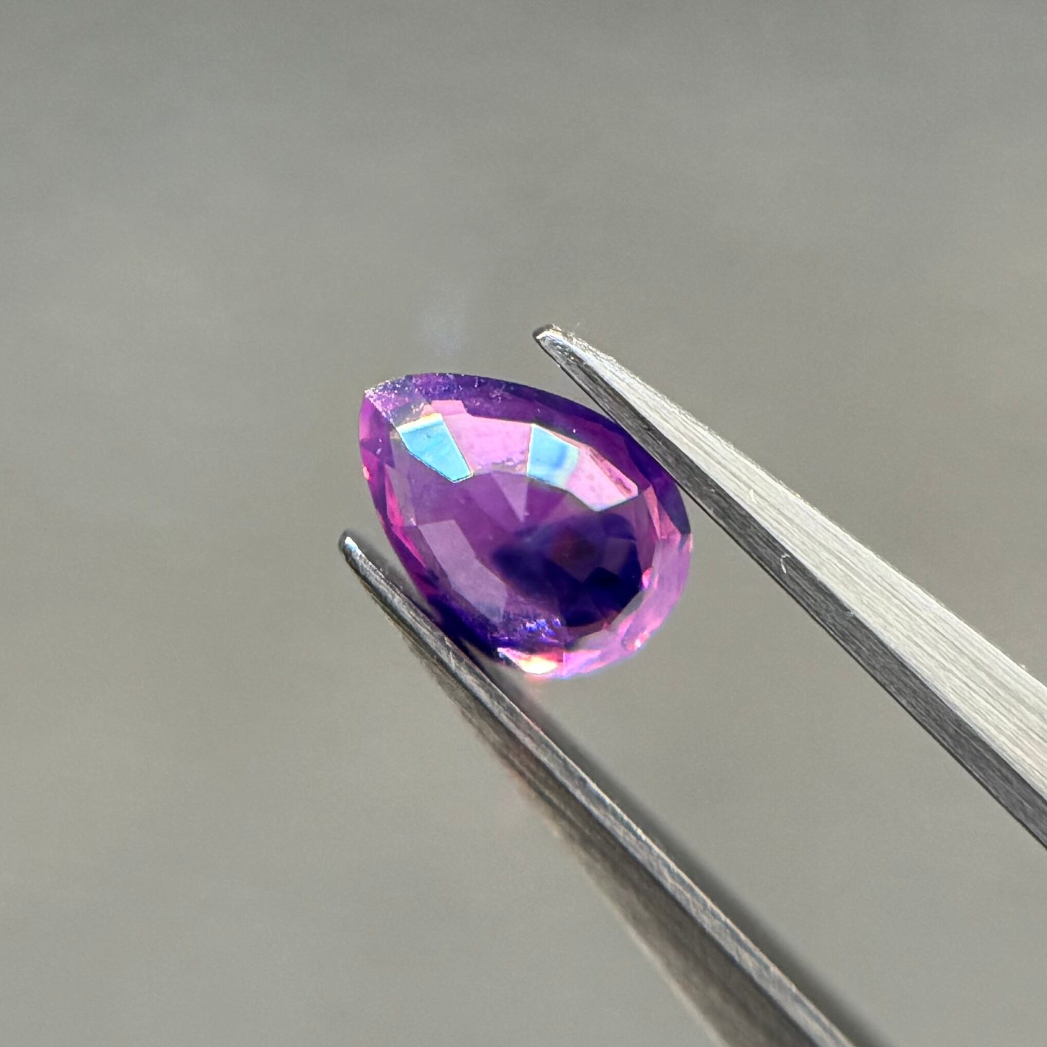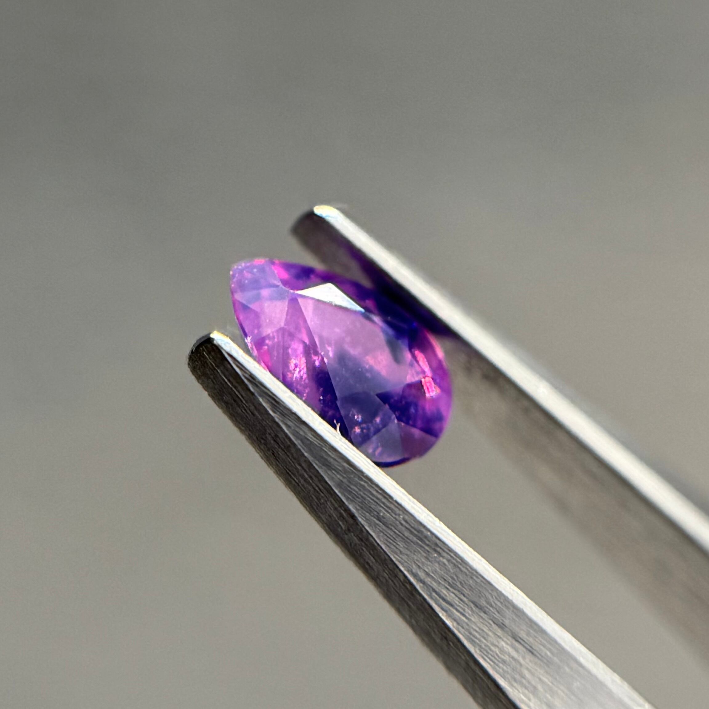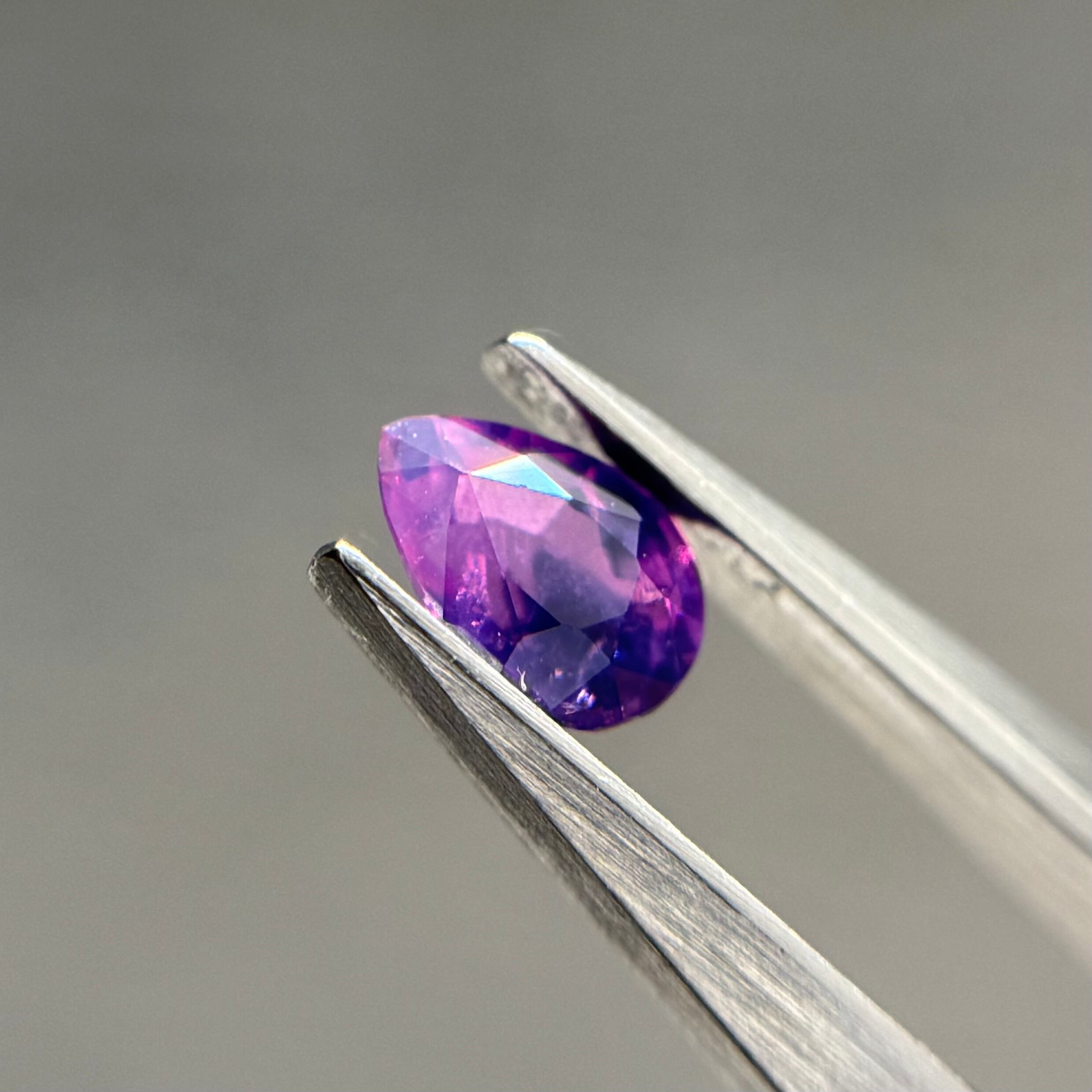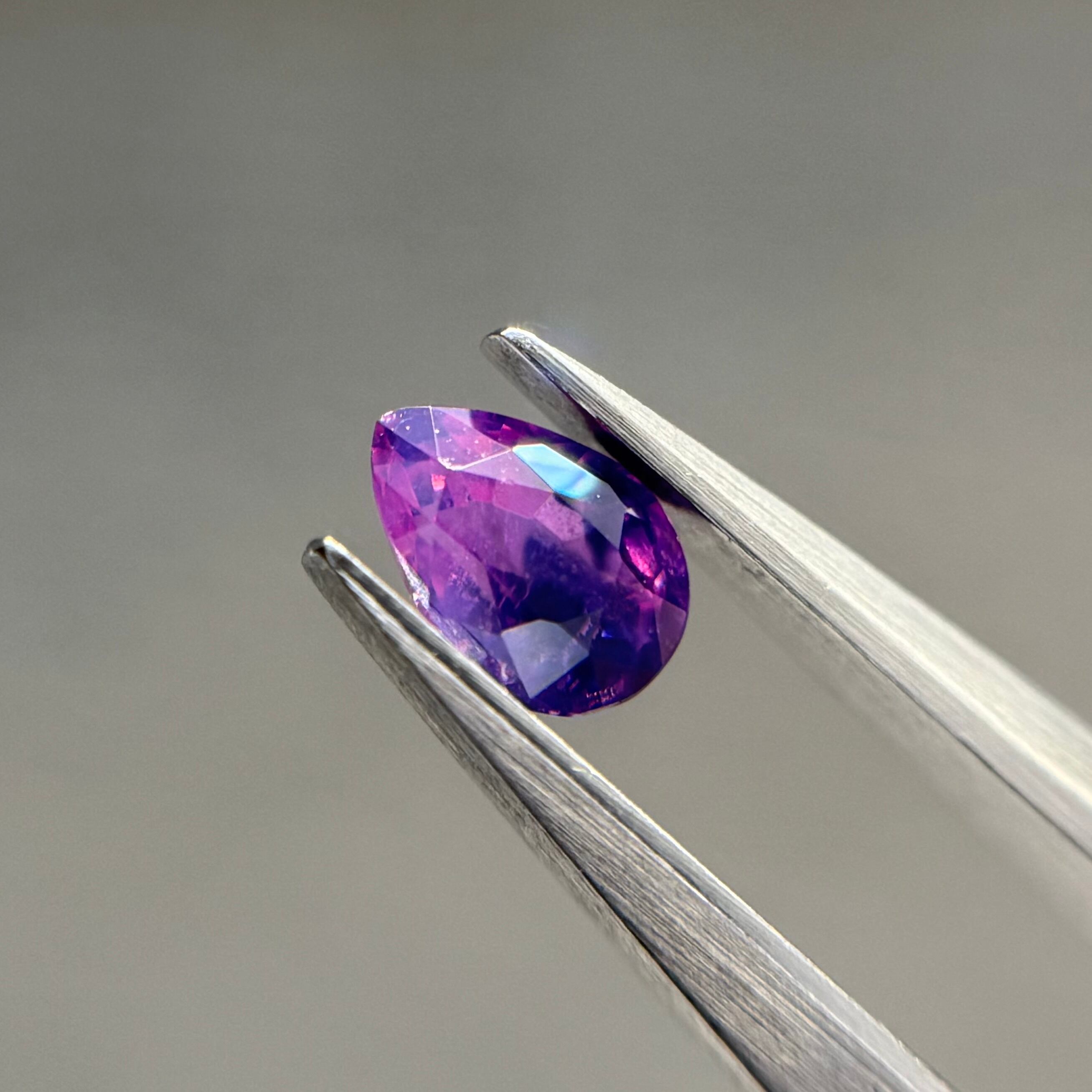 濃いめのベースに液体インクルージョンが全体的に入っており、光を反射してキラキラと煌めくサファイアです。まるで宇宙のような配色に、クラックが流れ星のように見えてとても美しいです