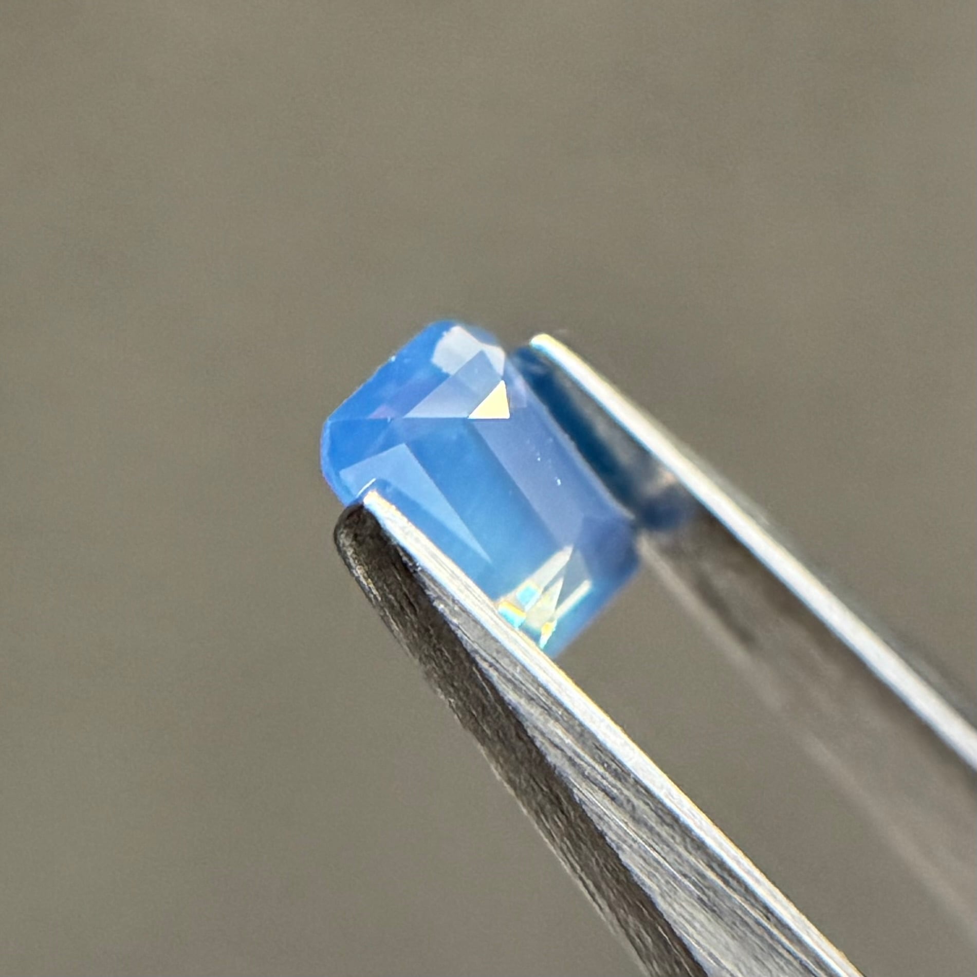 ダスティブルーに複数色のテリがとても美しいシルキーサファイアです。色むらに少し緑が噛んでおり、シンプルながら複雑な色合いが楽しめます。この大きさでこの色味でほぼルーペクリーンの子は中々にレアです