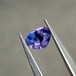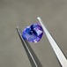 ベースの色はピンクの強い紫ですが、青だまりによってまるでグラデーションが入っているかのように見えるシルキーサファイアです。真ん中の一際濃い青だまりがまるで瞳のようでとても力強いです。パビリオン側のキズを伴う茶色インクルージョンは、テーブル側からだと差し色のようにも見え、全体のお色に深みを出す良いアクセントとなっております