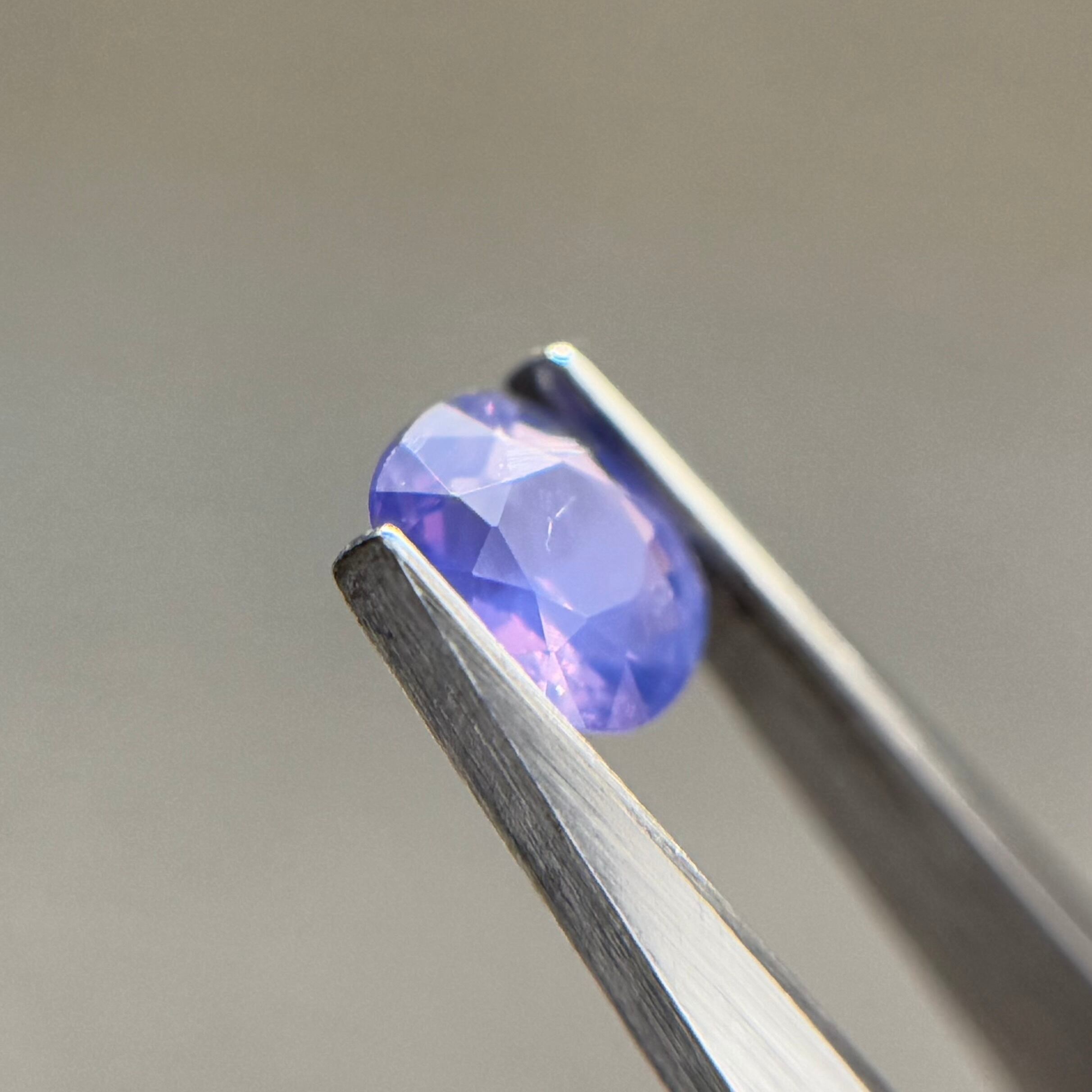暗めのパープルにオレンジとピンクのテリが華やかなシルキーサファイアです。クラウドインクルージョンを上側にするか下側にするかで全体の色の柔らかさの変化が楽しめます