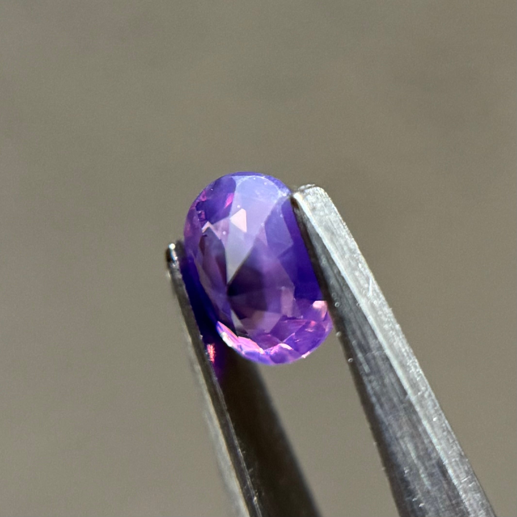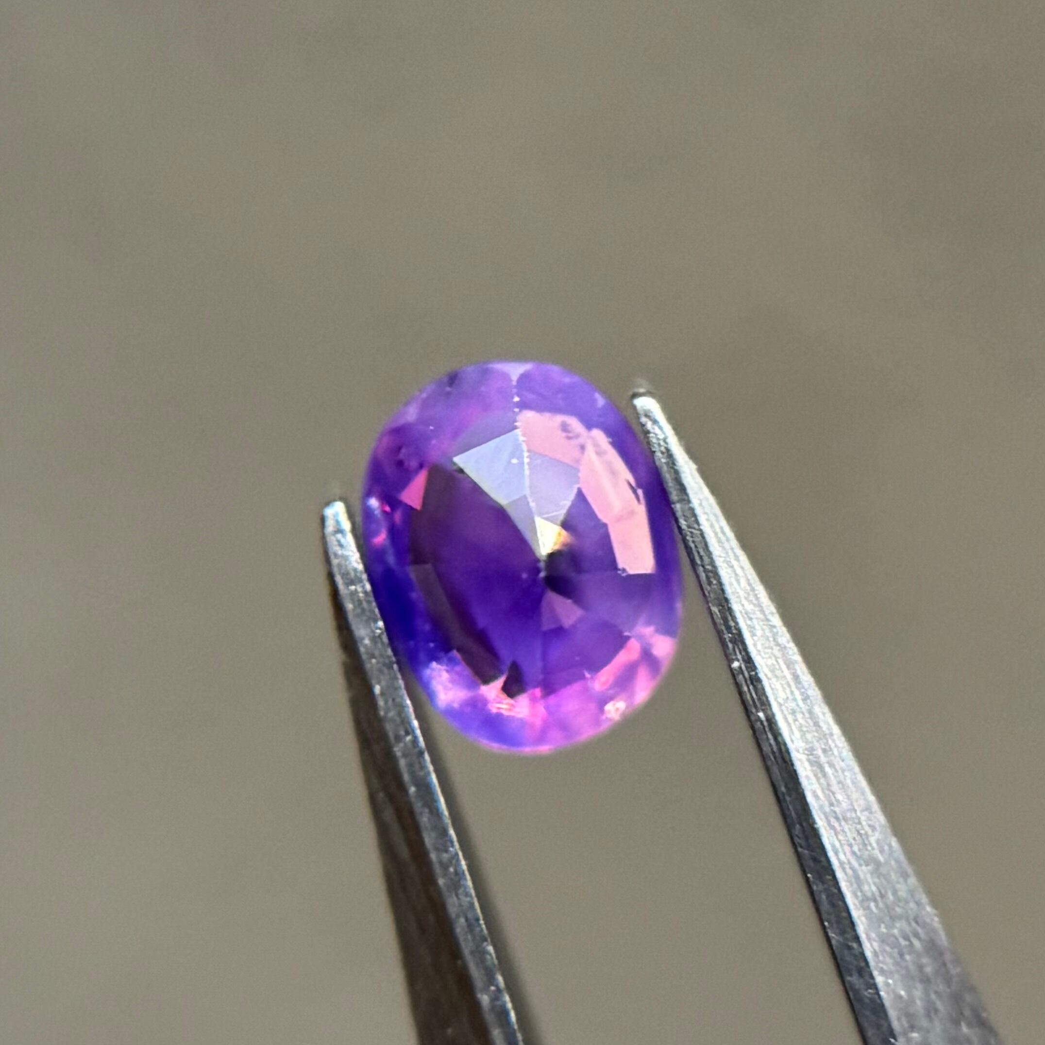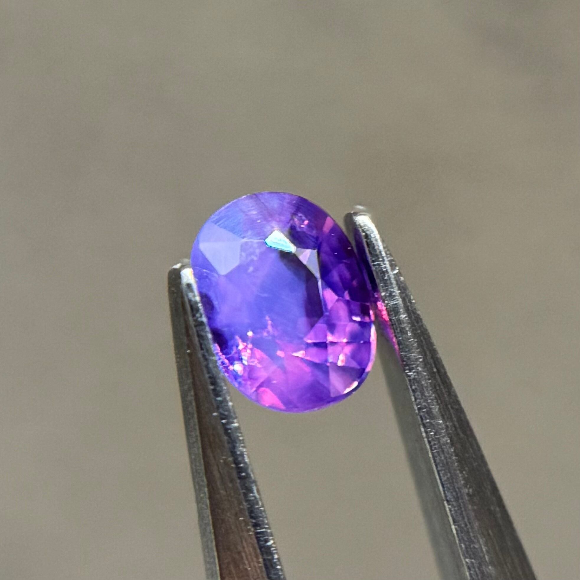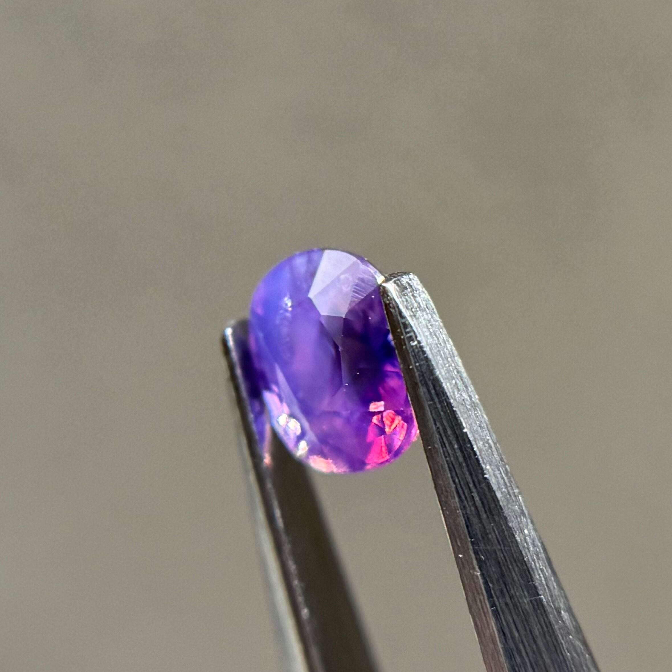 色だまりとビビッドなテリが美しいシルキーサファイアです。赤オレンジ色のてりが奥行きを出してくれ、なんとも言えない色合いが楽しめます