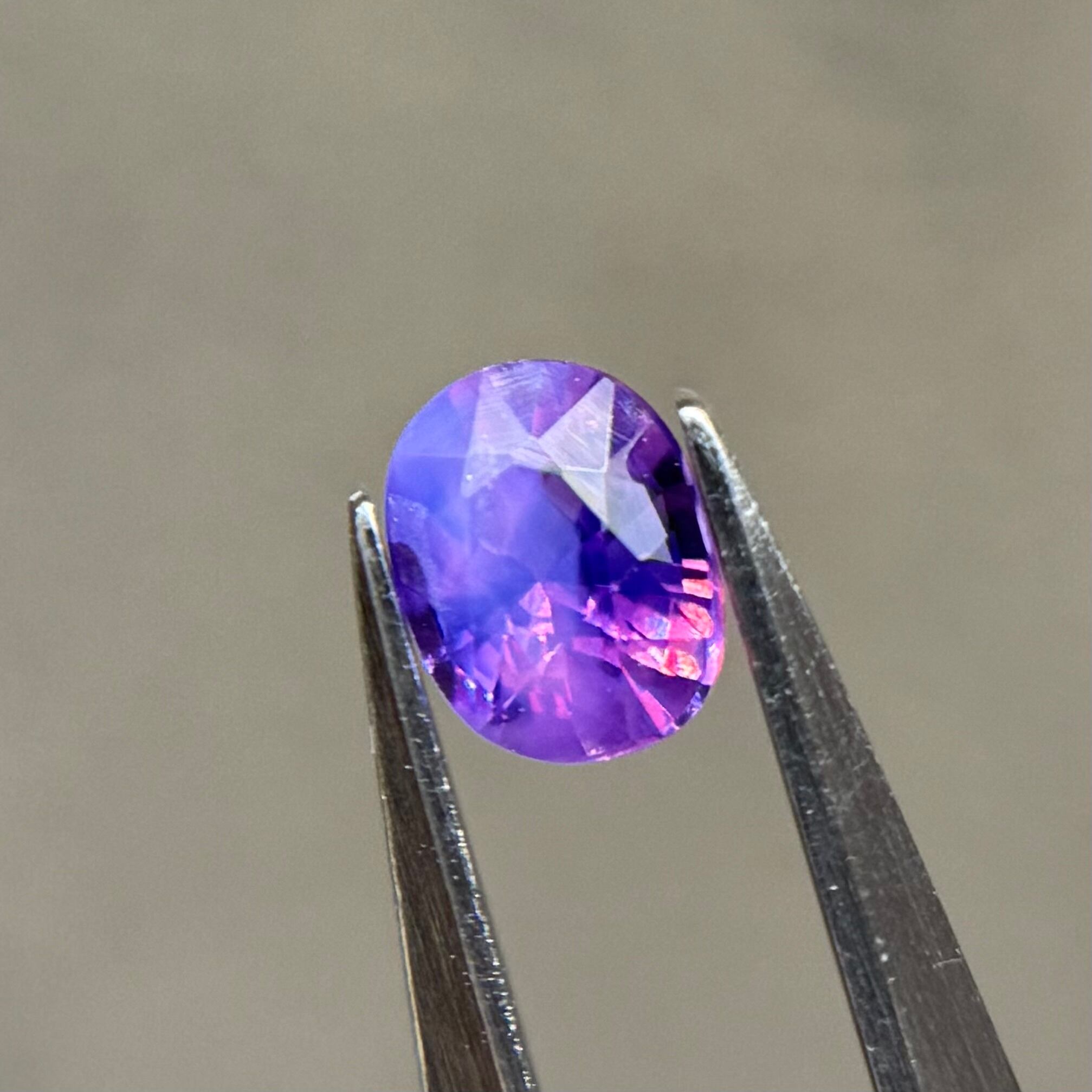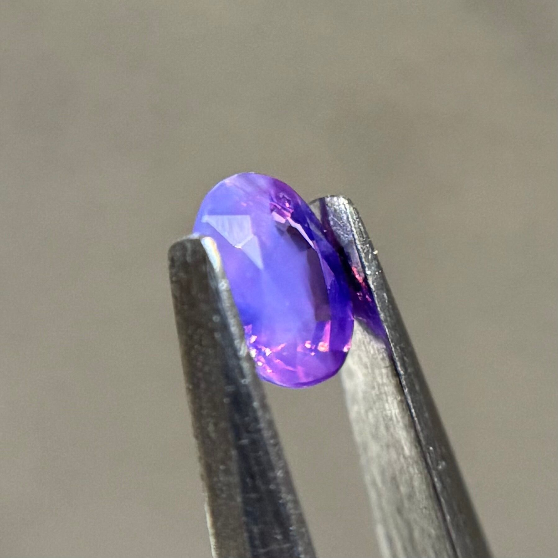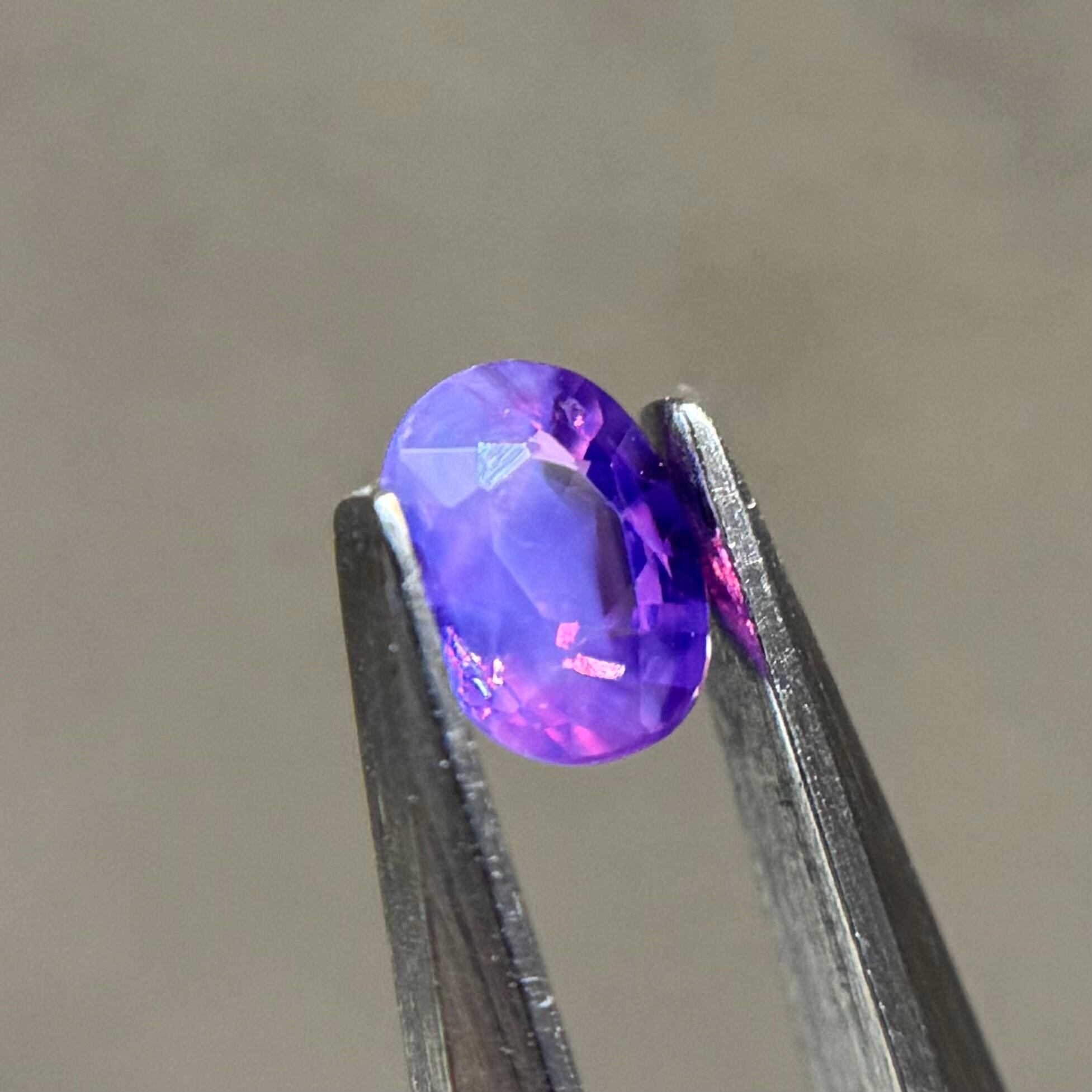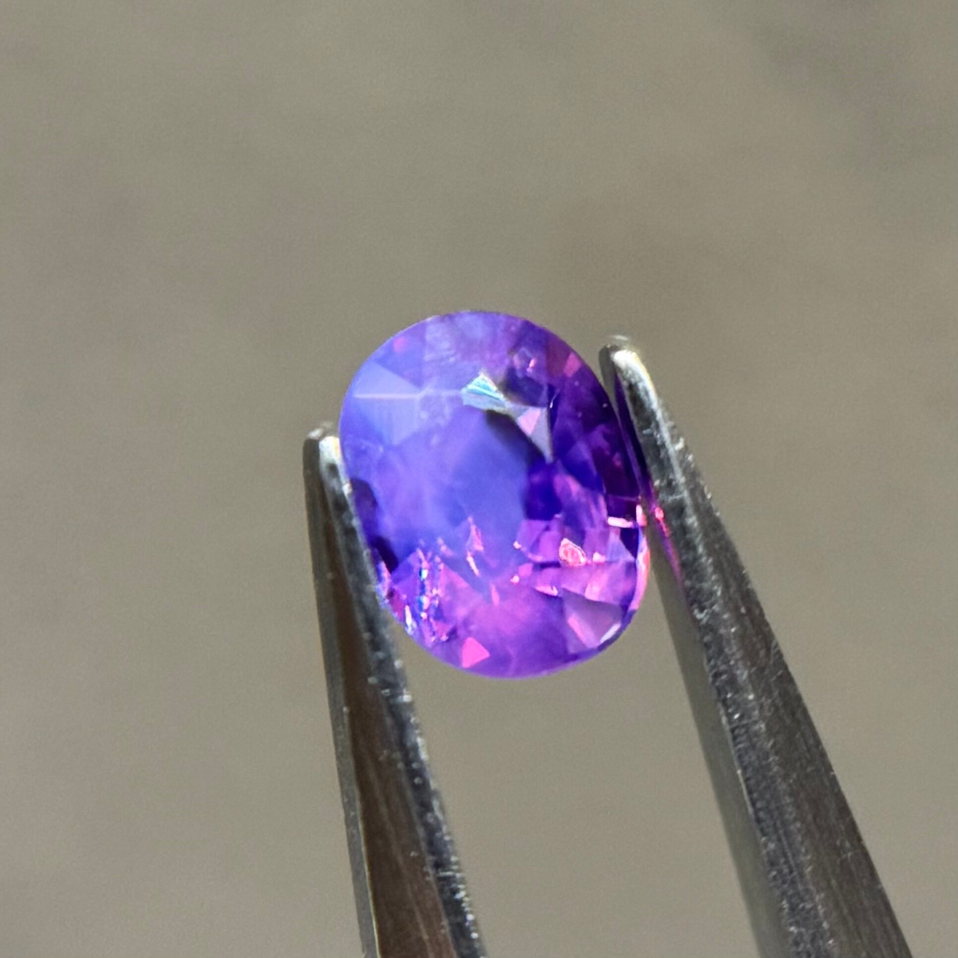 色だまりとビビッドなテリが美しいシルキーサファイアです。赤オレンジ色のてりが奥行きを出してくれ、なんとも言えない色合いが楽しめます