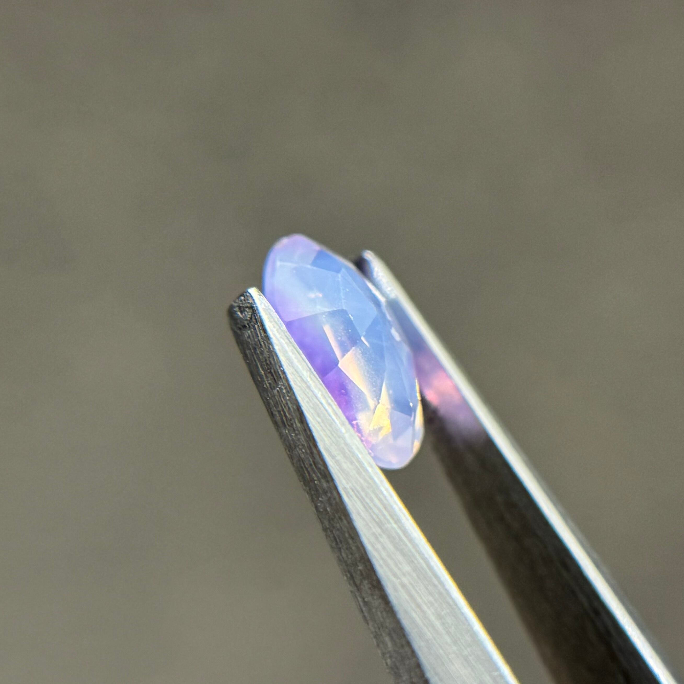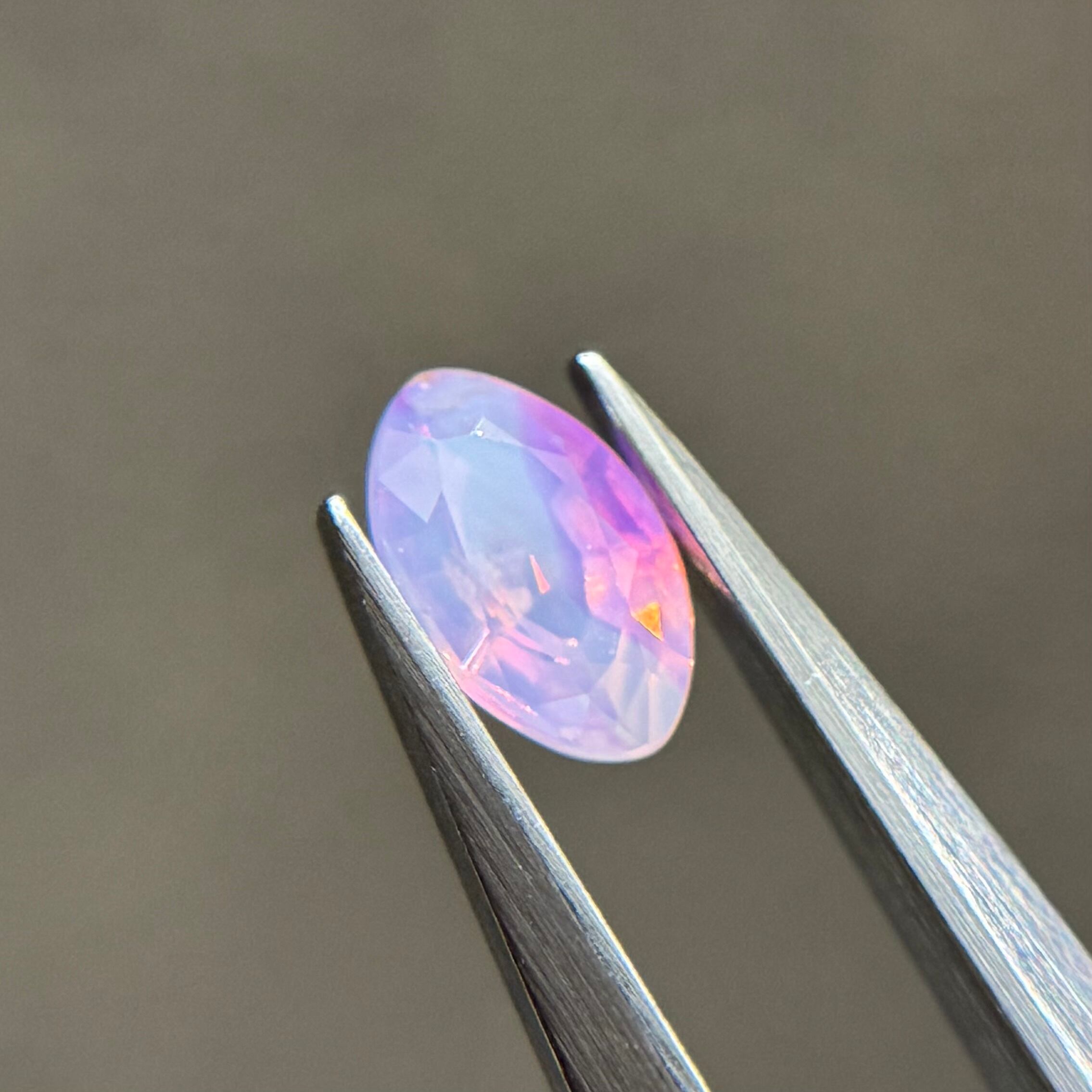 珍しいマーキスシェイプに色だまりがまるで妖精が忘れて行った特別な花の種の様な美しさがあるシルキーサファイアです。厚めのクラウドインクルージョンによってミルキー感がしっかり感じられるところと、色だまりで華やかさが感じられるところがあり、ユニークです