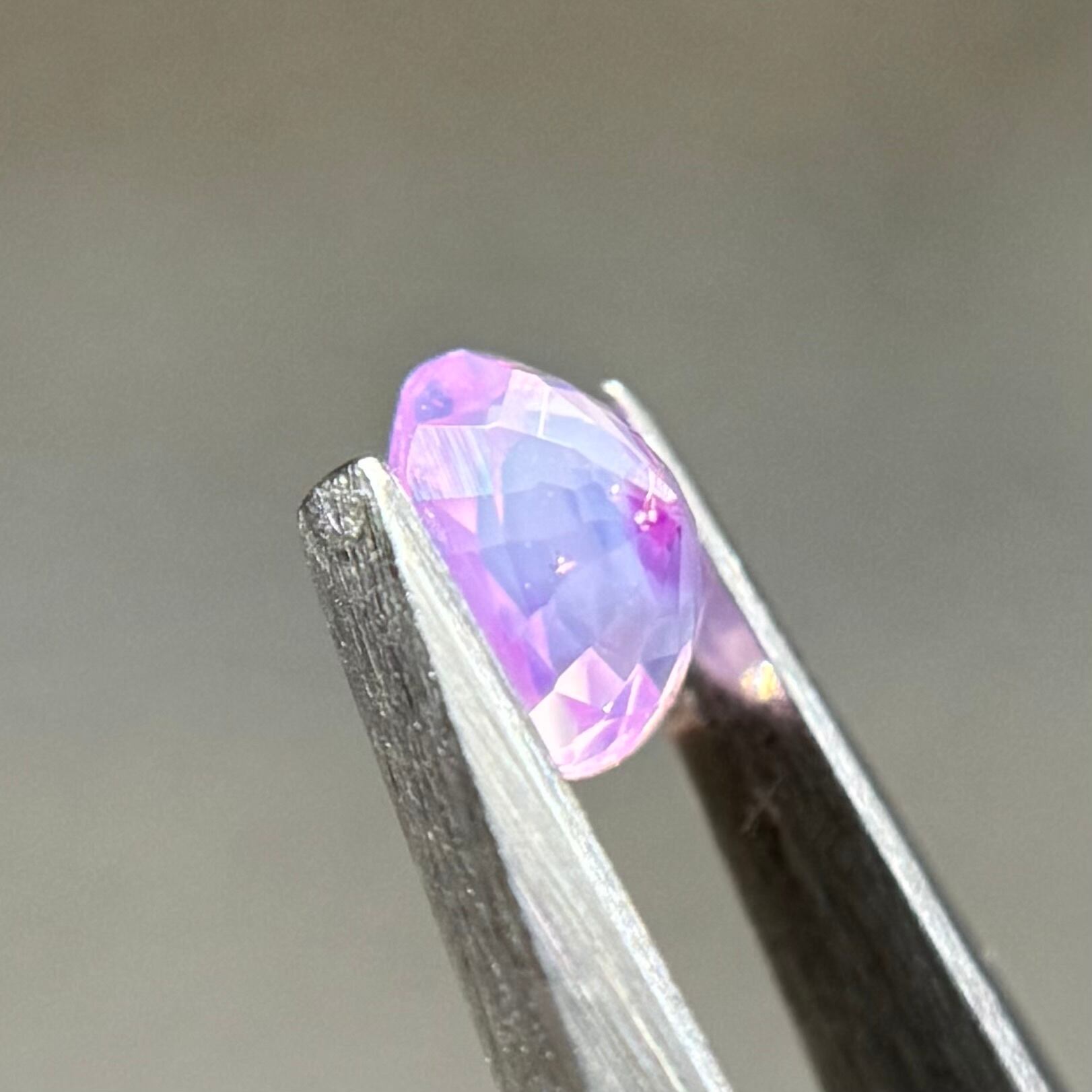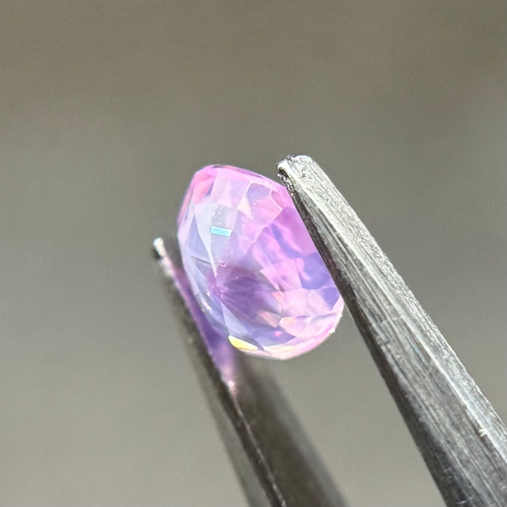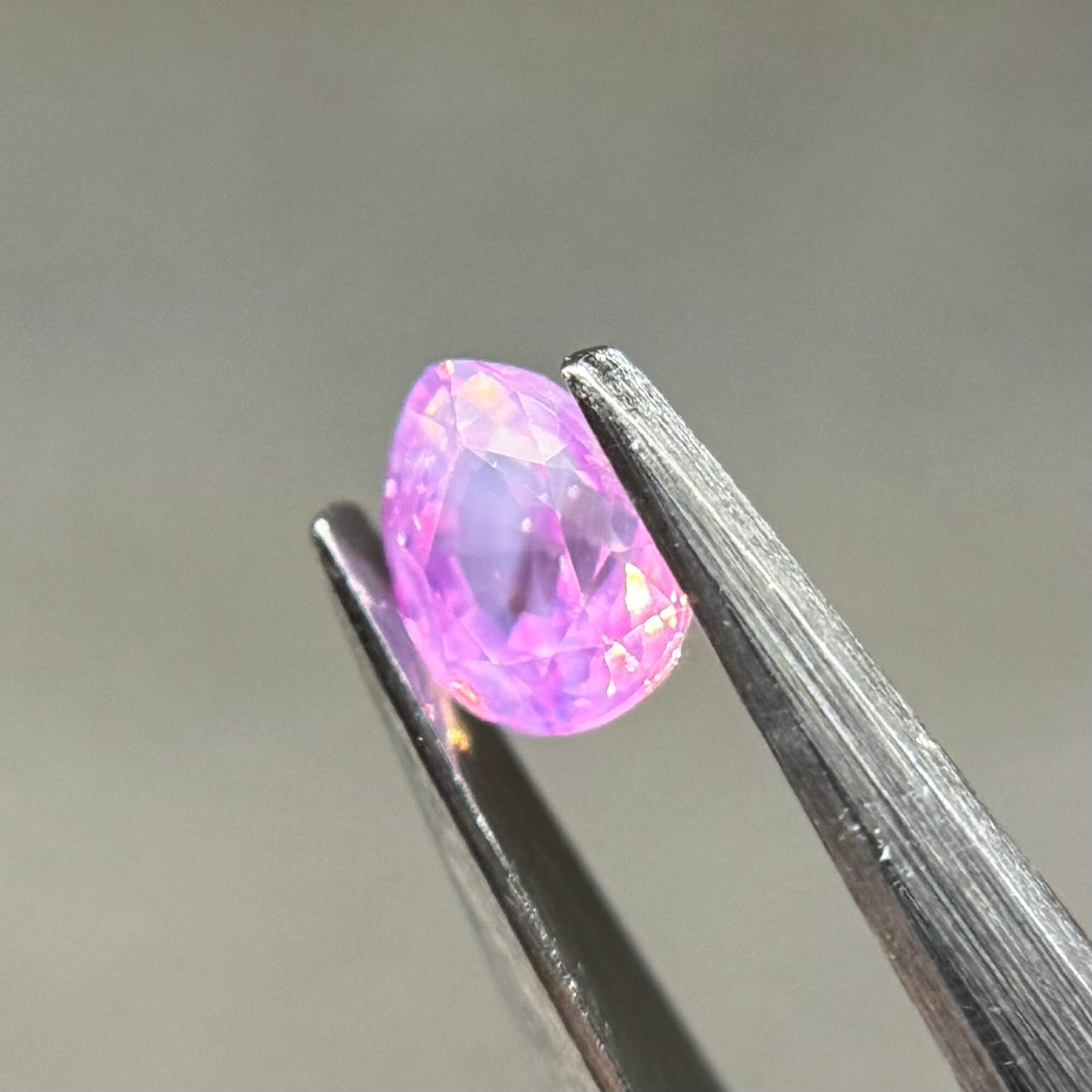 色だまりでマーブルが楽しめるジューシーな色合いのシルキーサファイアです。テリのキラキラ感とシルキーなところと2つを楽しめます。まるでイチゴキャンディのようなかわい子ちゃんです