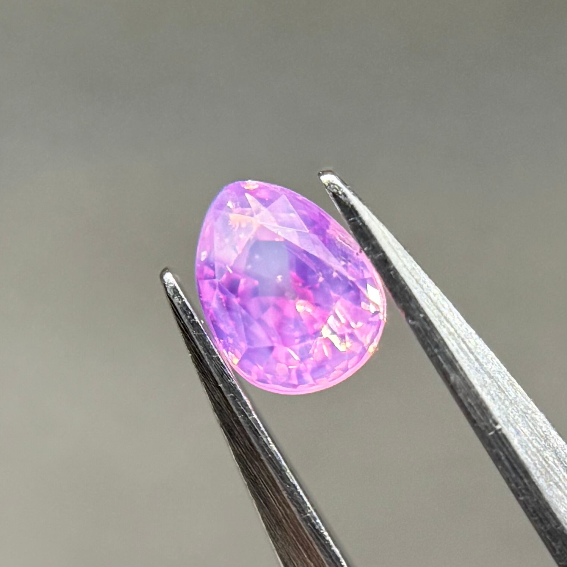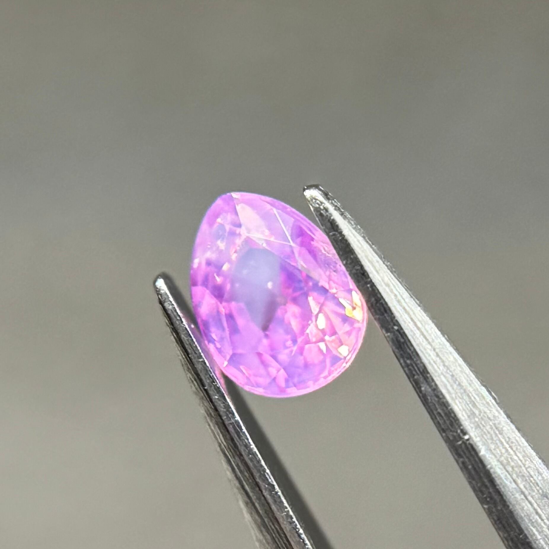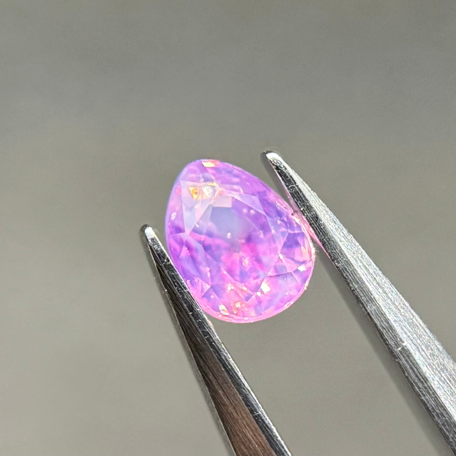 色だまりでマーブルが楽しめるジューシーな色合いのシルキーサファイアです。テリのキラキラ感とシルキーなところと2つを楽しめます。まるでイチゴキャンディのようなかわい子ちゃんです