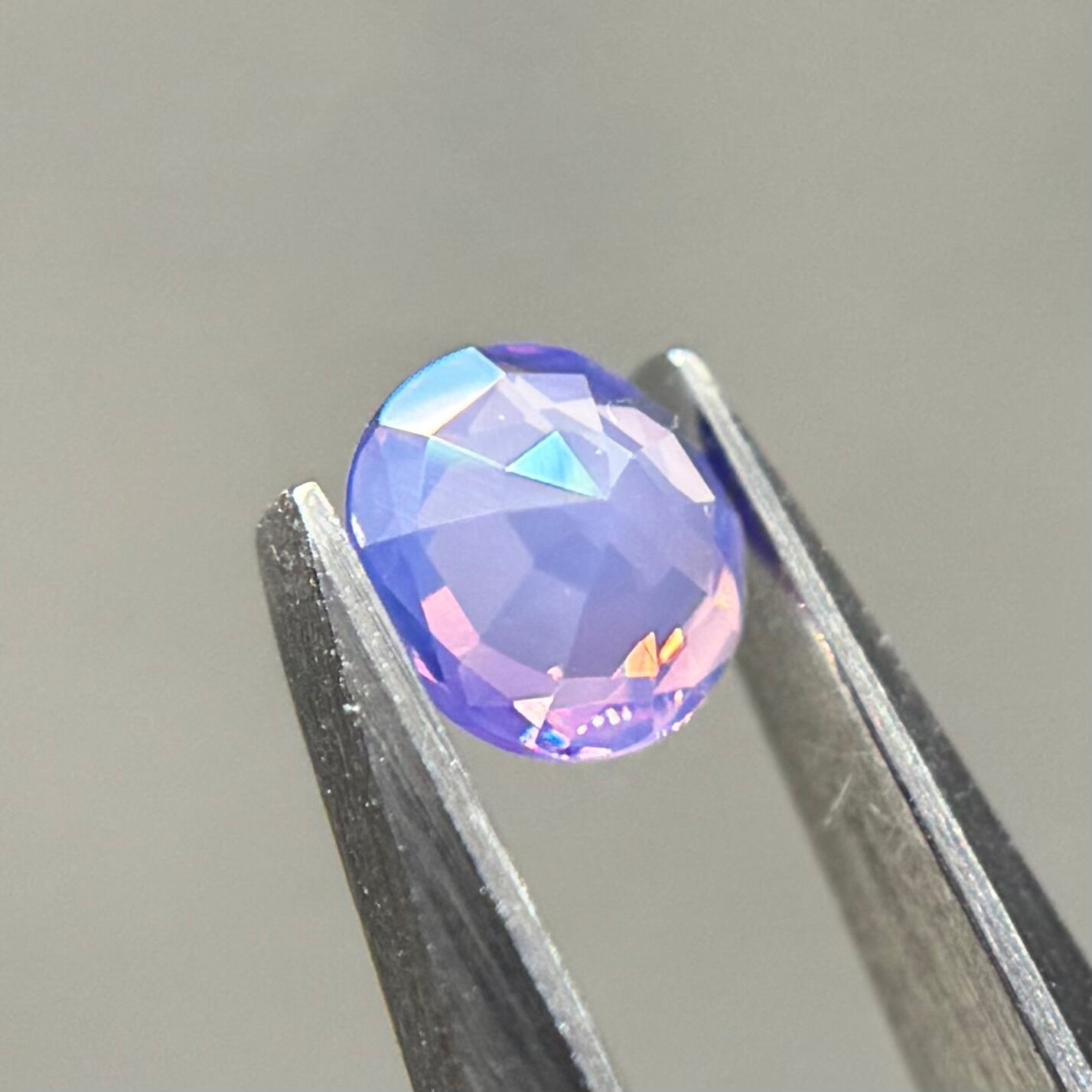 複数色のテリがばちばちに輝き華やかなシルキーサファイアです。指に乗せるとテリがブワッと出てきてとても美しいです