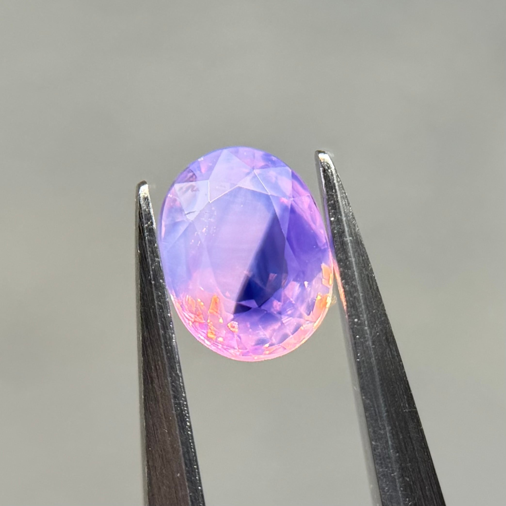 まるでランタンを灯したかのような色合いが美しいシルキーサファイアです。青だまりをどの位置に置くかによって印象がガラッと変わります