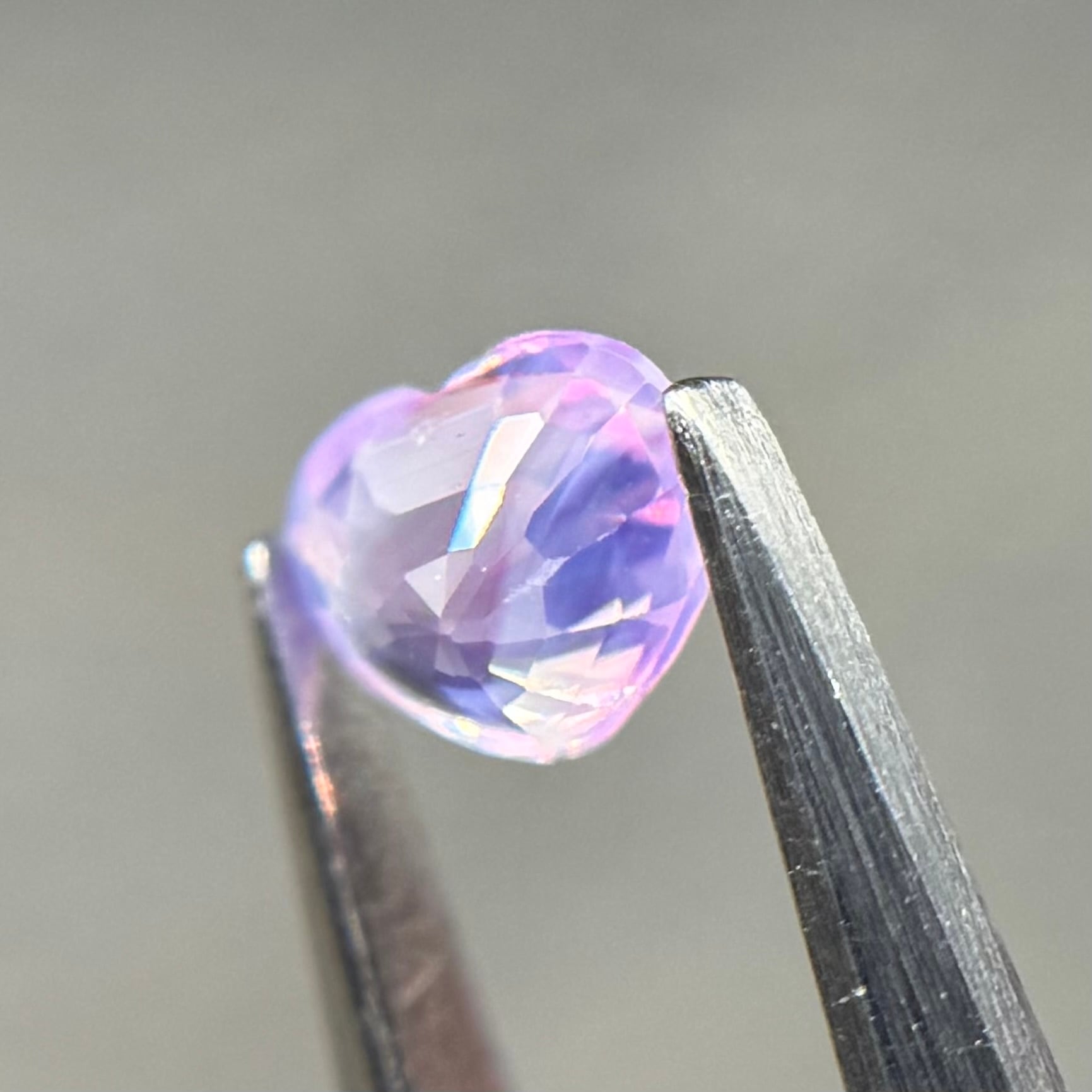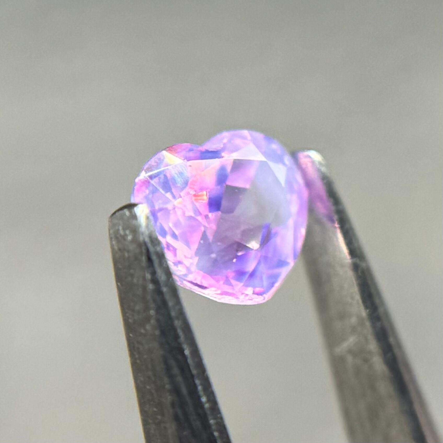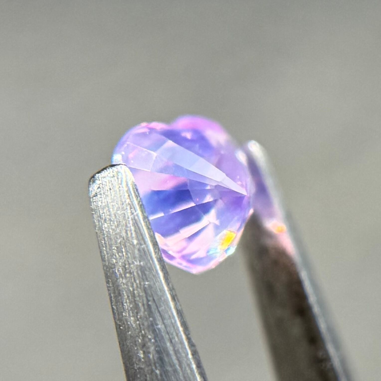 クラウドインクルージョンのふんわりしたところと、色だまりのキラキラしたところがお互いを引き立てるとても可愛らしいシルキーサファイアです。形よし、インクルージョンも肉眼ではわからない程度の美人さんです