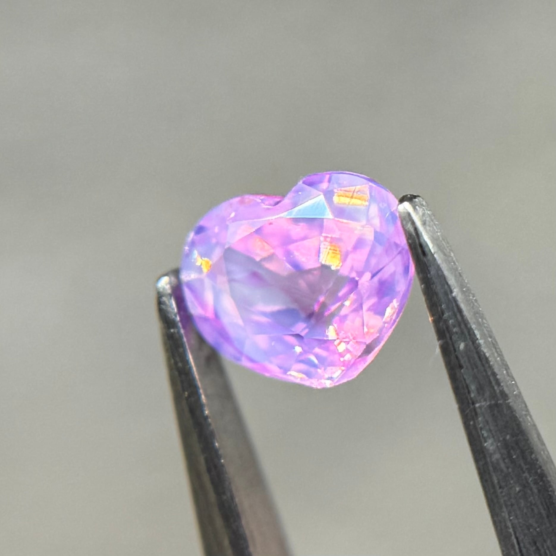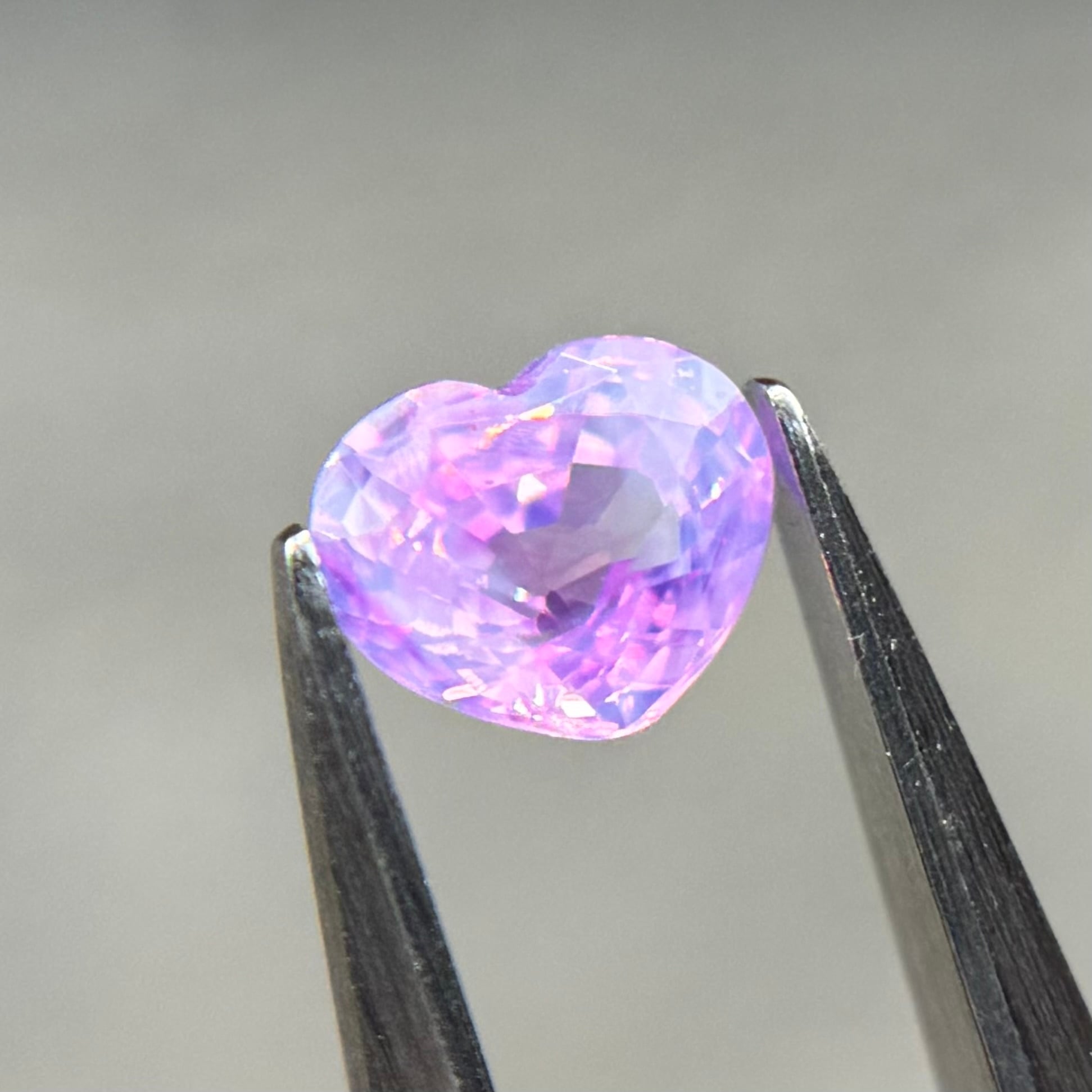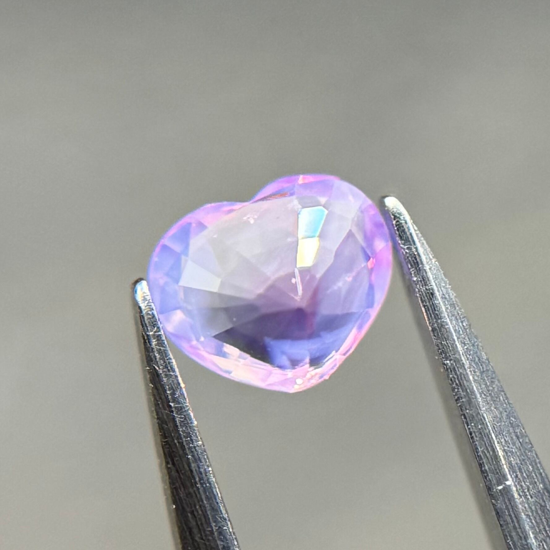 クラウドインクルージョンのふんわりしたところと、色だまりのキラキラしたところがお互いを引き立てるとても可愛らしいシルキーサファイアです。形よし、インクルージョンも肉眼ではわからない程度の美人さんです