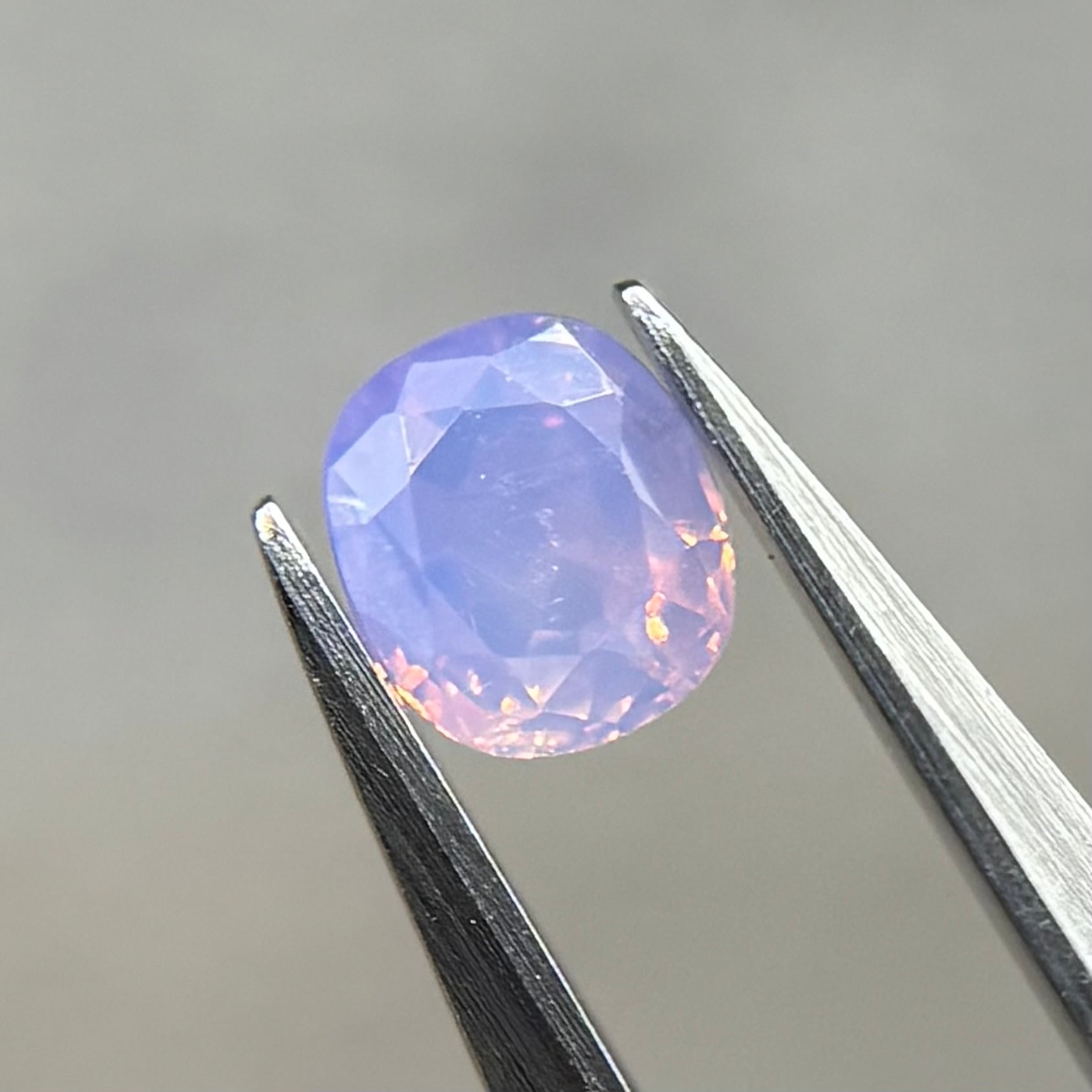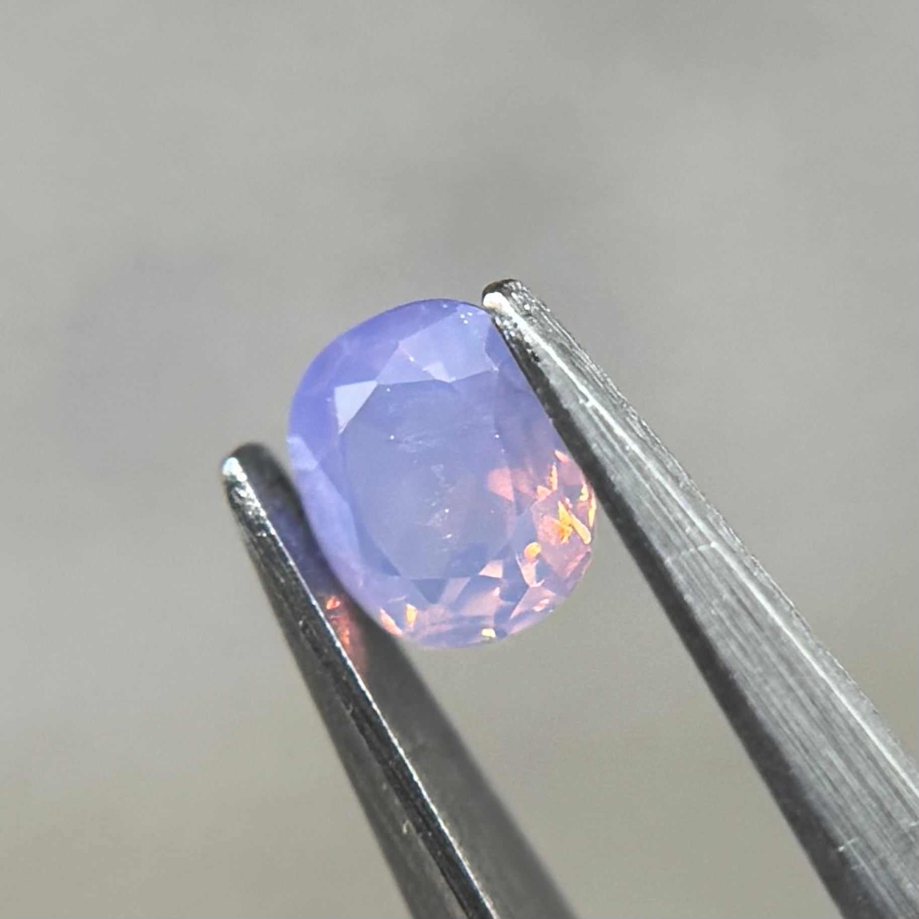 淡いラベンダーカラーに複数色のテリがまるで塔の上のお姫様のカラーのようで可愛らしいシルキーサファイアです。テリがキラキラと花束のように煌めくのを是非お楽しみください