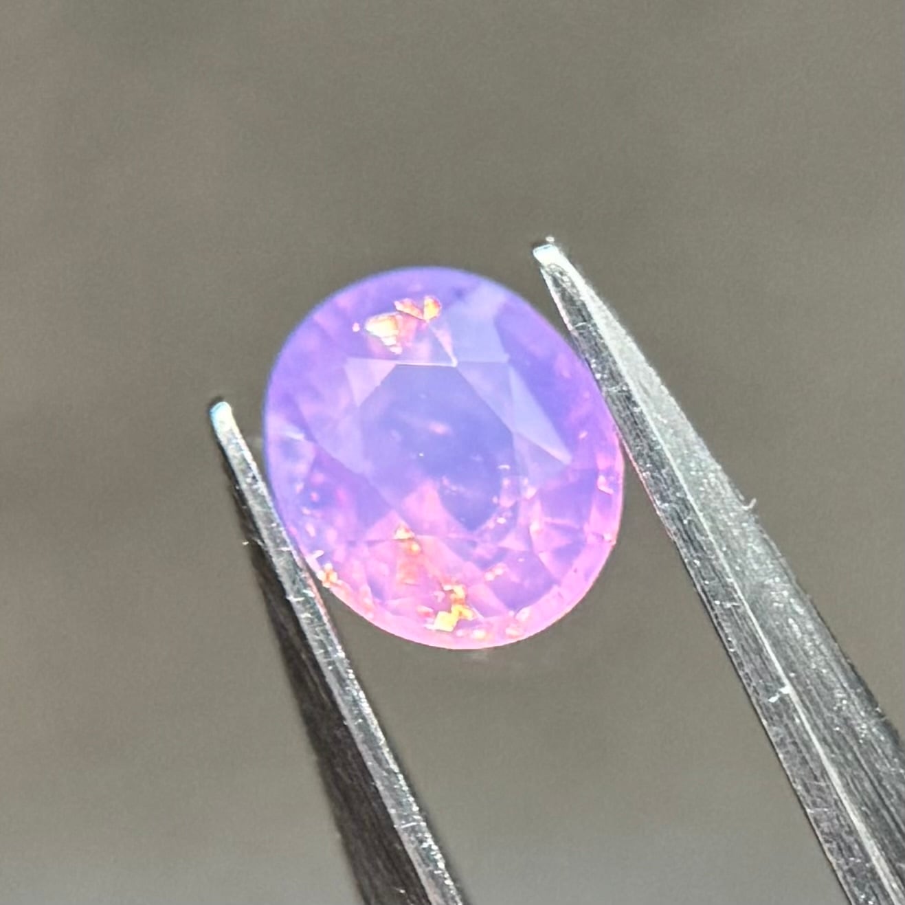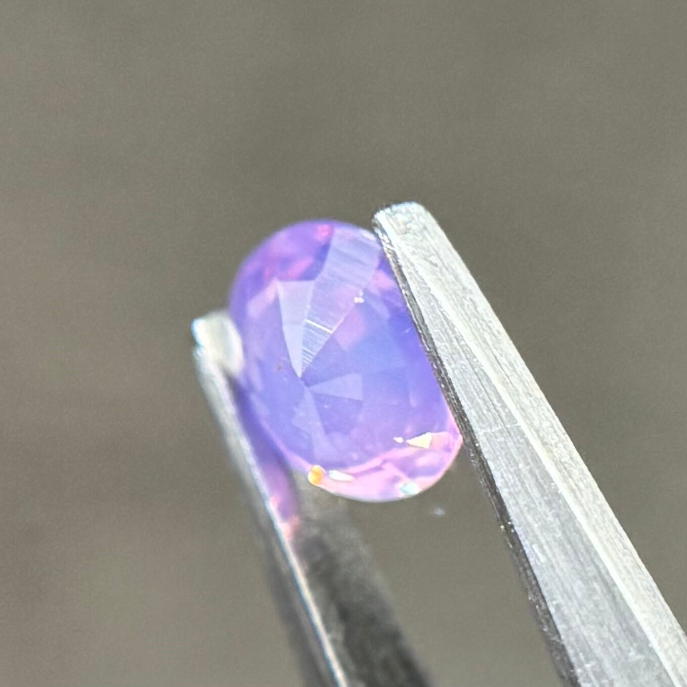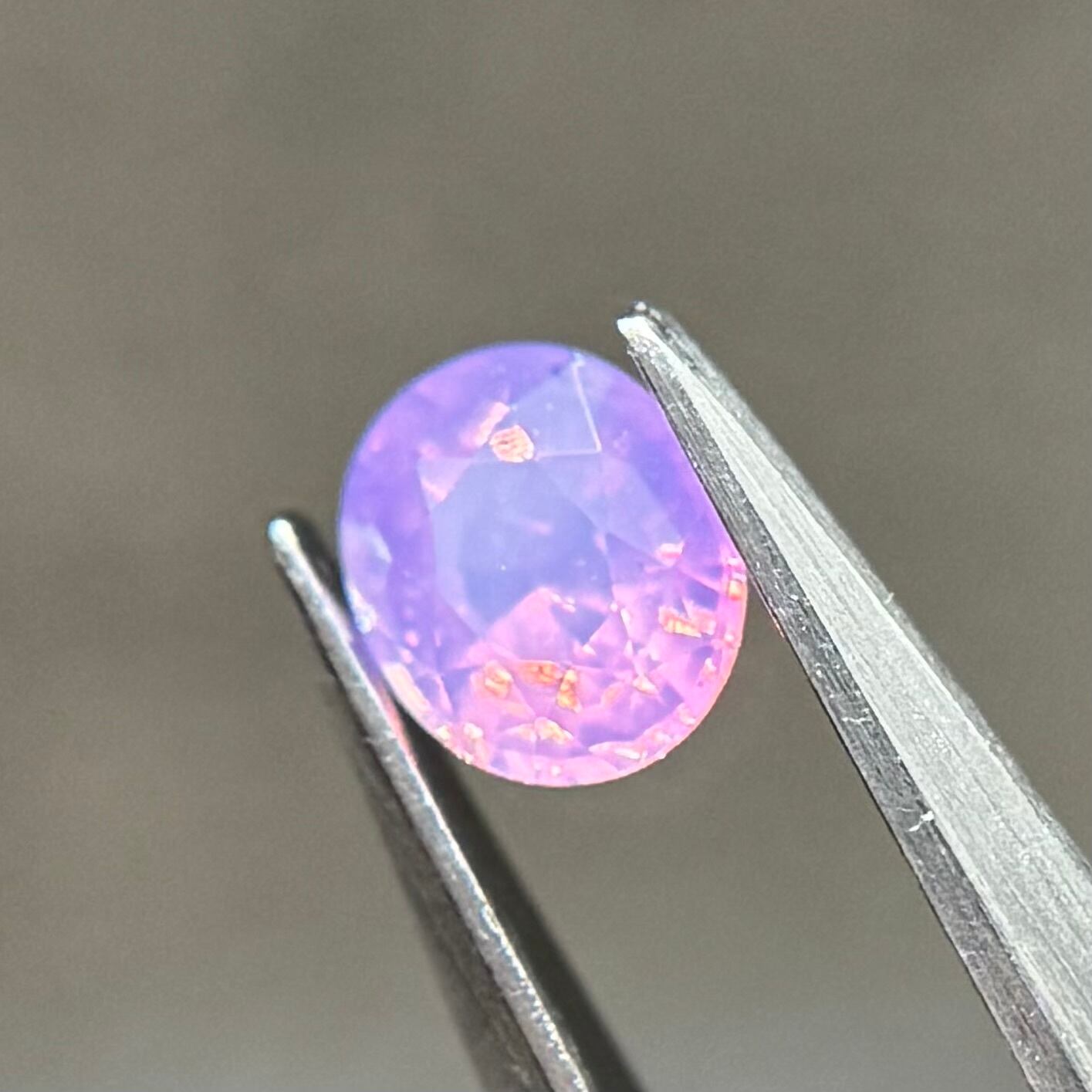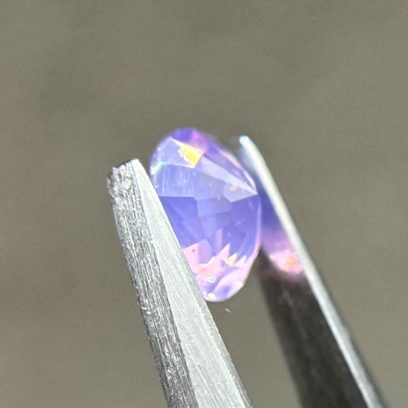 柔らかいミルキーパープルに複数色の暖色系のテリがとても美しいシルキーサファイアです。色がしっかり乗っているので存在感がとてもあります