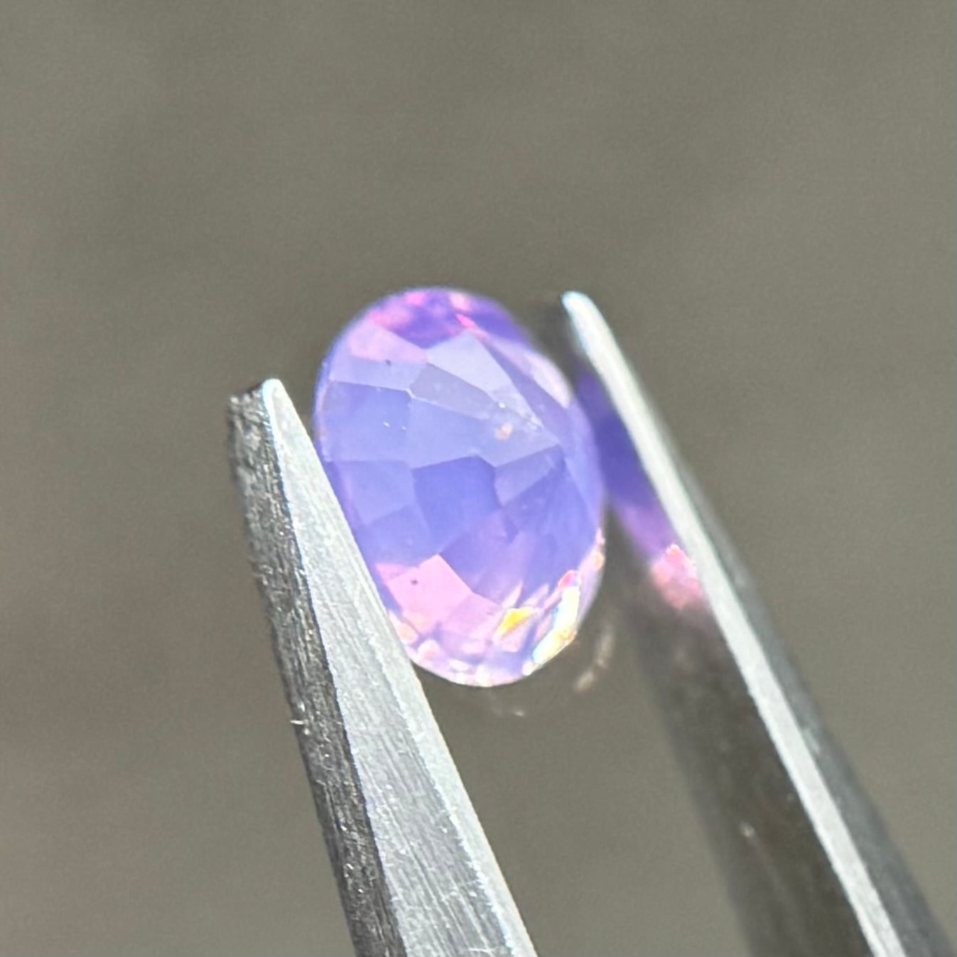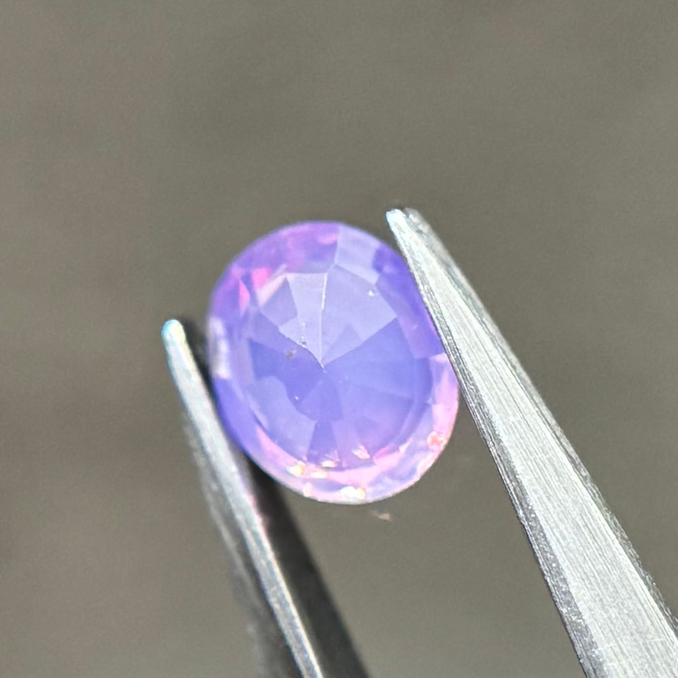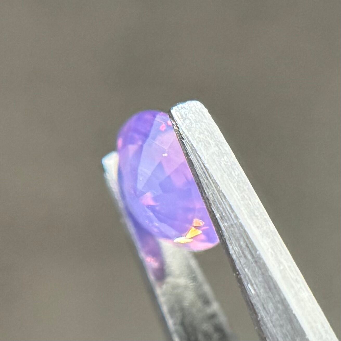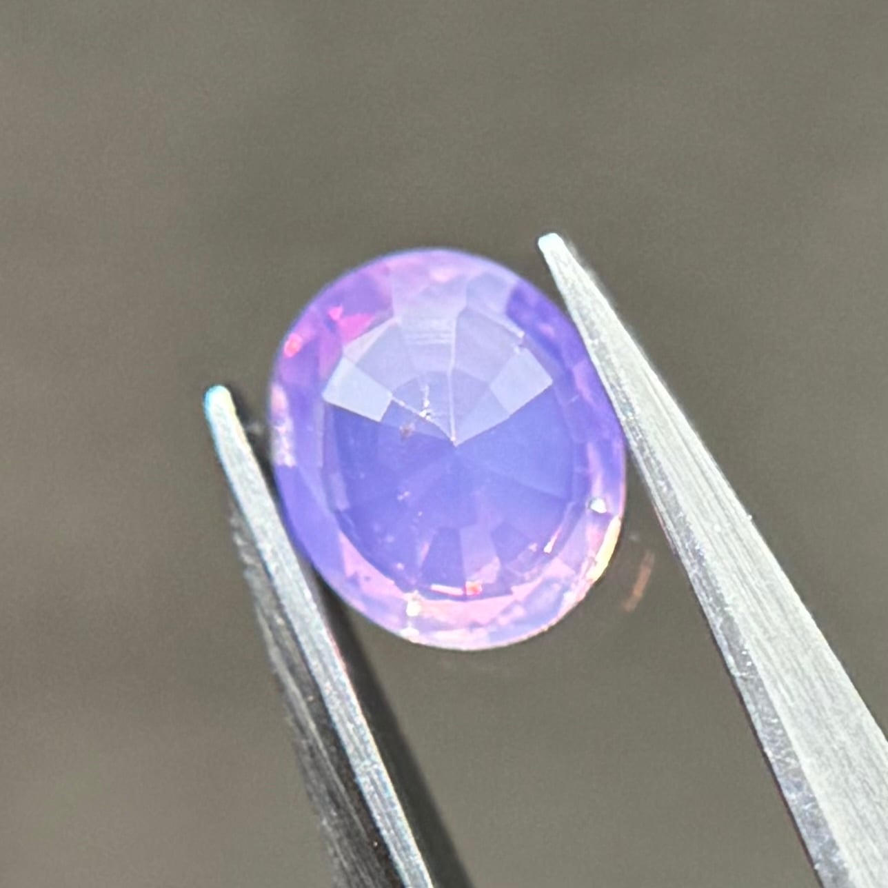 柔らかいミルキーパープルに複数色の暖色系のテリがとても美しいシルキーサファイアです。色がしっかり乗っているので存在感がとてもあります