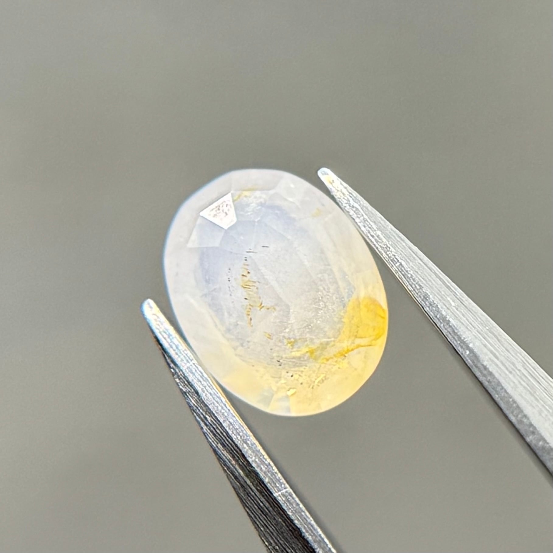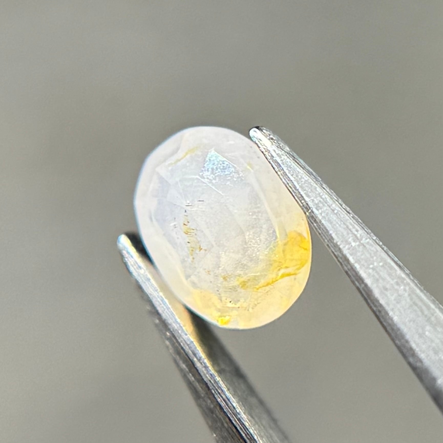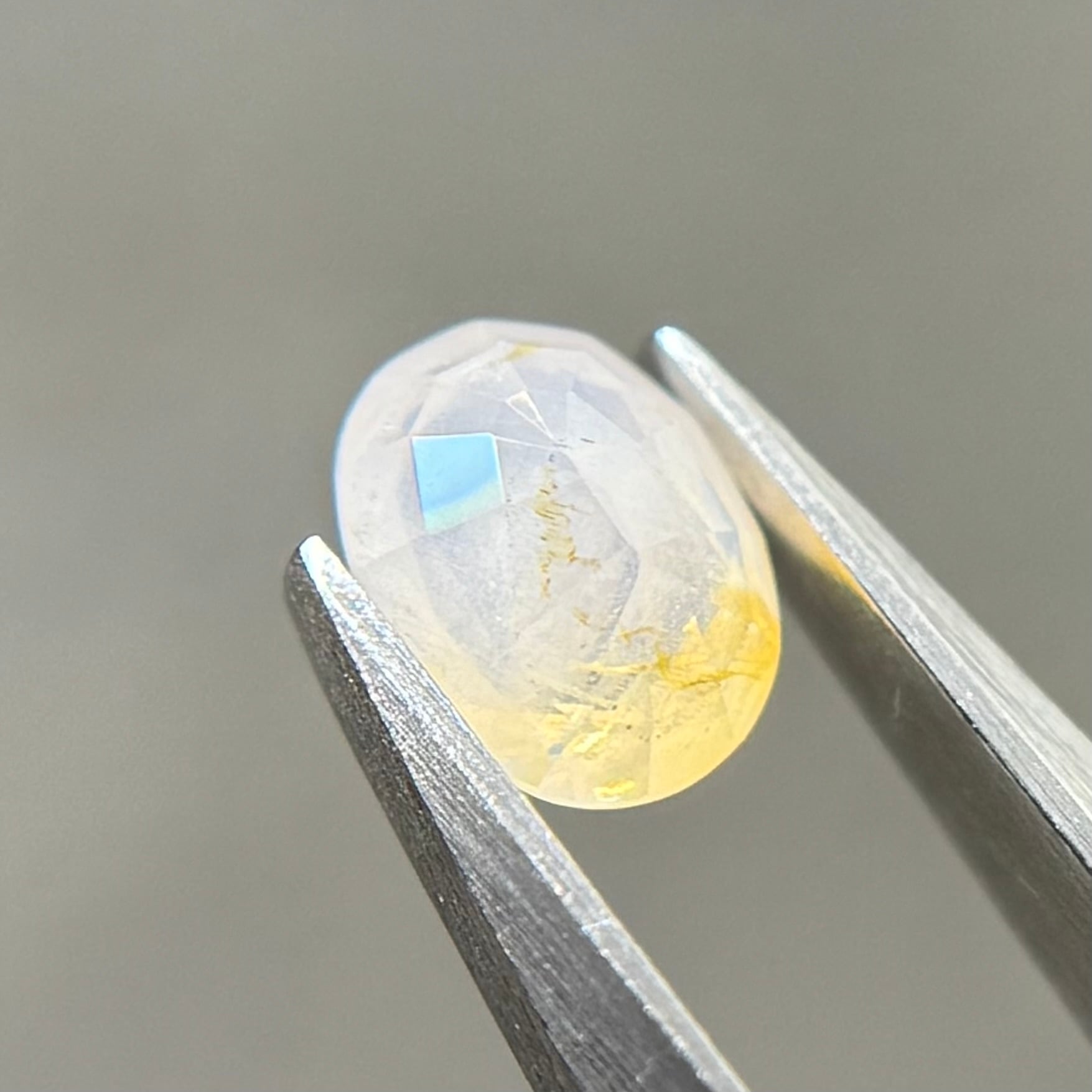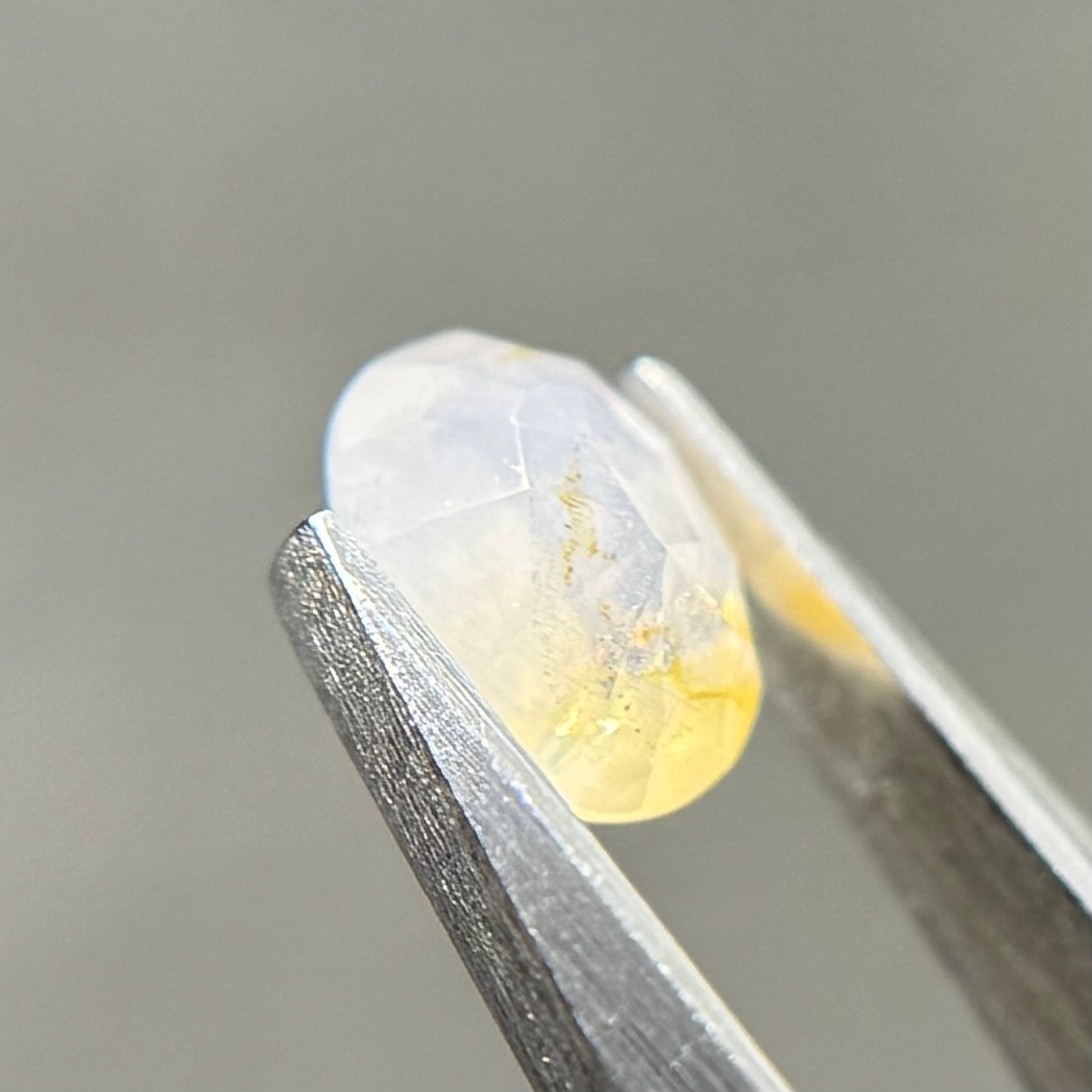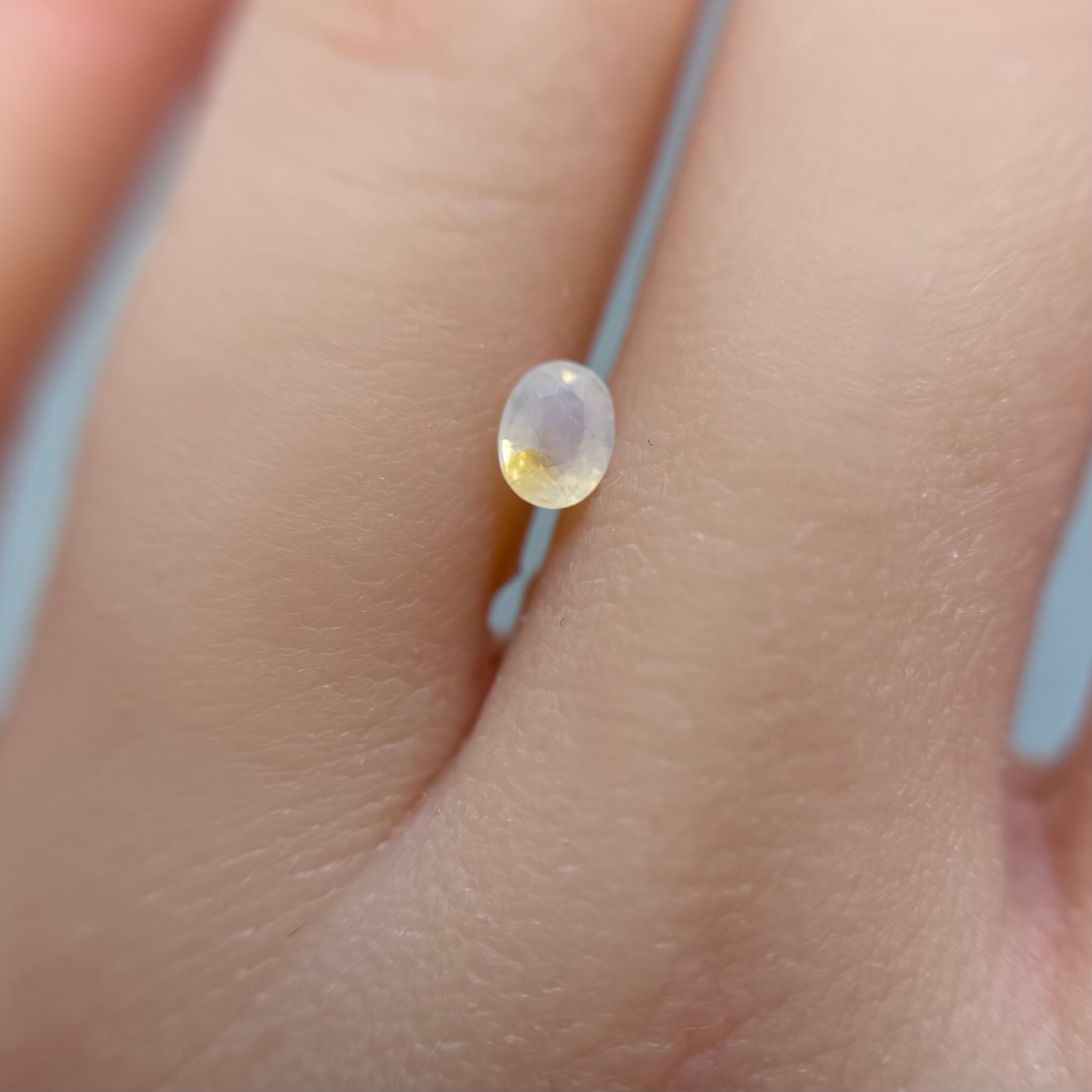 全体がほんのりクリーム色に見えてなんだか美味しそうなシルキーサファイアです。柔らかいオレンジのテリがチラリと見えるのがとても可愛らしいです