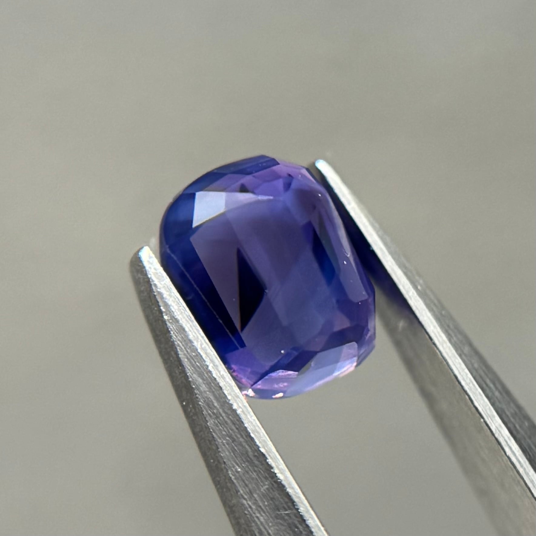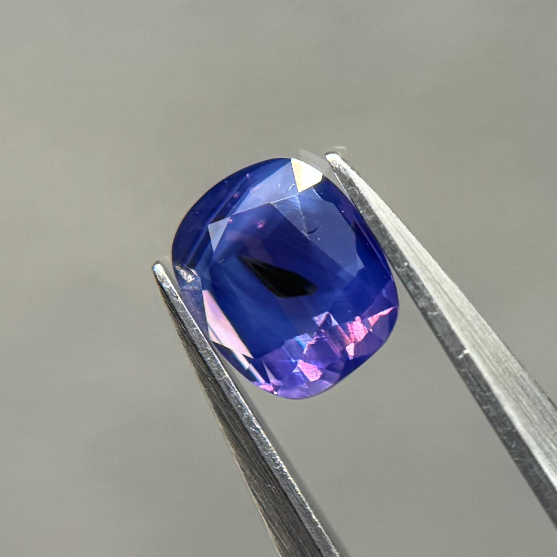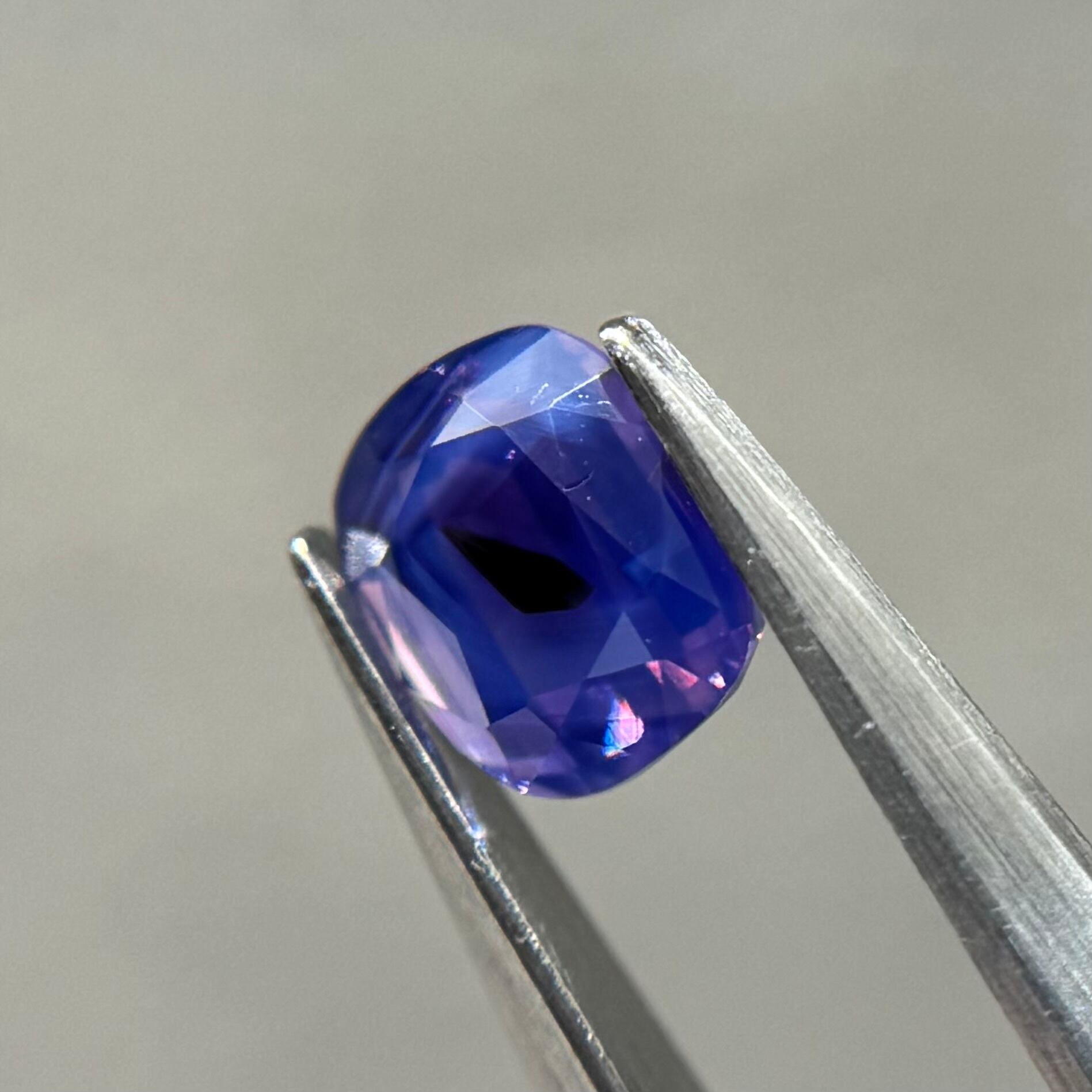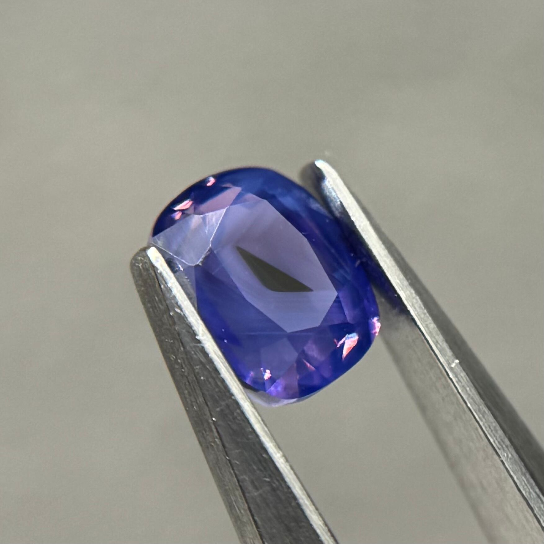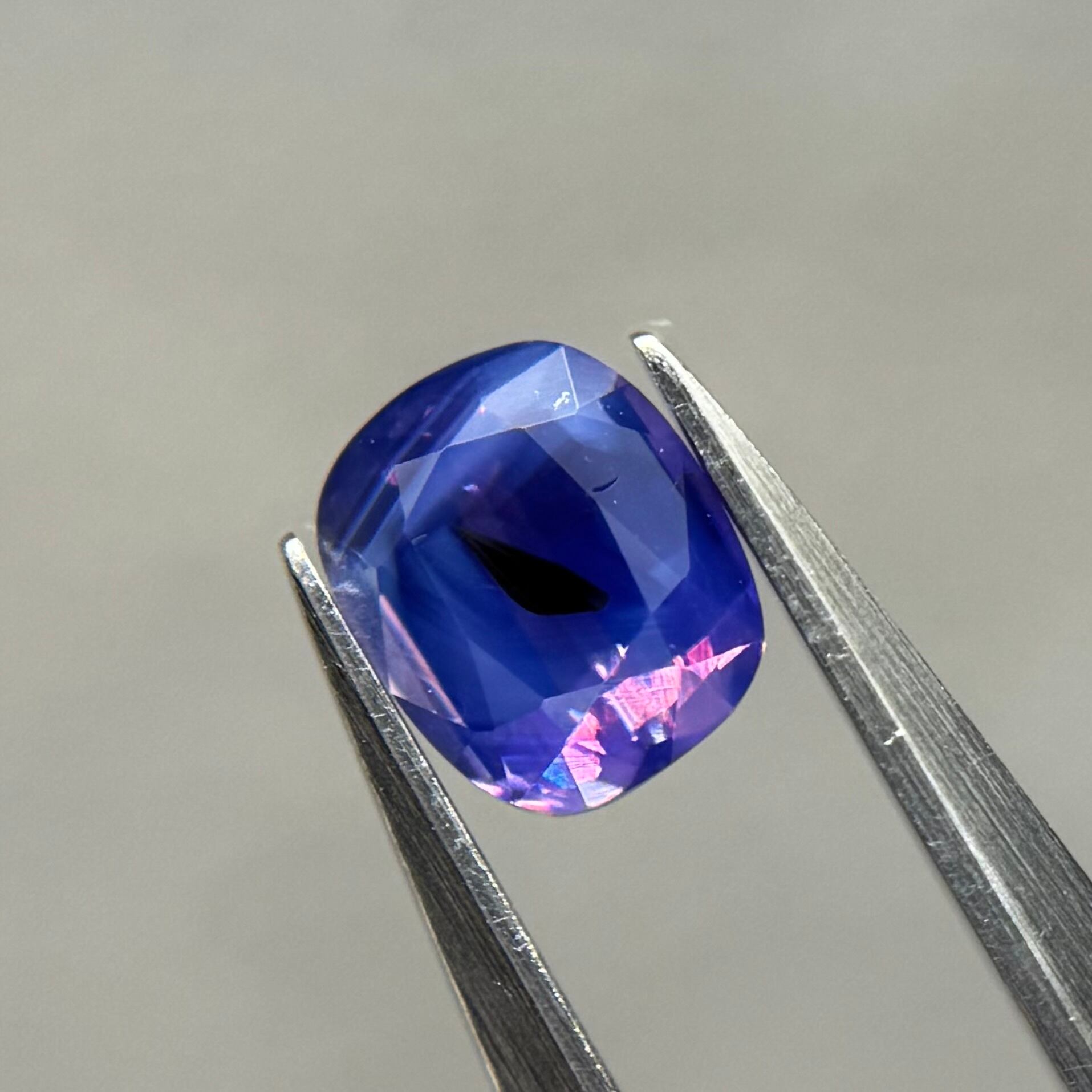 少し傾けるだけで全面にブワッとピンクと紫の極彩色なテリが浮かび上がるシルキーサファイアです。真ん中にある色だまりがまるでブラックムーンのようで可愛いです