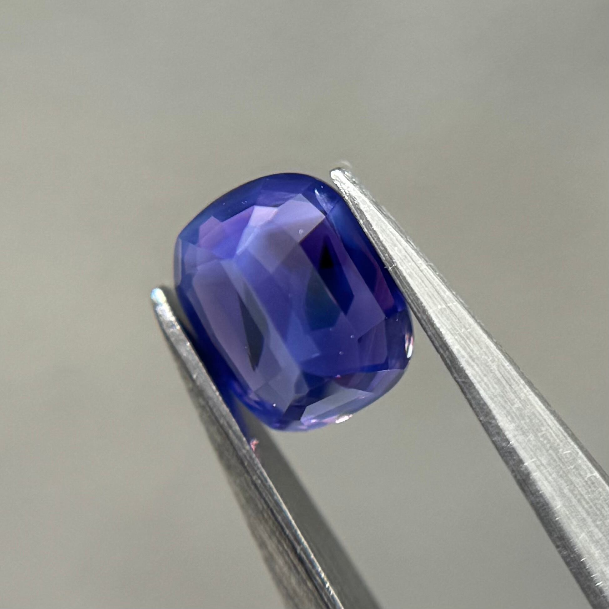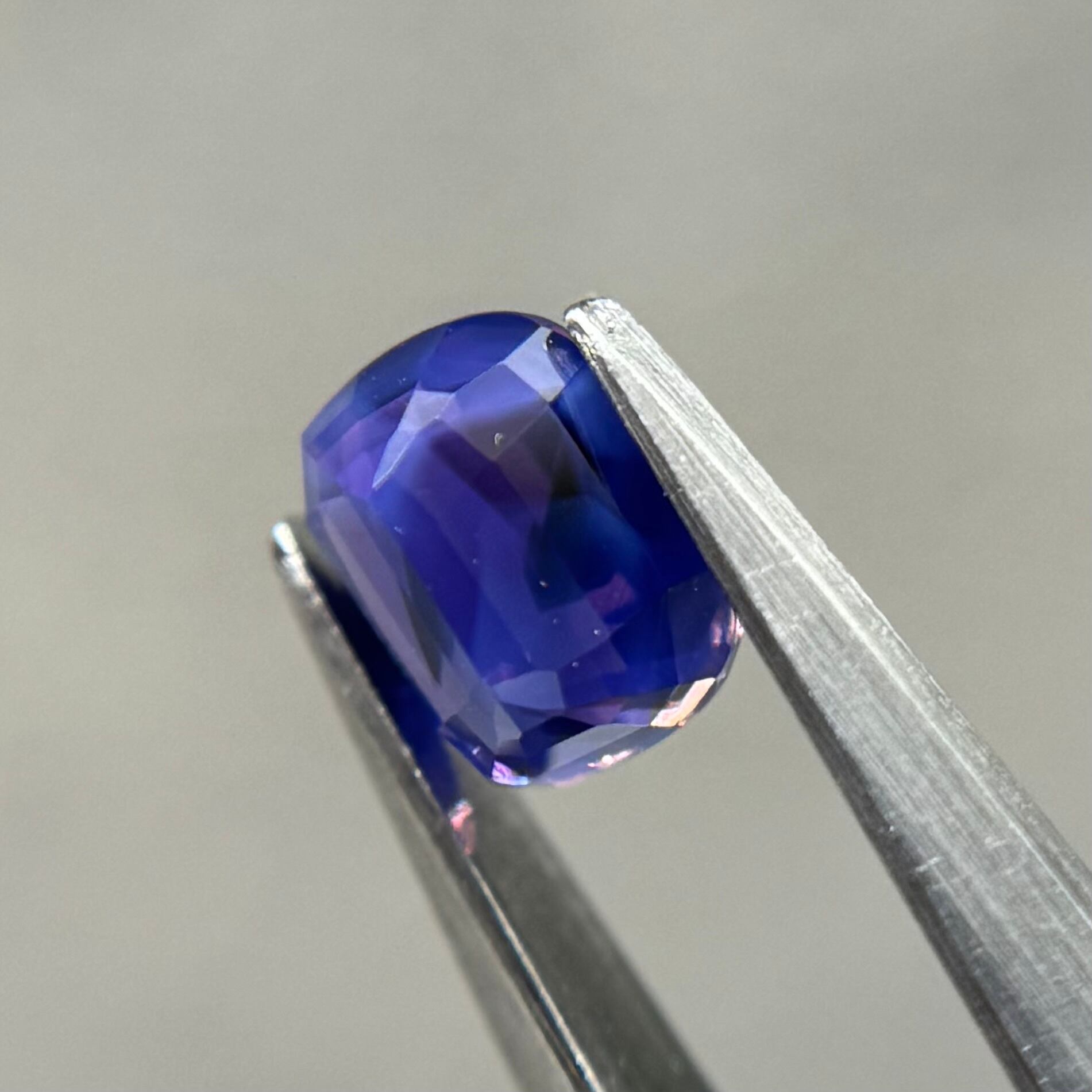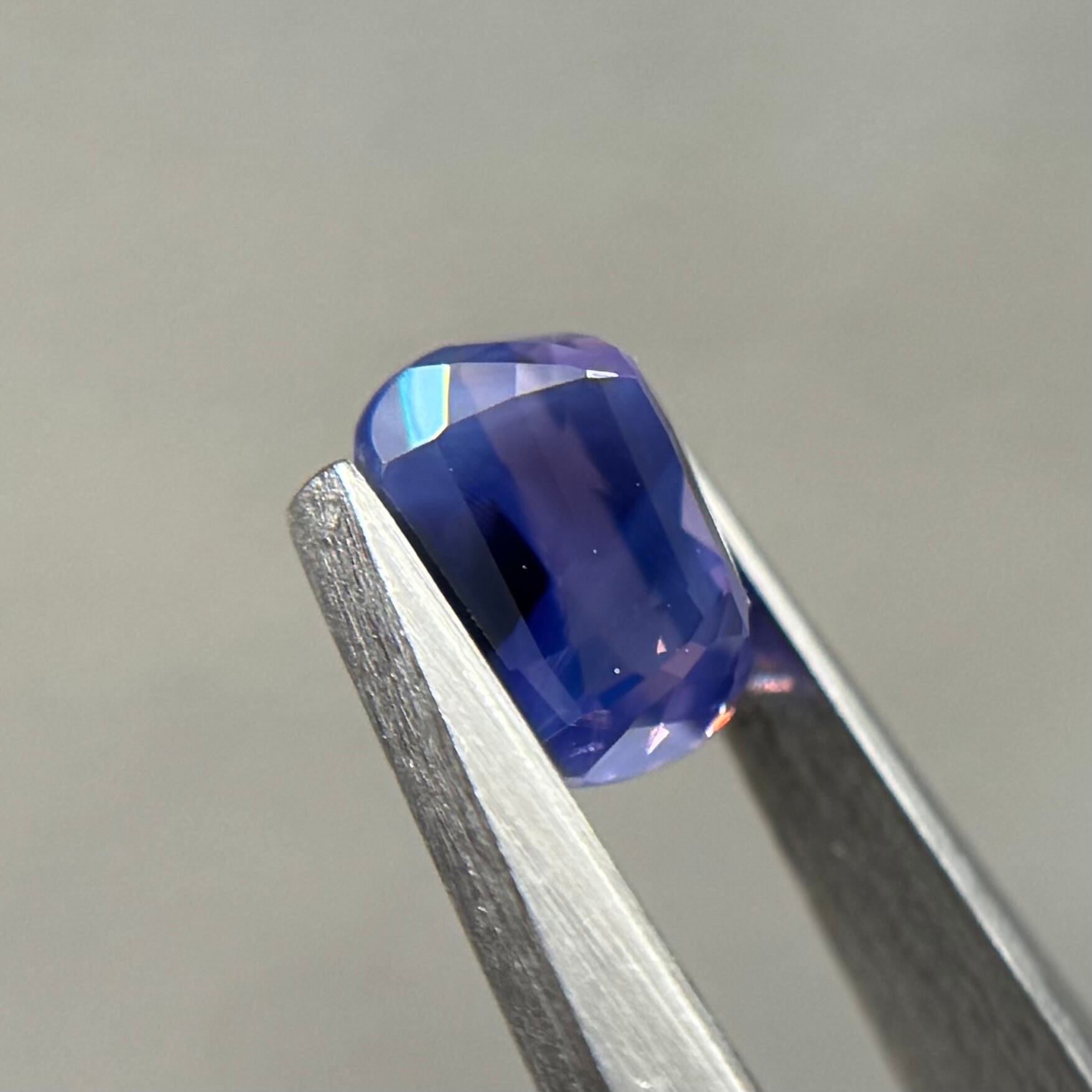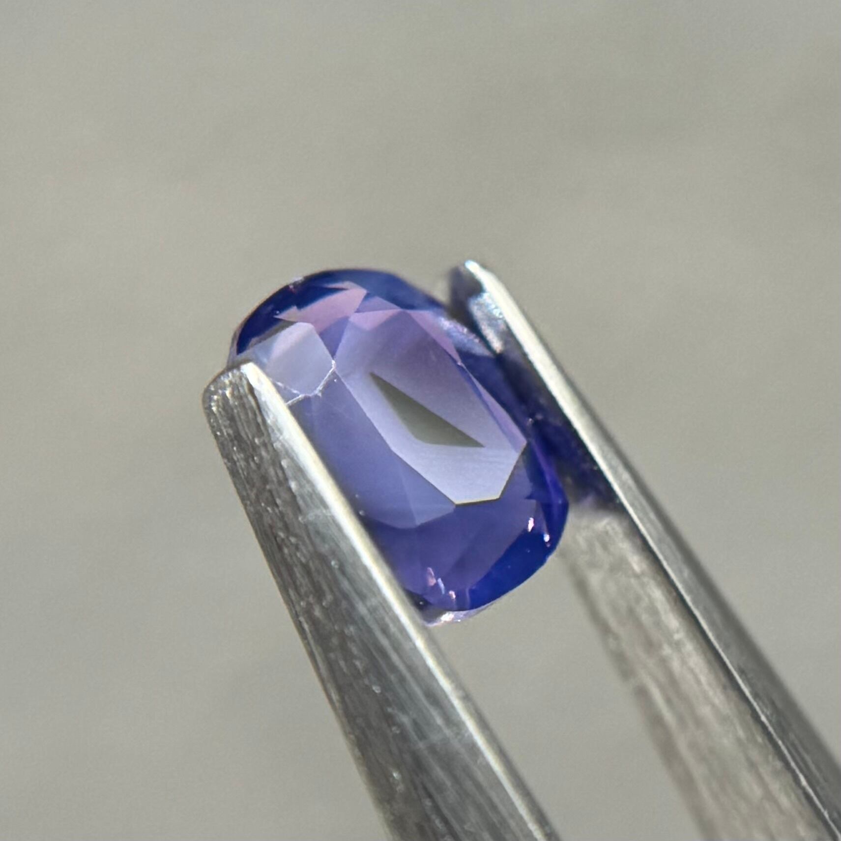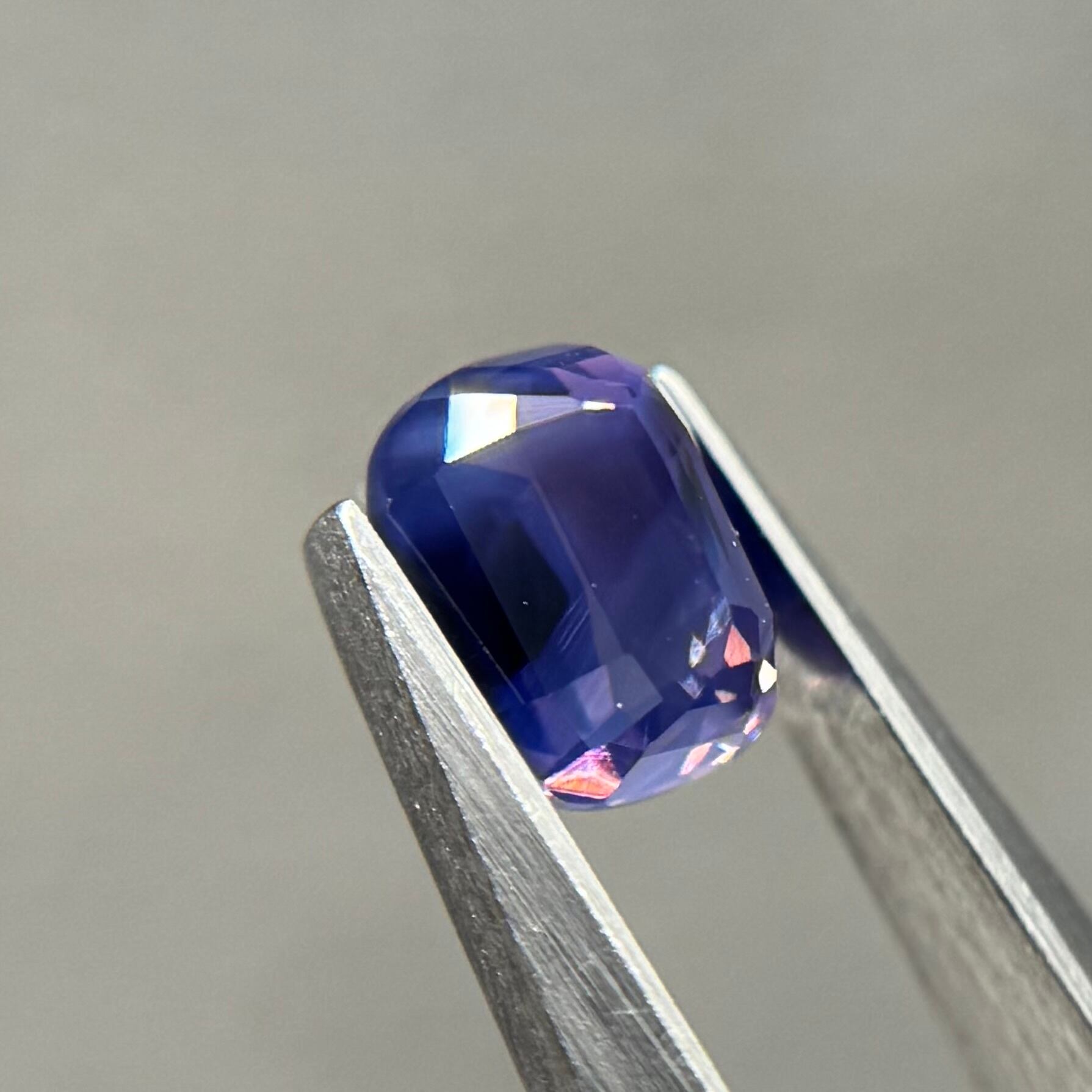 少し傾けるだけで全面にブワッとピンクと紫の極彩色なテリが浮かび上がるシルキーサファイアです。真ん中にある色だまりがまるでブラックムーンのようで可愛いです