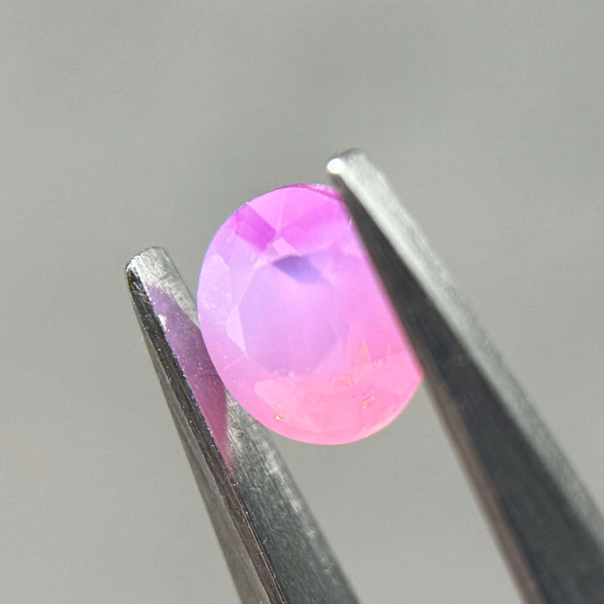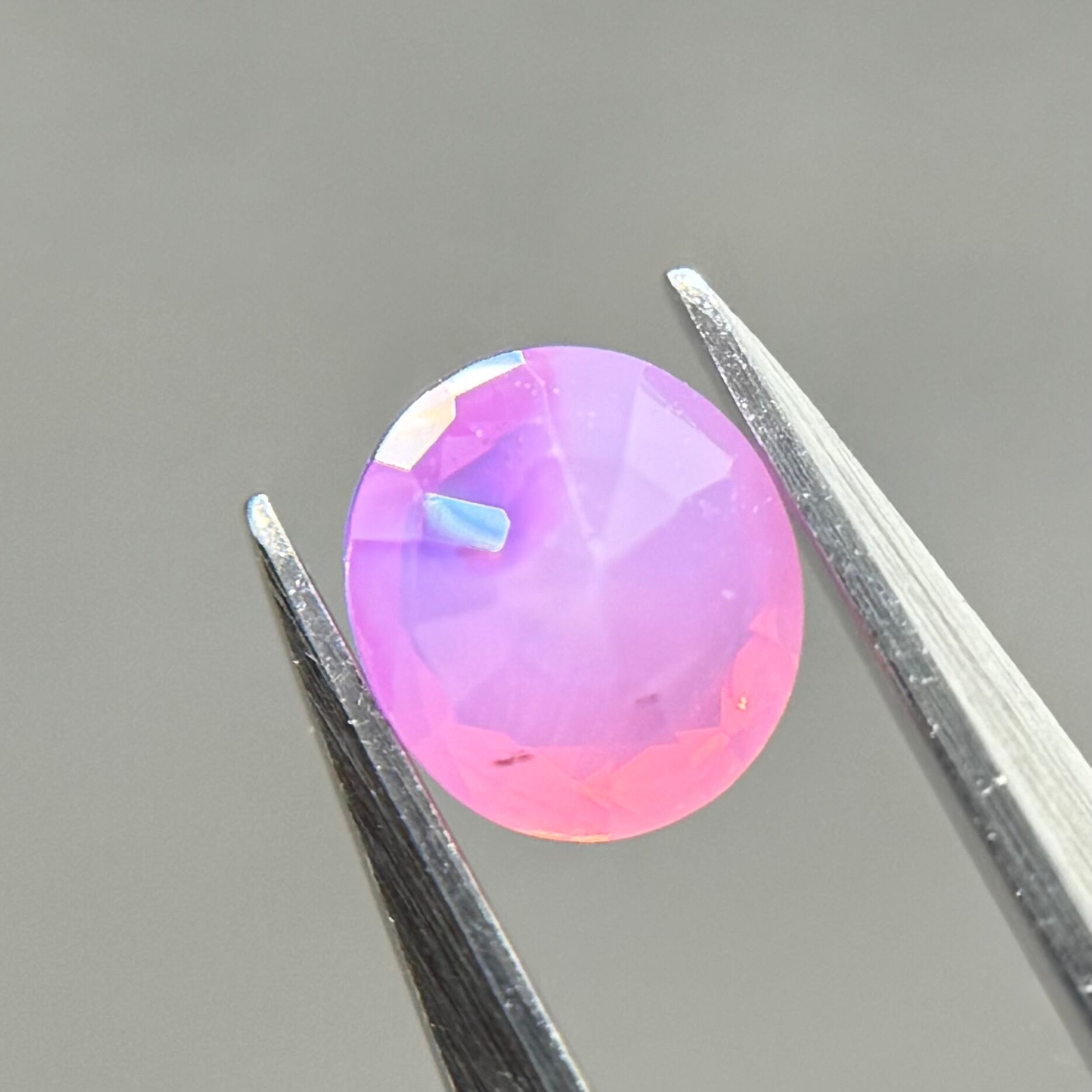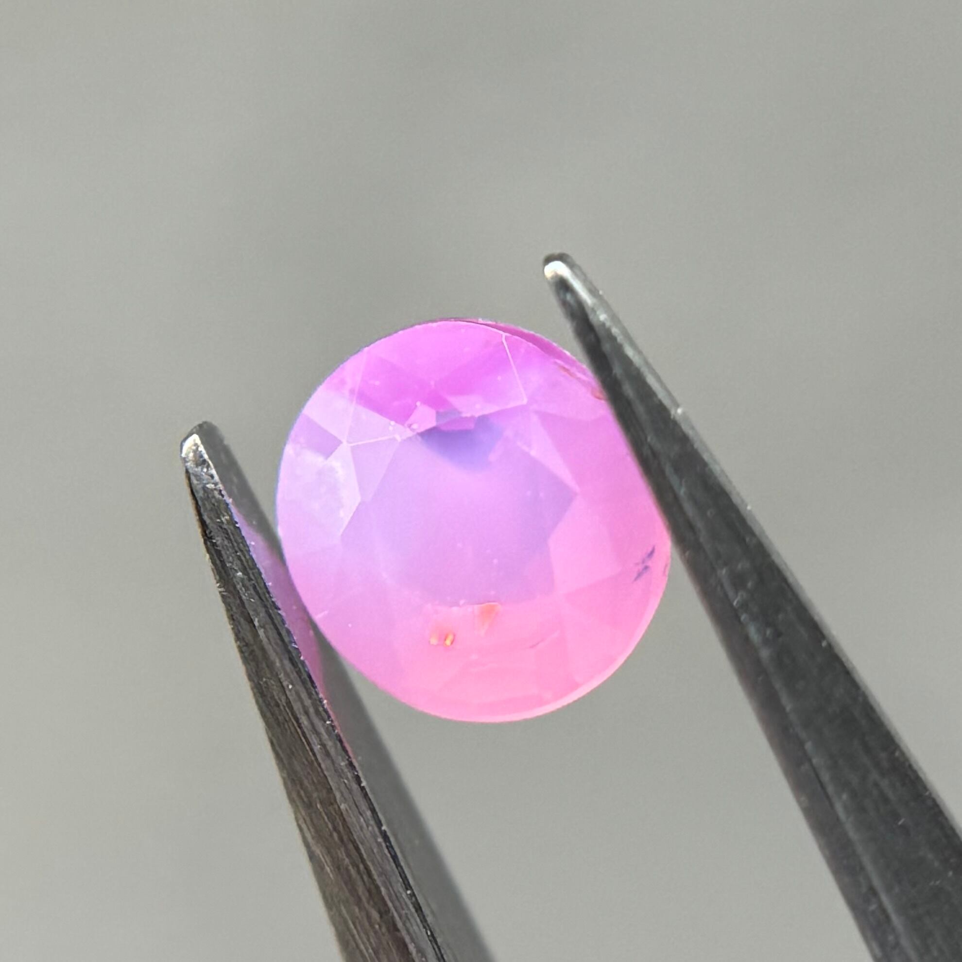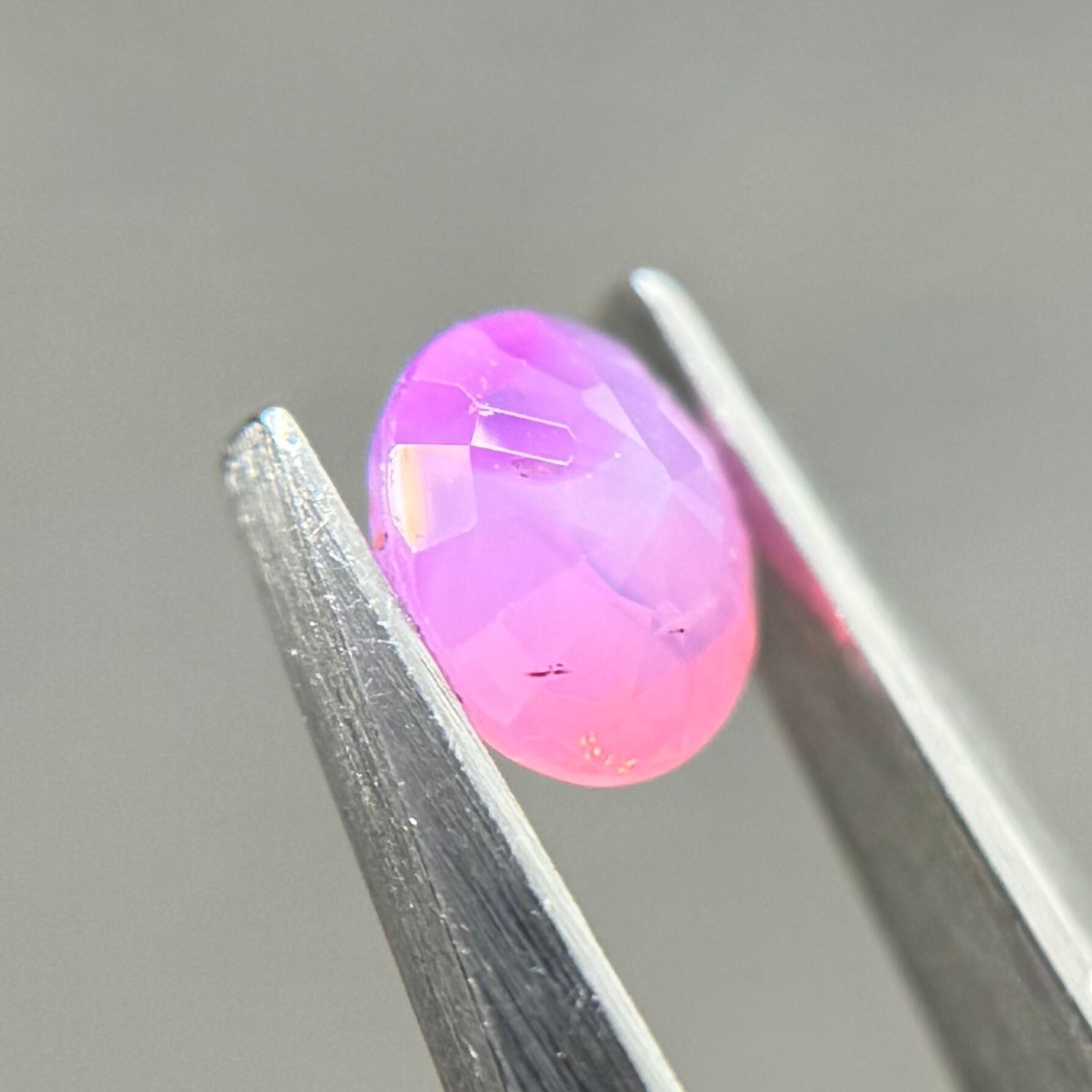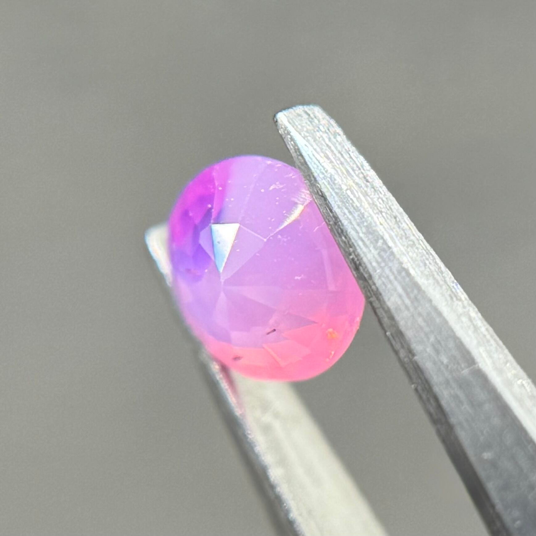 ミルク感強めないちごミルクのようなシルキーサファイアです。ミルキーな部分とクリアな部分が楽しめます。なんだかクリアな部分が髪型のようにも見えてきて可愛らしいです