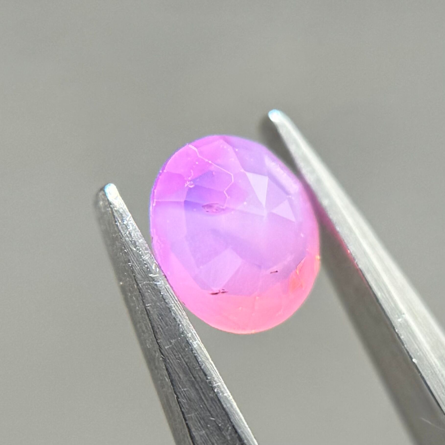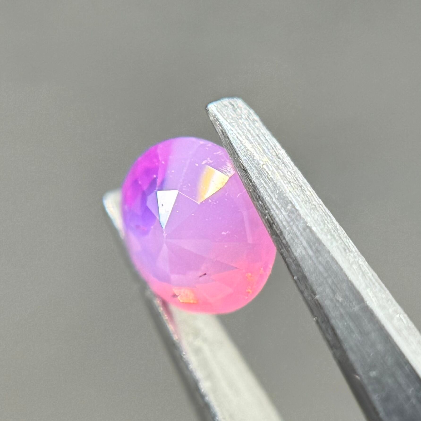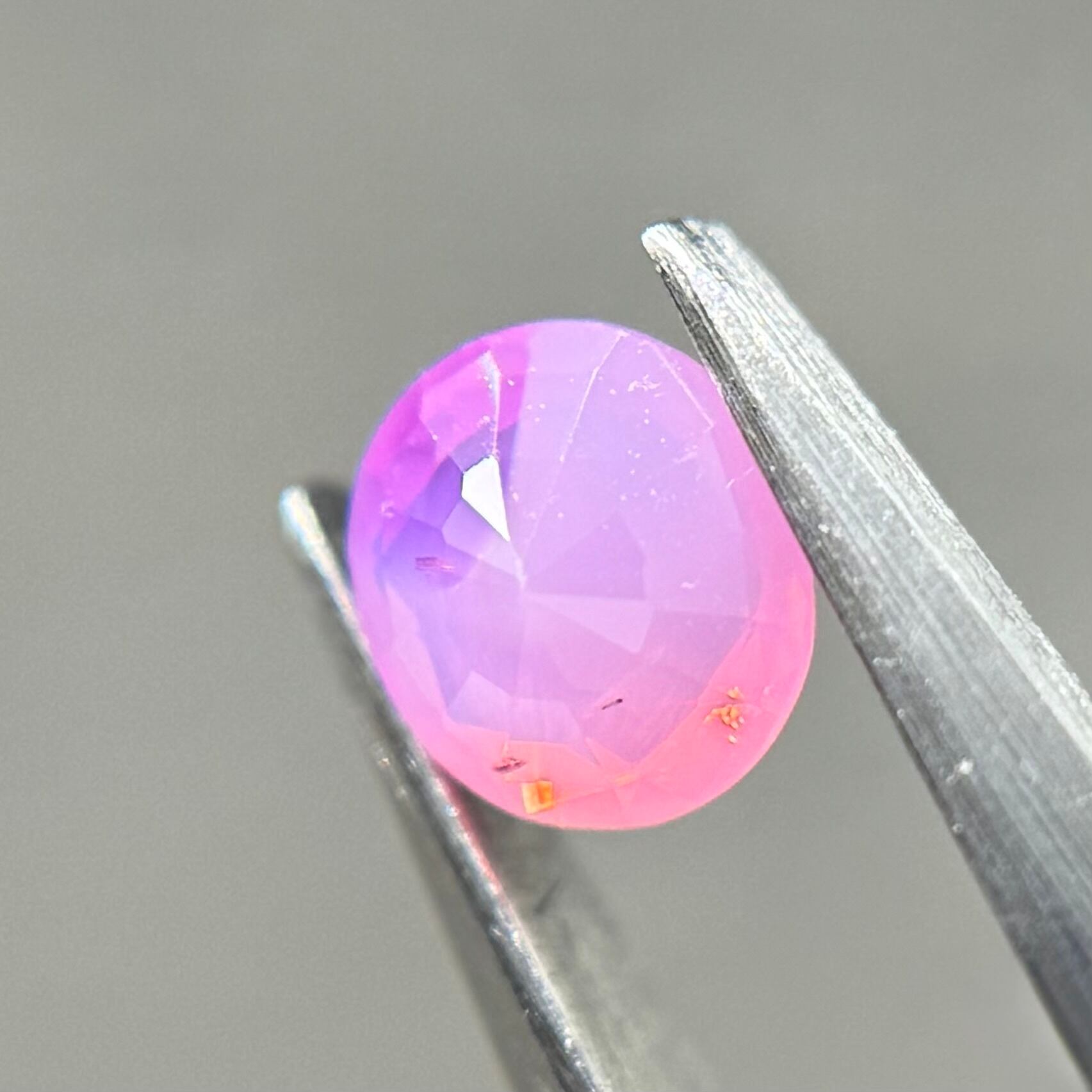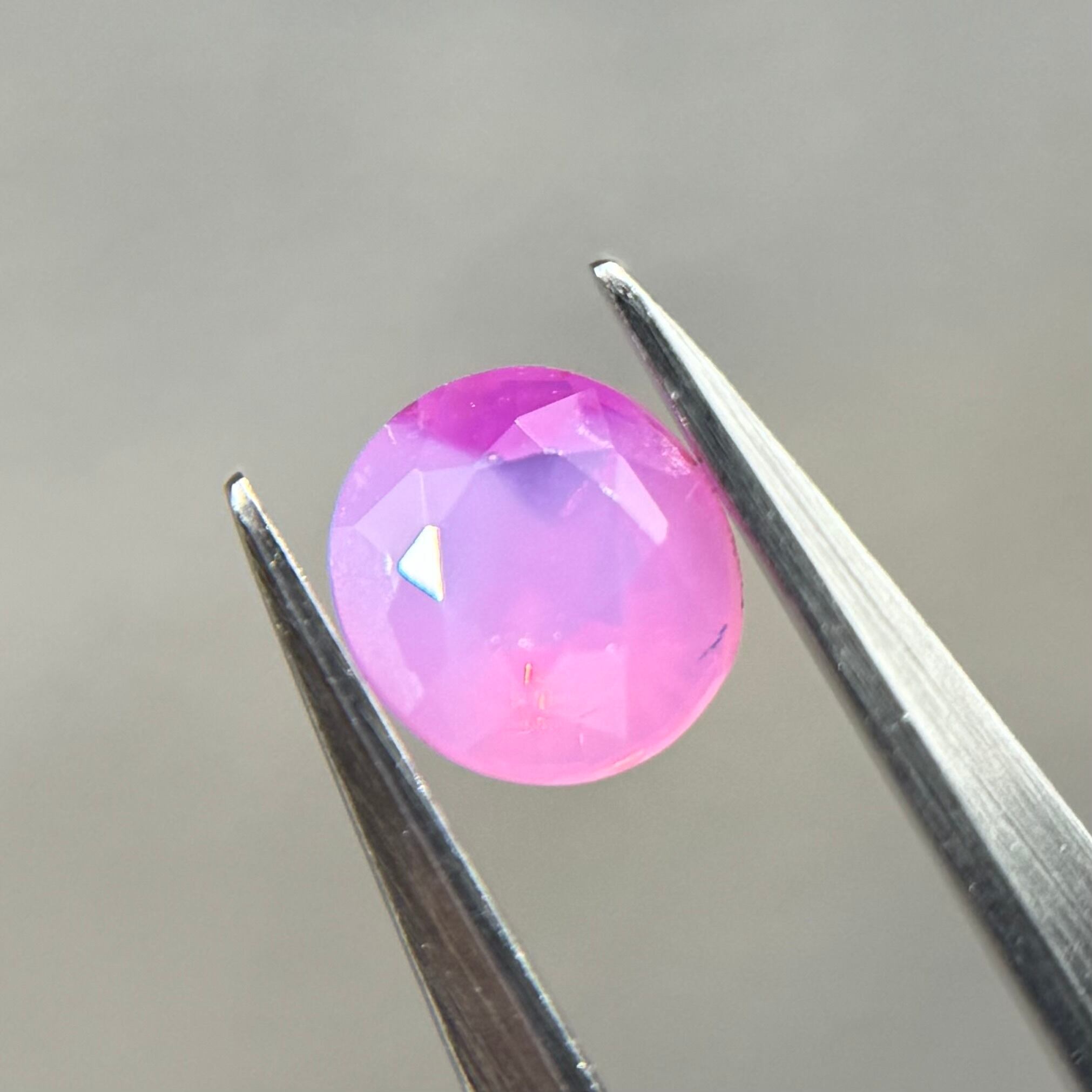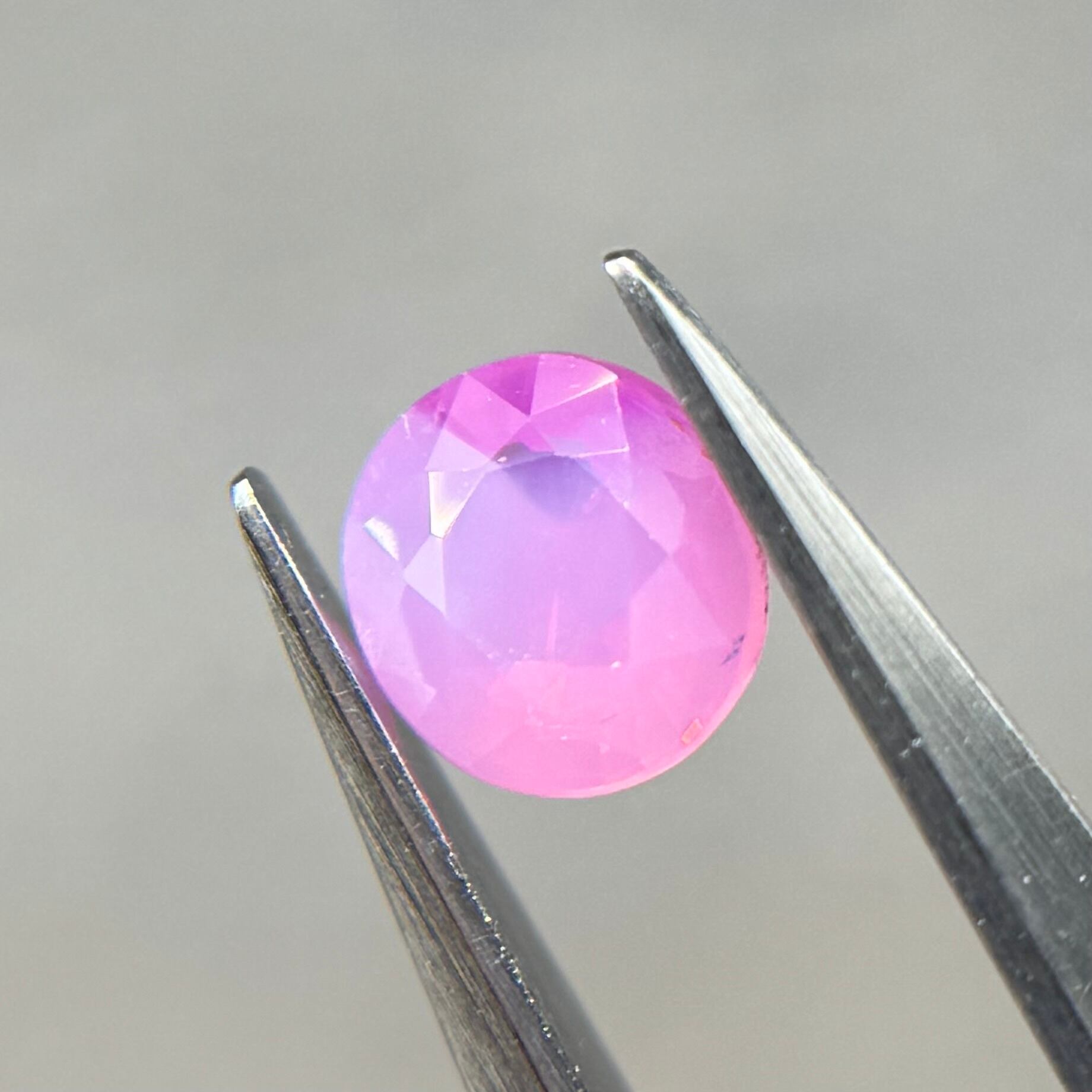 ミルク感強めないちごミルクのようなシルキーサファイアです。ミルキーな部分とクリアな部分が楽しめます。なんだかクリアな部分が髪型のようにも見えてきて可愛らしいです