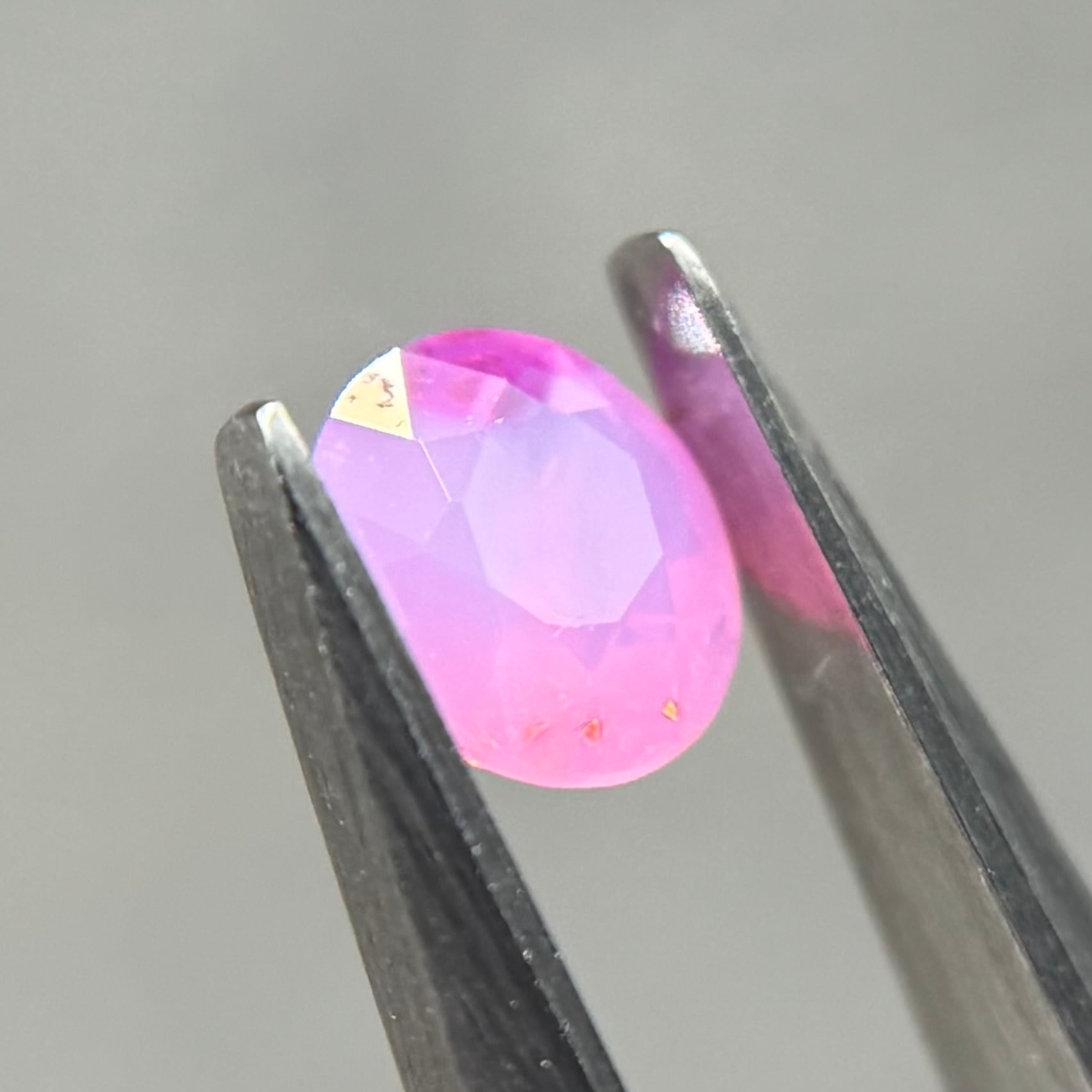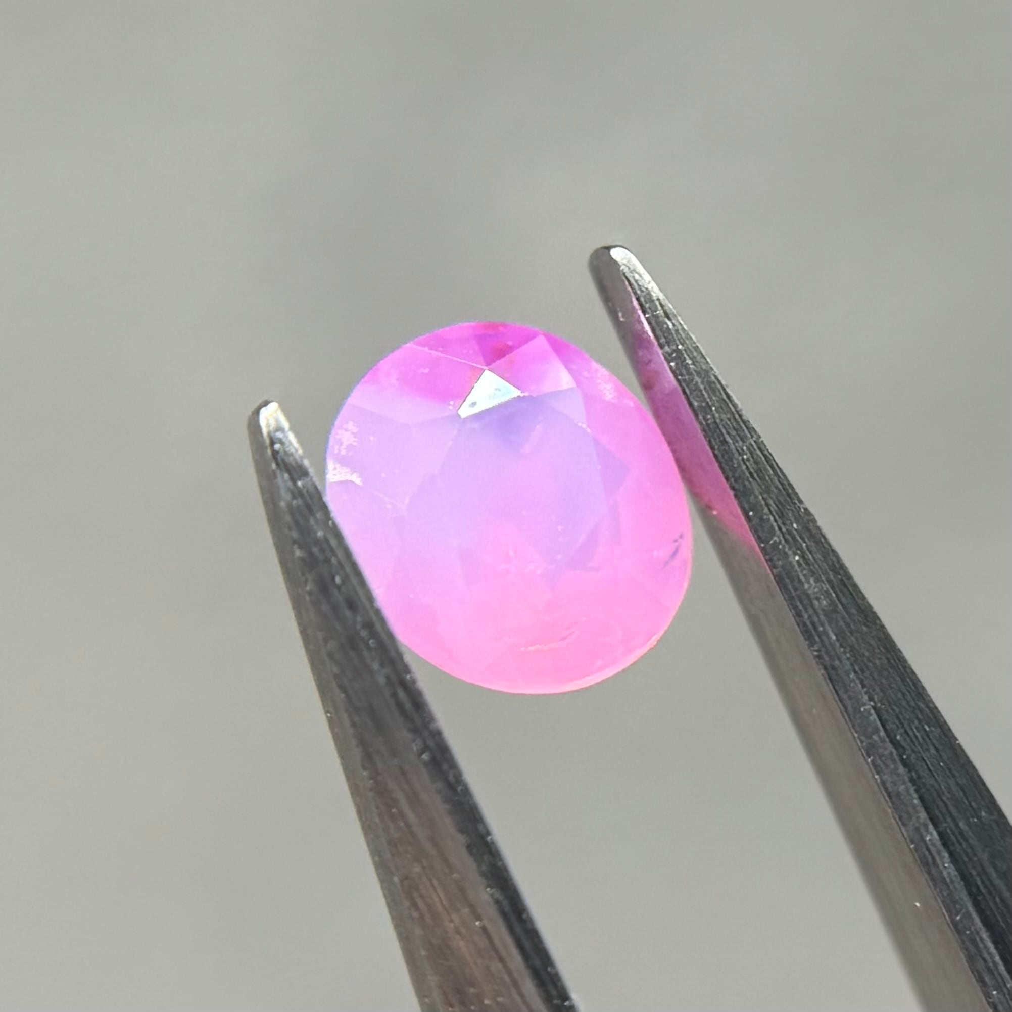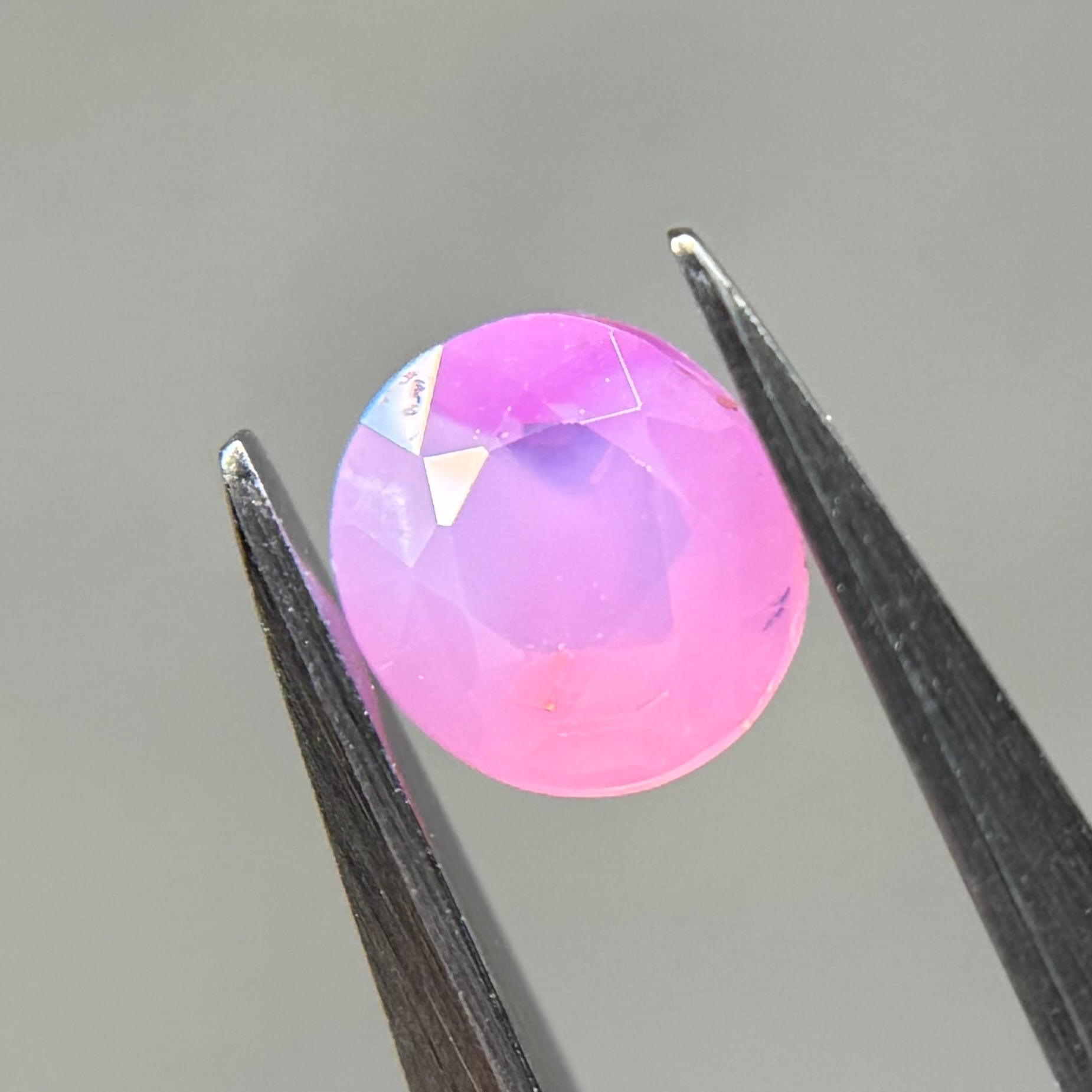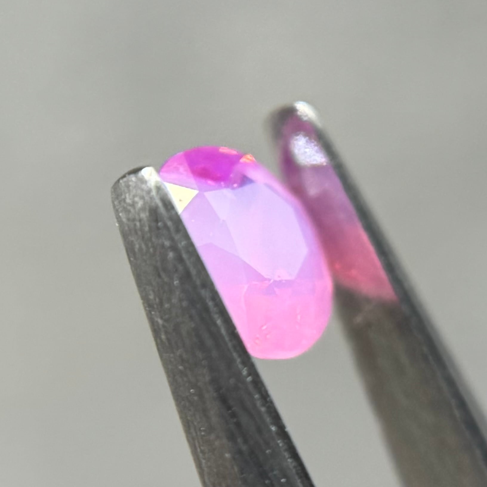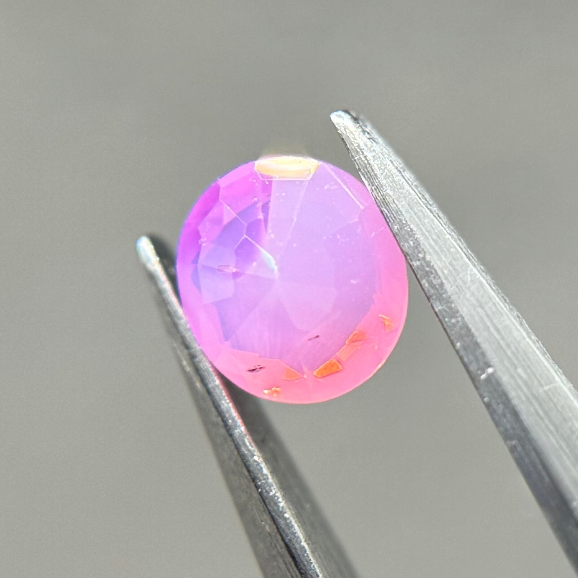 ミルク感強めないちごミルクのようなシルキーサファイアです。ミルキーな部分とクリアな部分が楽しめます。なんだかクリアな部分が髪型のようにも見えてきて可愛らしいです