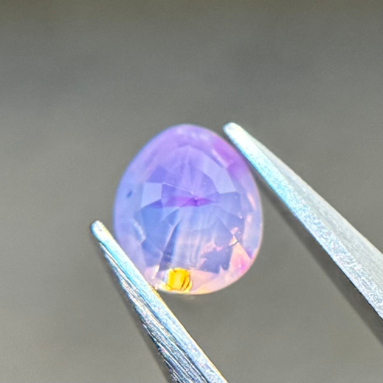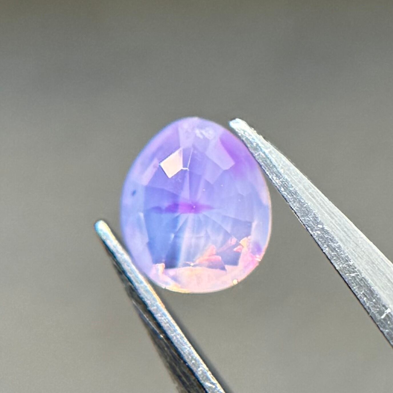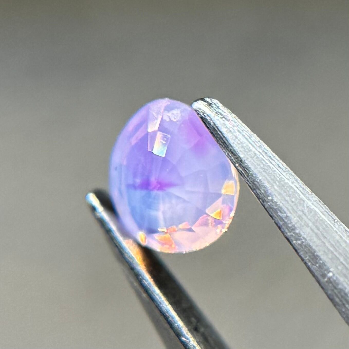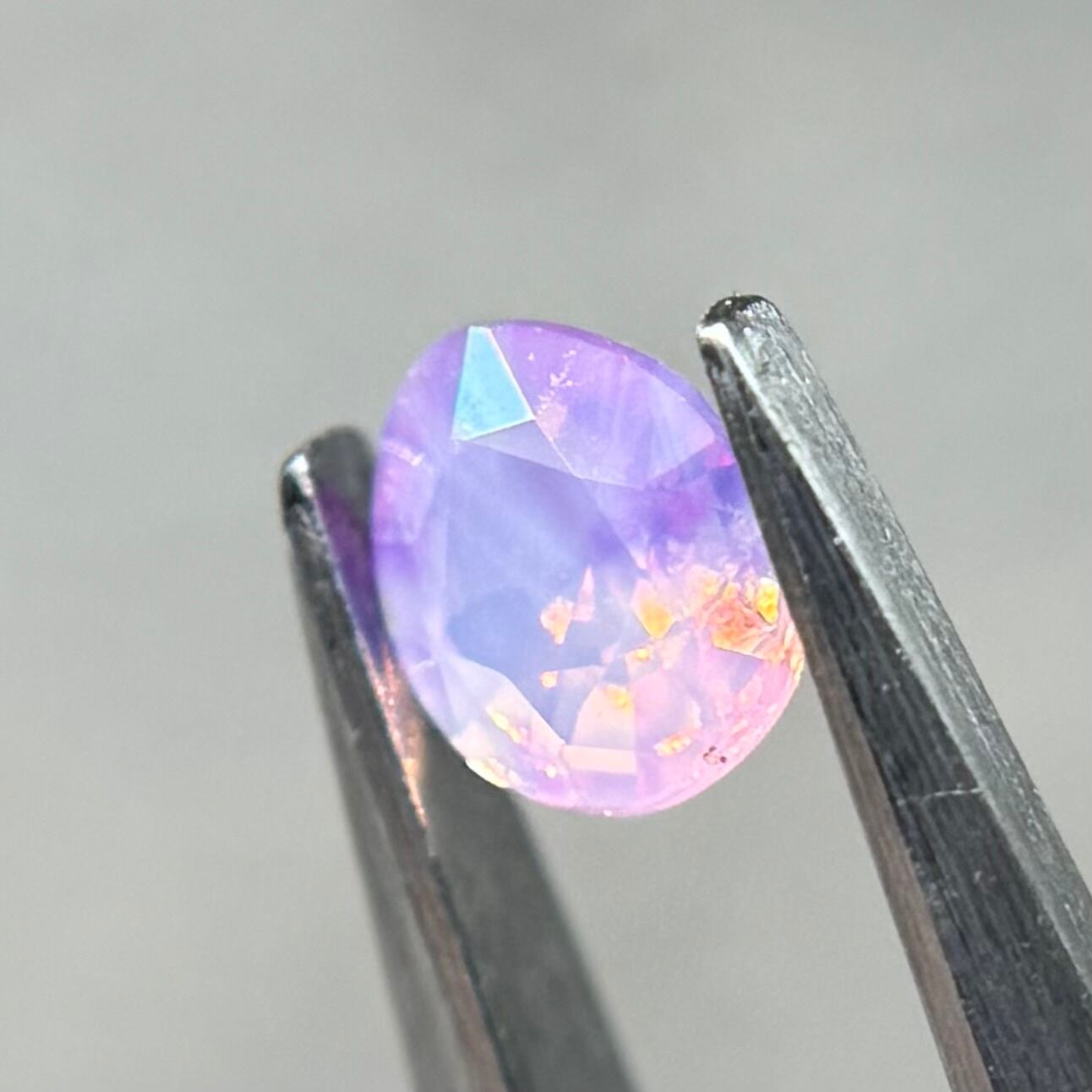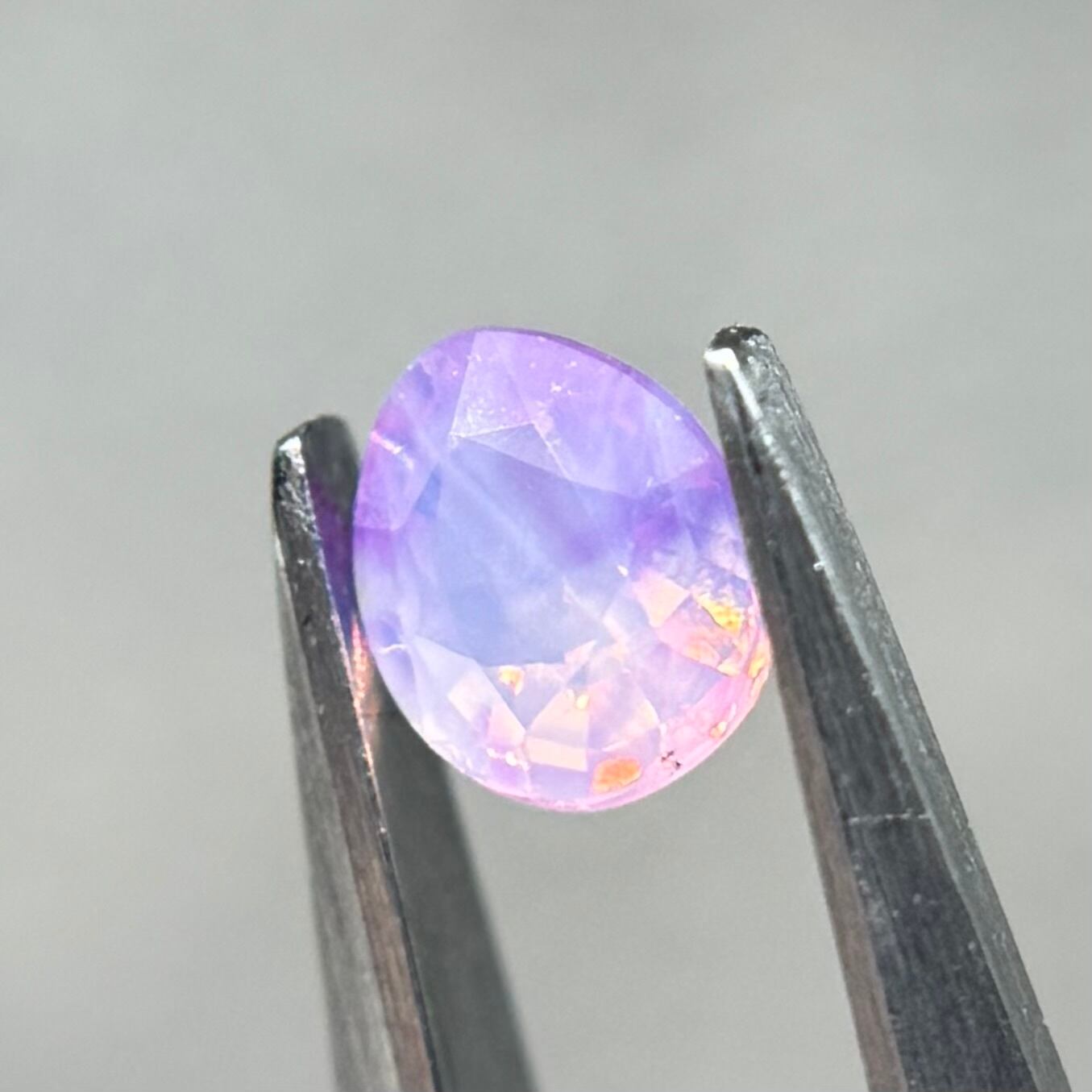 ふんわり紫ベースに色だまりがマーブル状に複数入っておりユメカワなシルキーサファイアです。暖色系のテリもしっかり感じられます