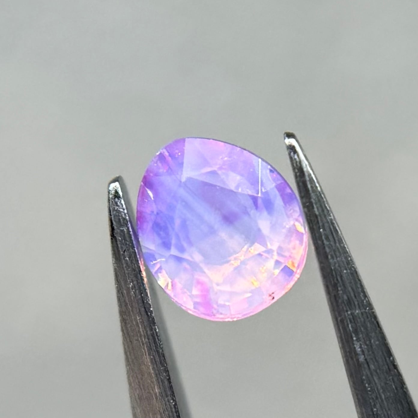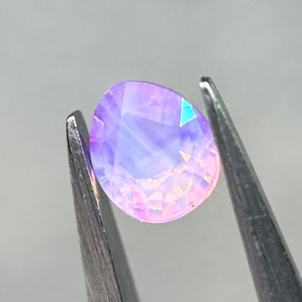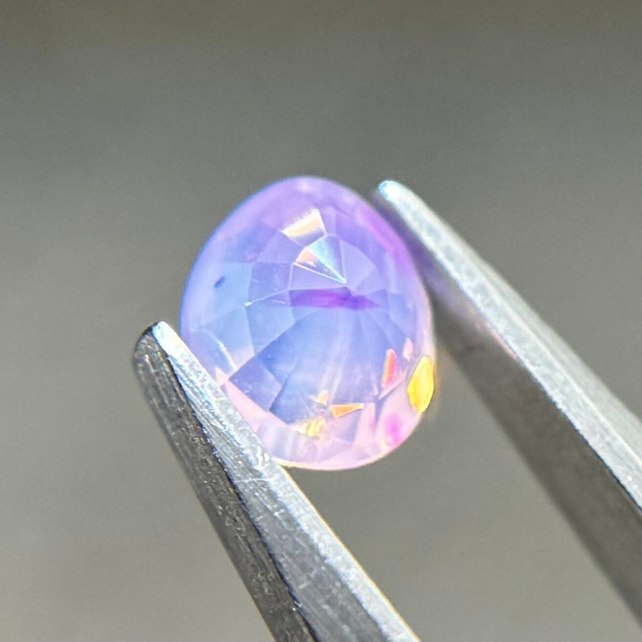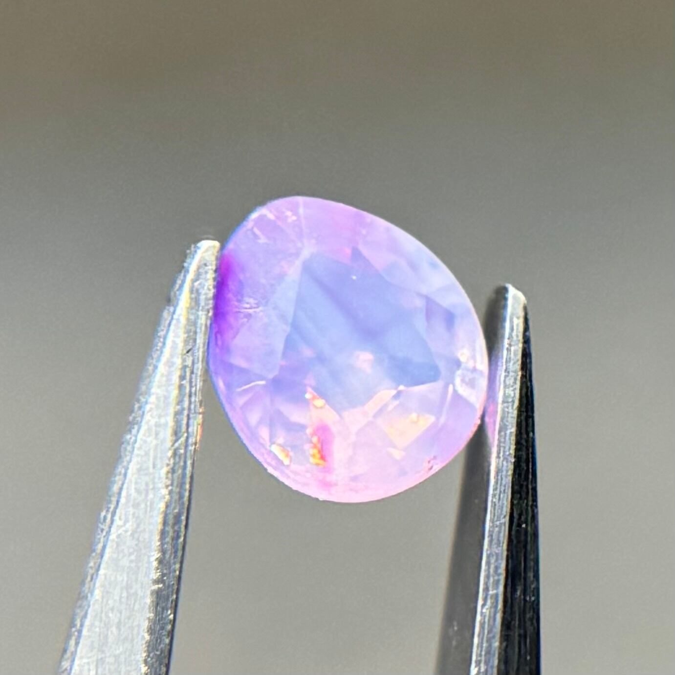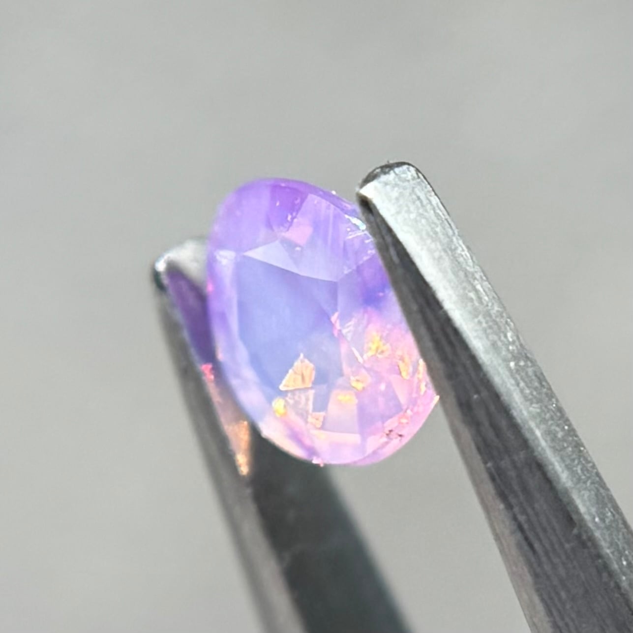 ふんわり紫ベースに色だまりがマーブル状に複数入っておりユメカワなシルキーサファイアです。暖色系のテリもしっかり感じられます
