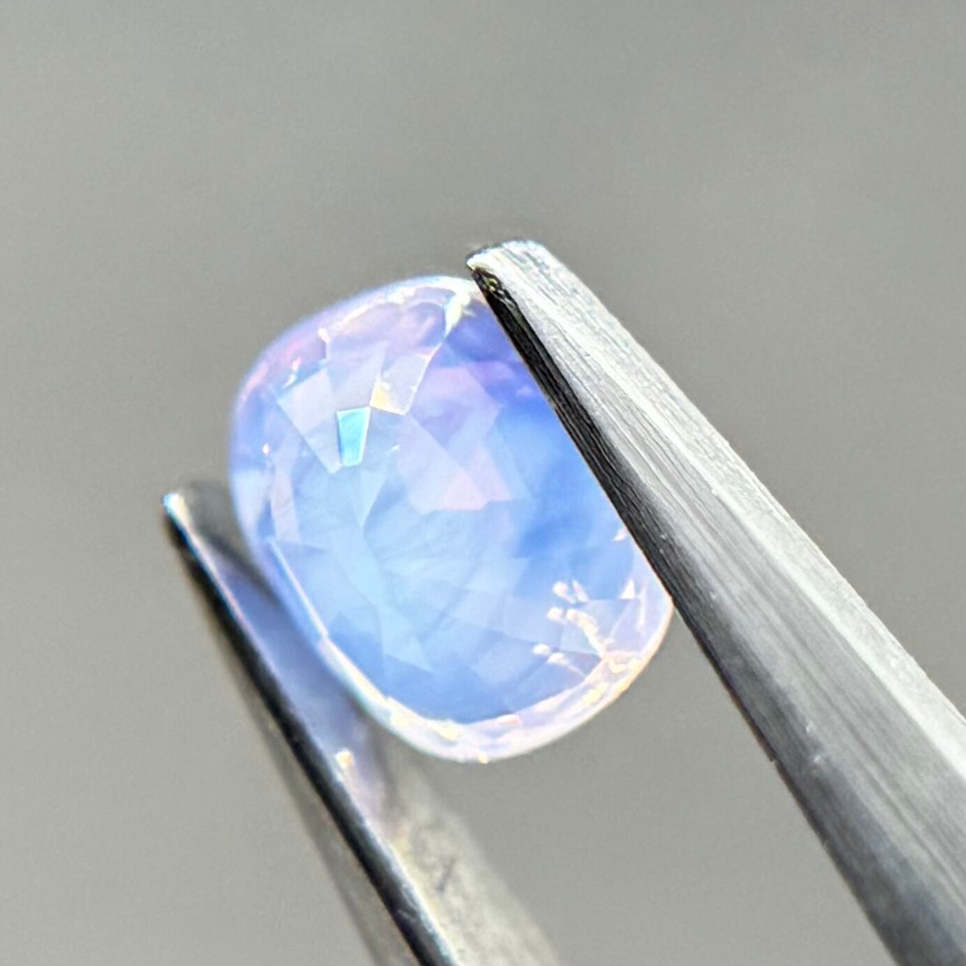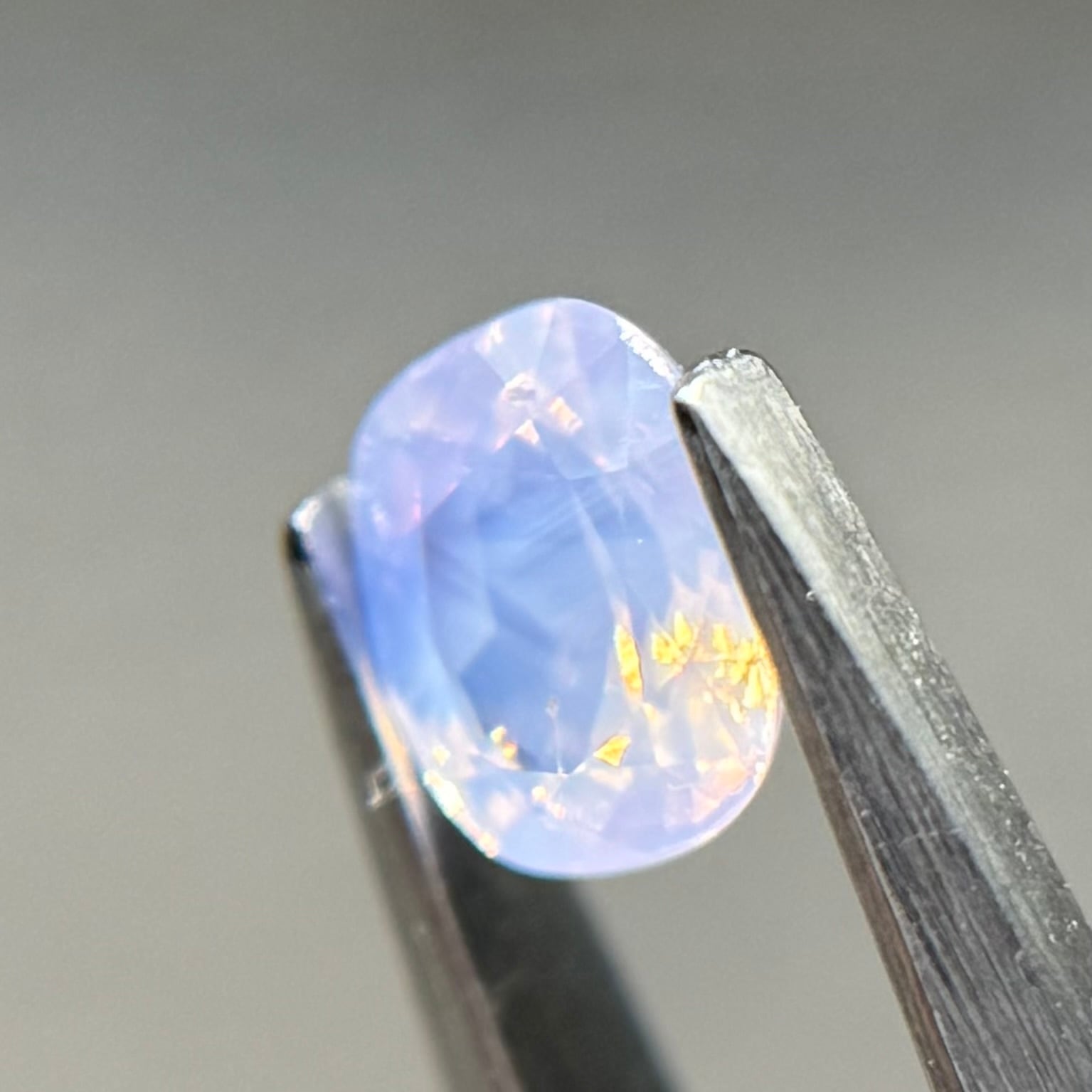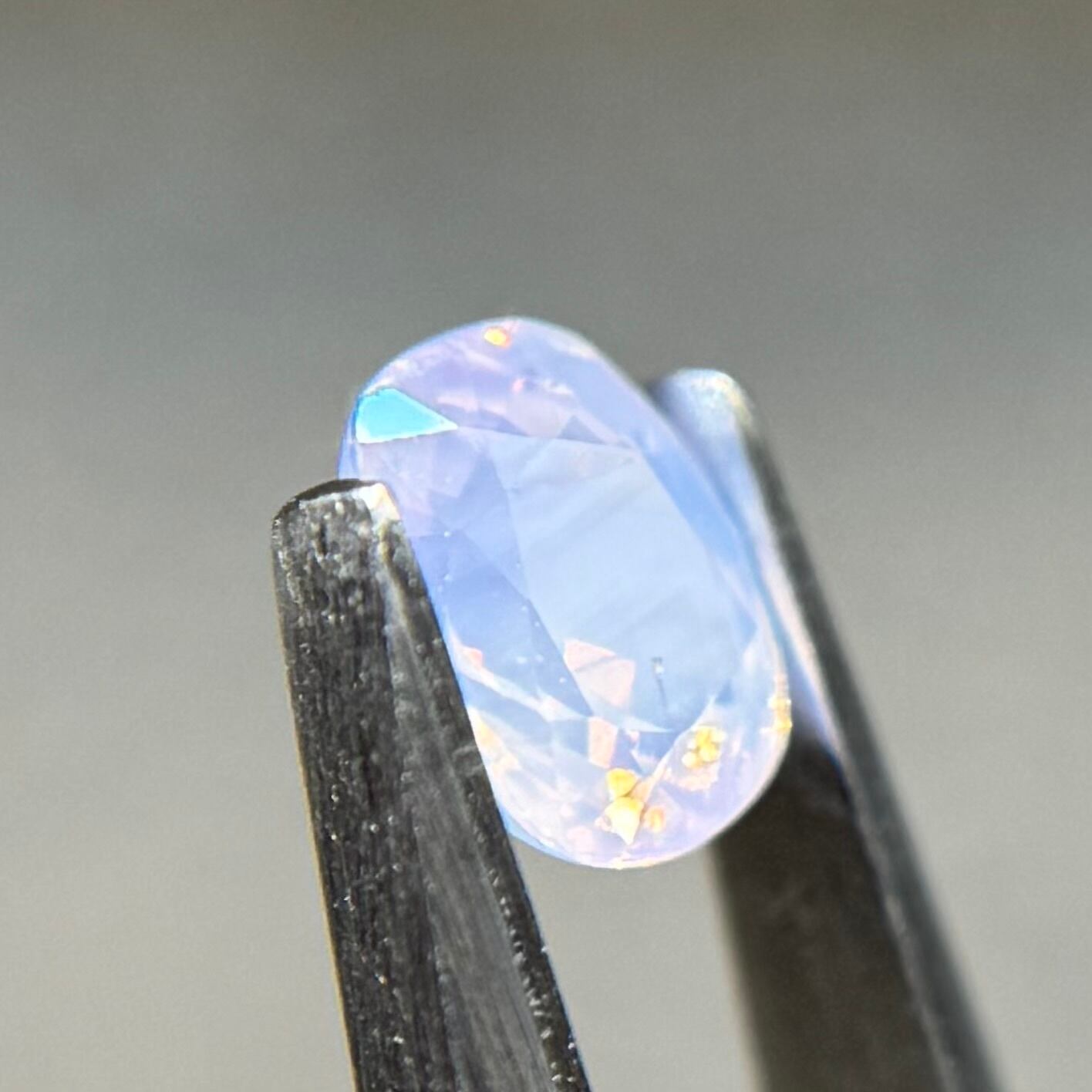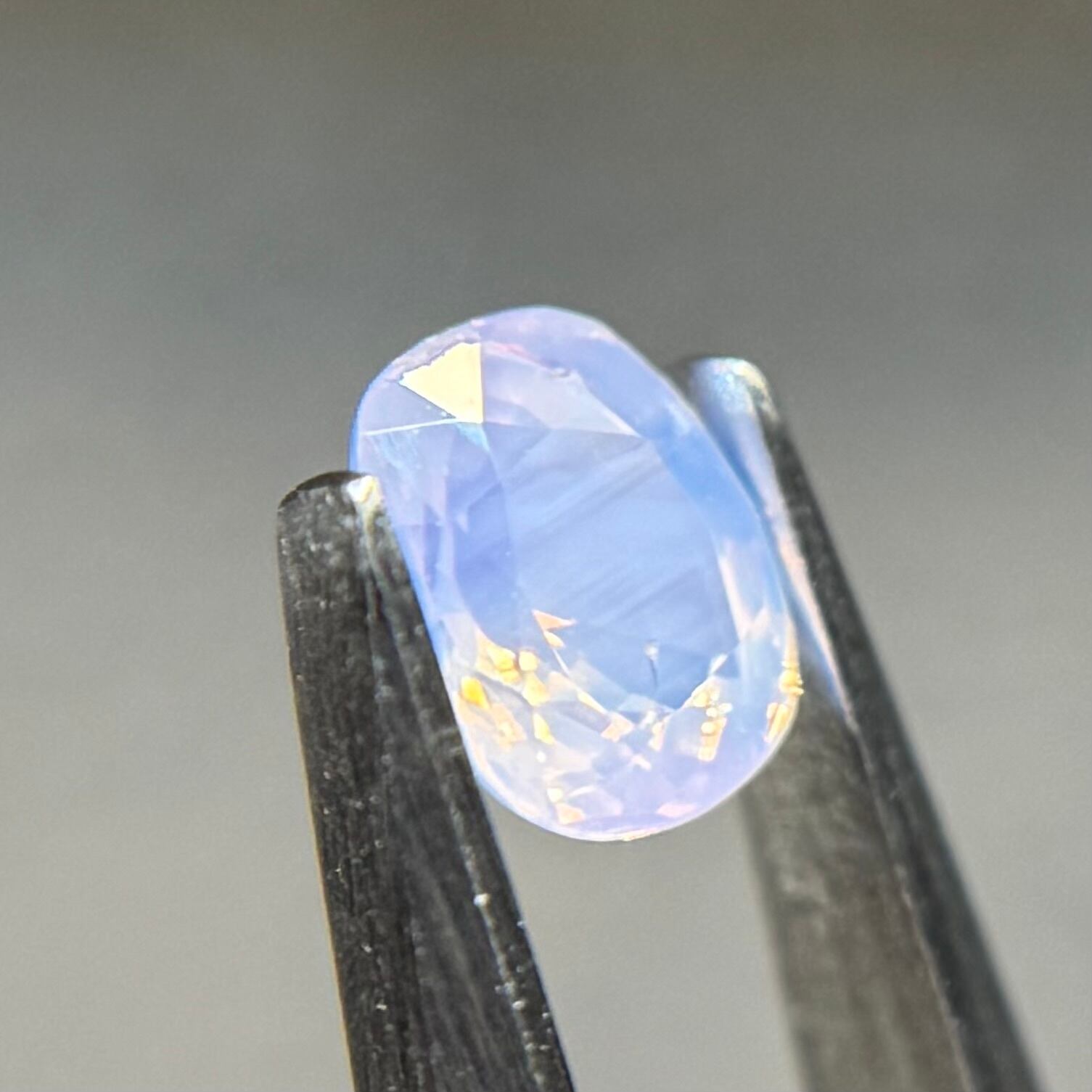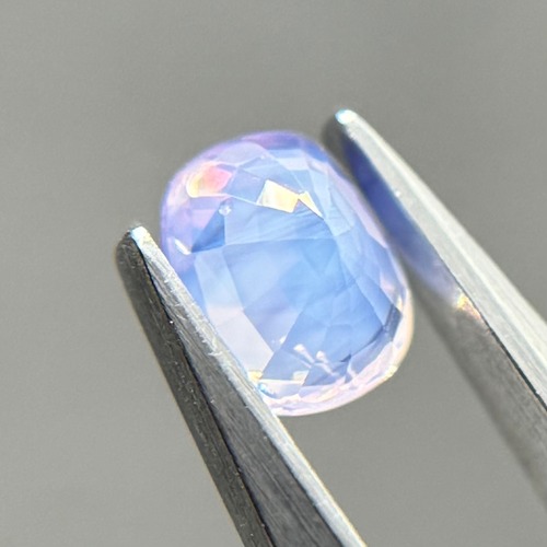ふんわりピンク味を感じる水色が夢可愛いシルキーサファイアです。角度によってピンクが強く出たり青が強く出たりする不思議ちゃんで、テリもしっかり感じられるため、インクルージョンなどが気にならないです。なんだかコットンキャンディのようなふんわり甘い色合いがたまらないです