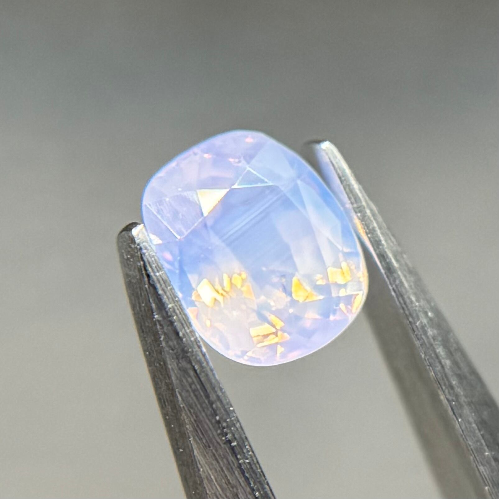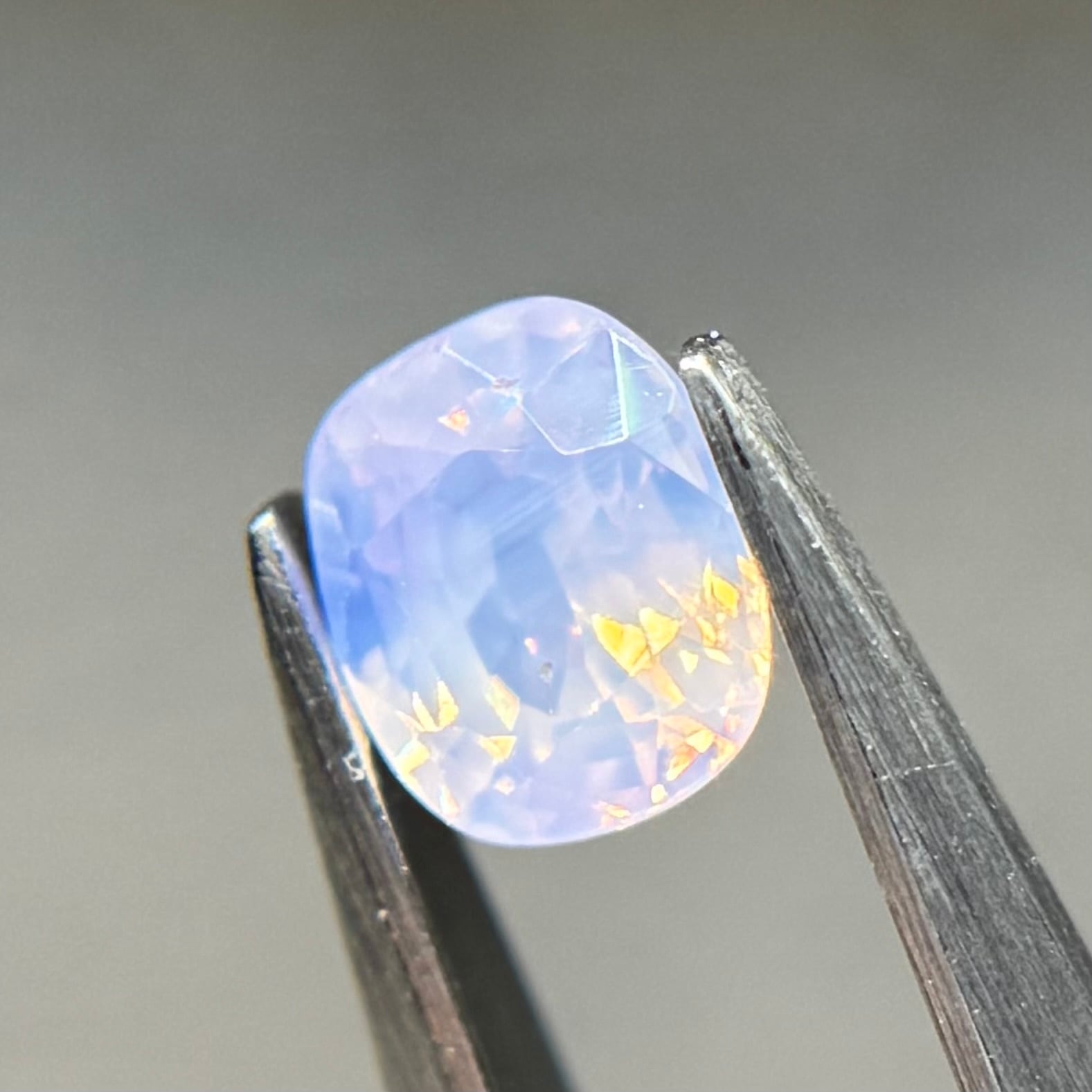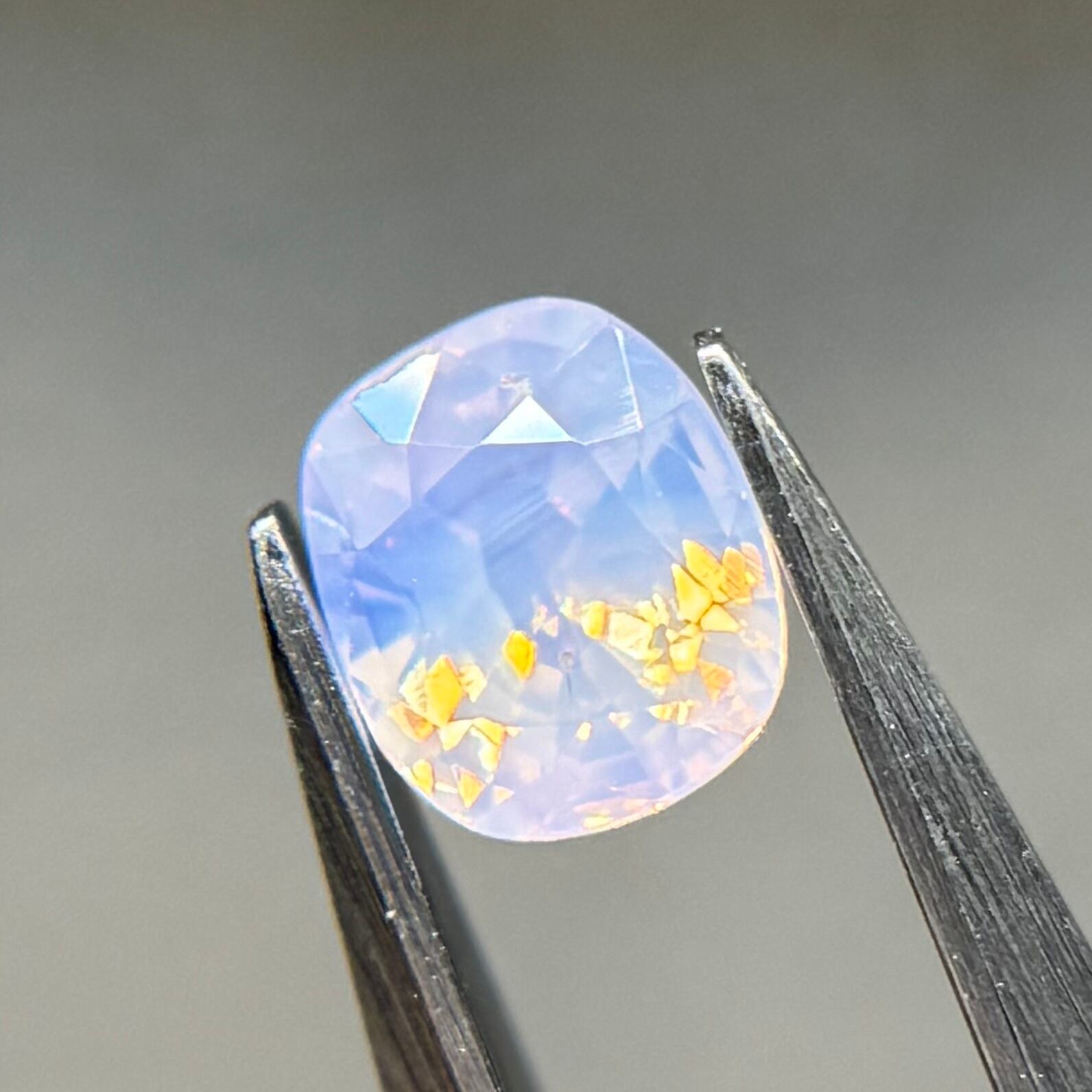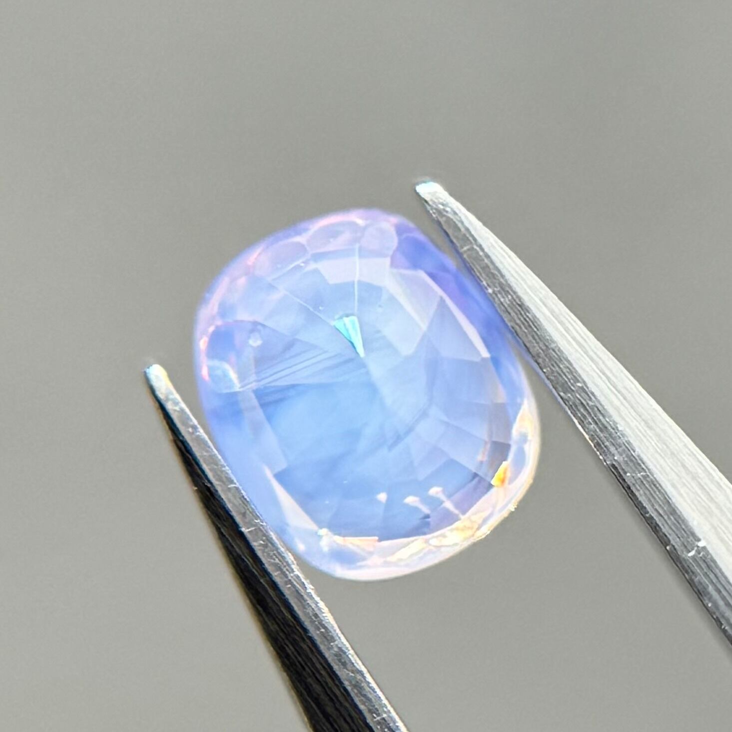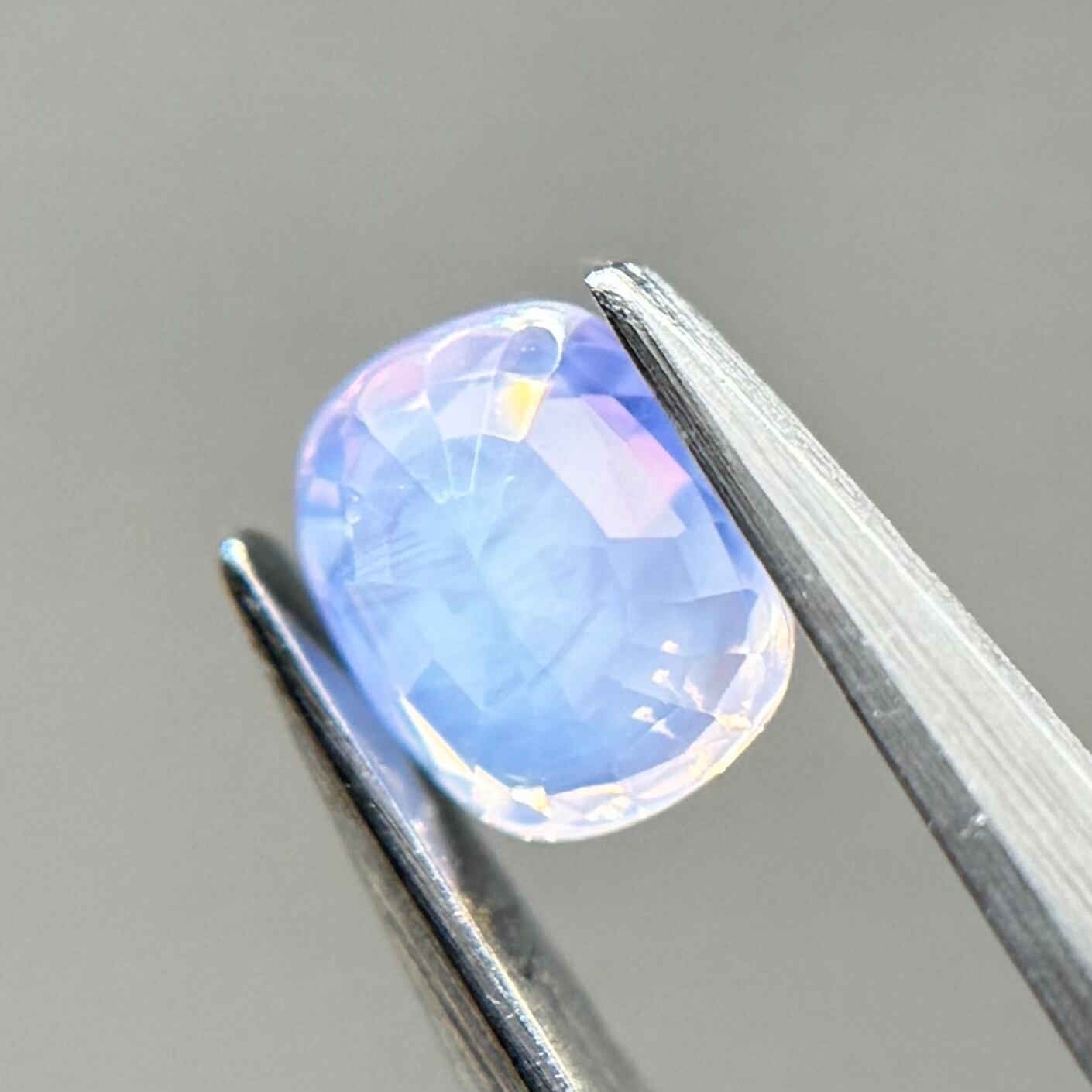 ふんわりピンク味を感じる水色が夢可愛いシルキーサファイアです。角度によってピンクが強く出たり青が強く出たりする不思議ちゃんで、テリもしっかり感じられるため、インクルージョンなどが気にならないです。なんだかコットンキャンディのようなふんわり甘い色合いがたまらないです