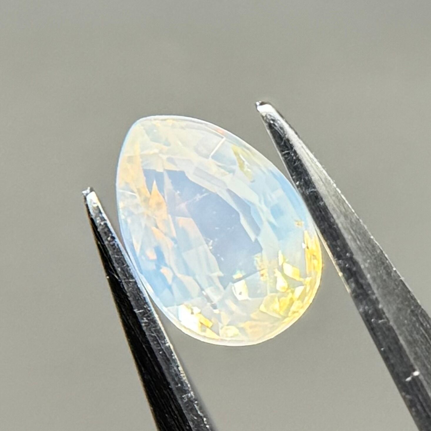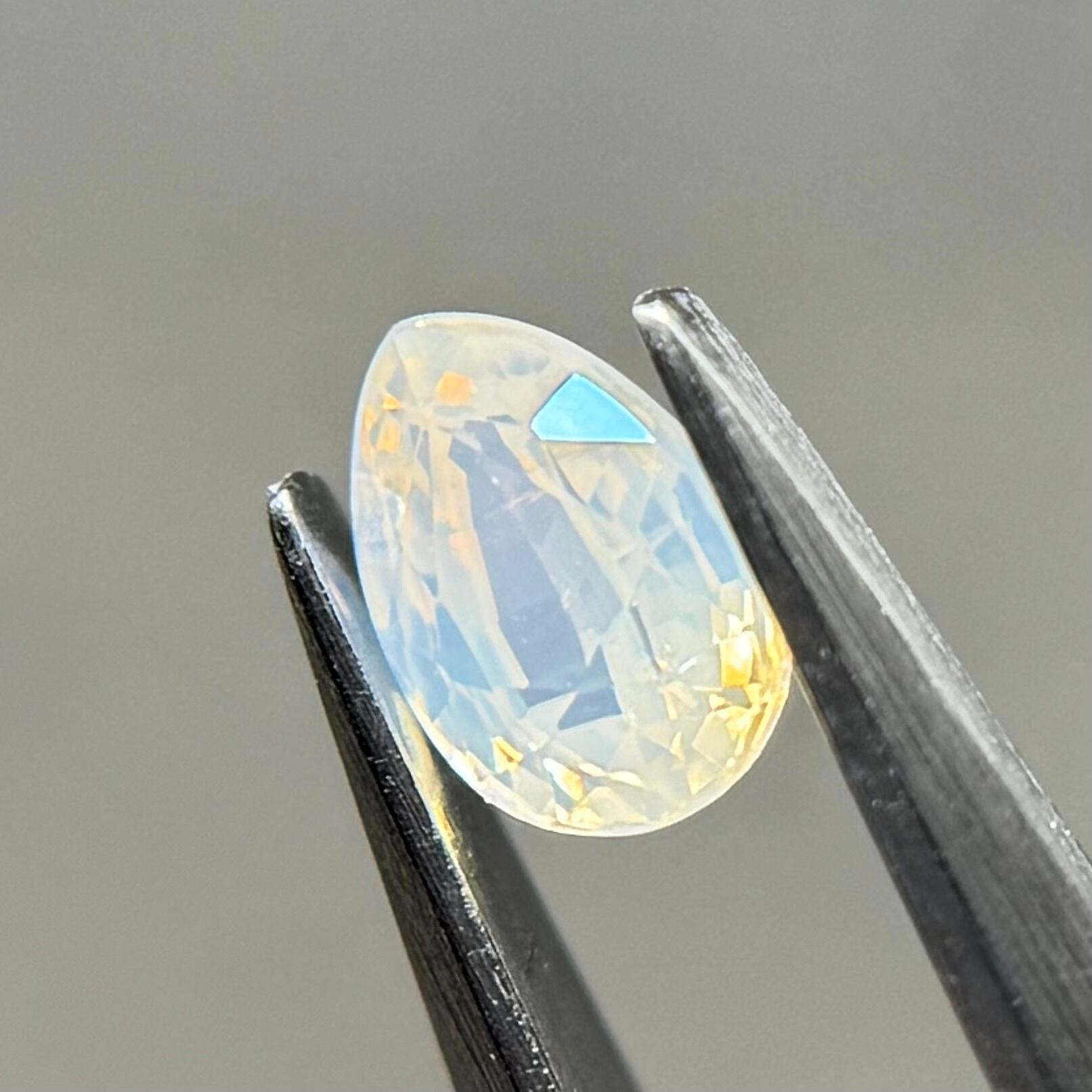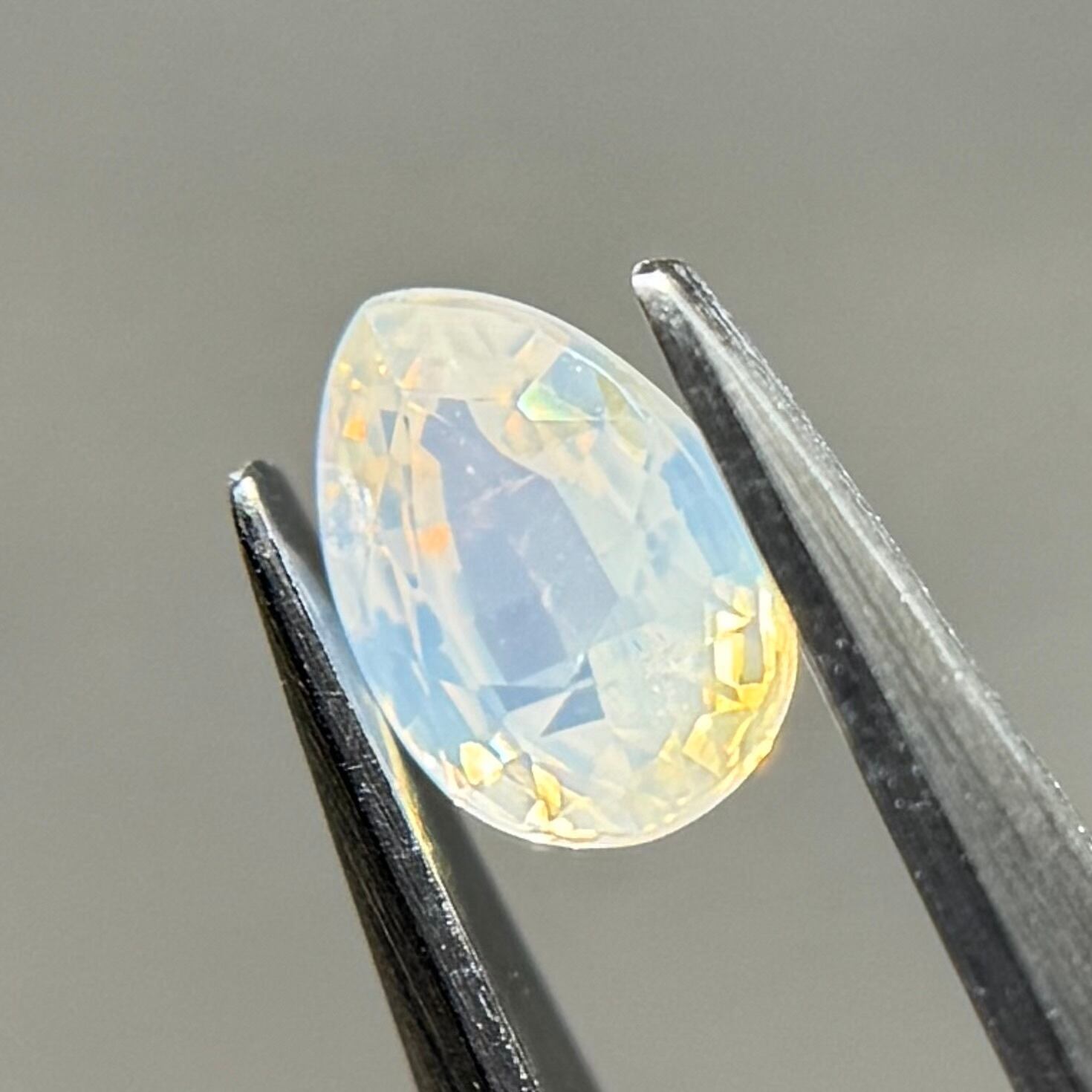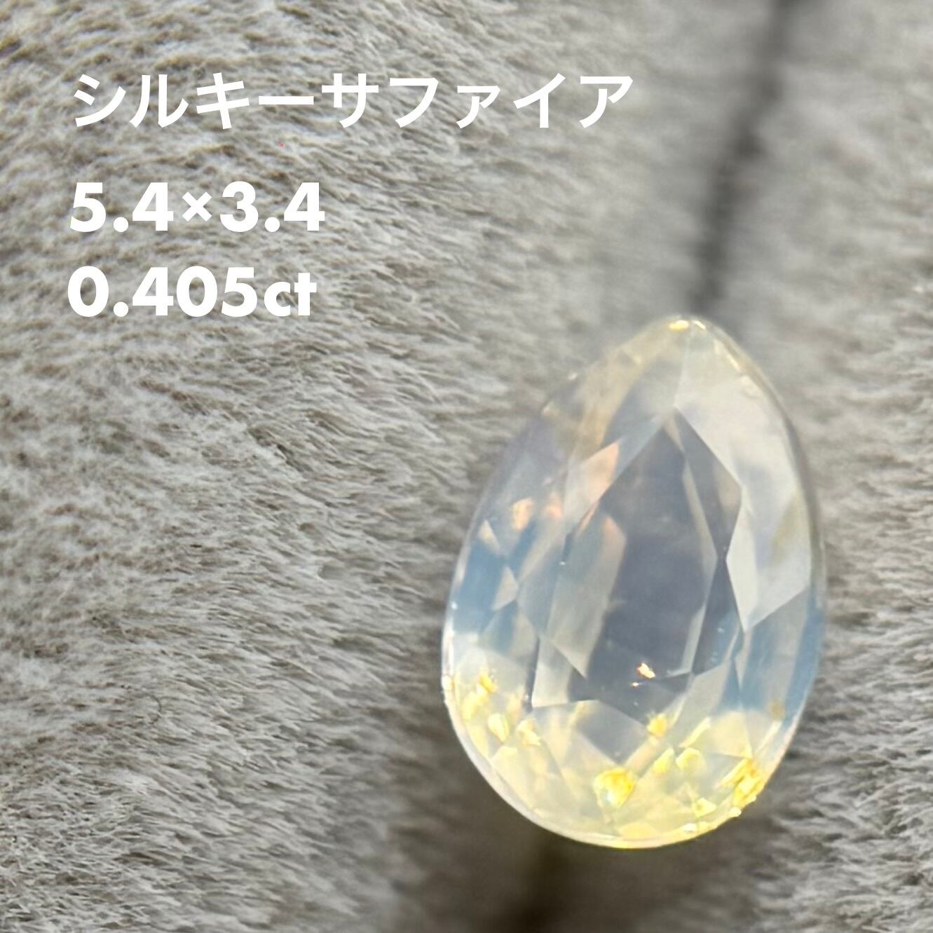 ベースはホワイトで色だまりがないのに、ほんのり青みが出てくることでグリーンのようなイエローのようなブルーのような不思議な色合いが浮かび上がるシルキーサファイアです。オレンジテリがまたいいギャップです。なかなか見ない色合いです
