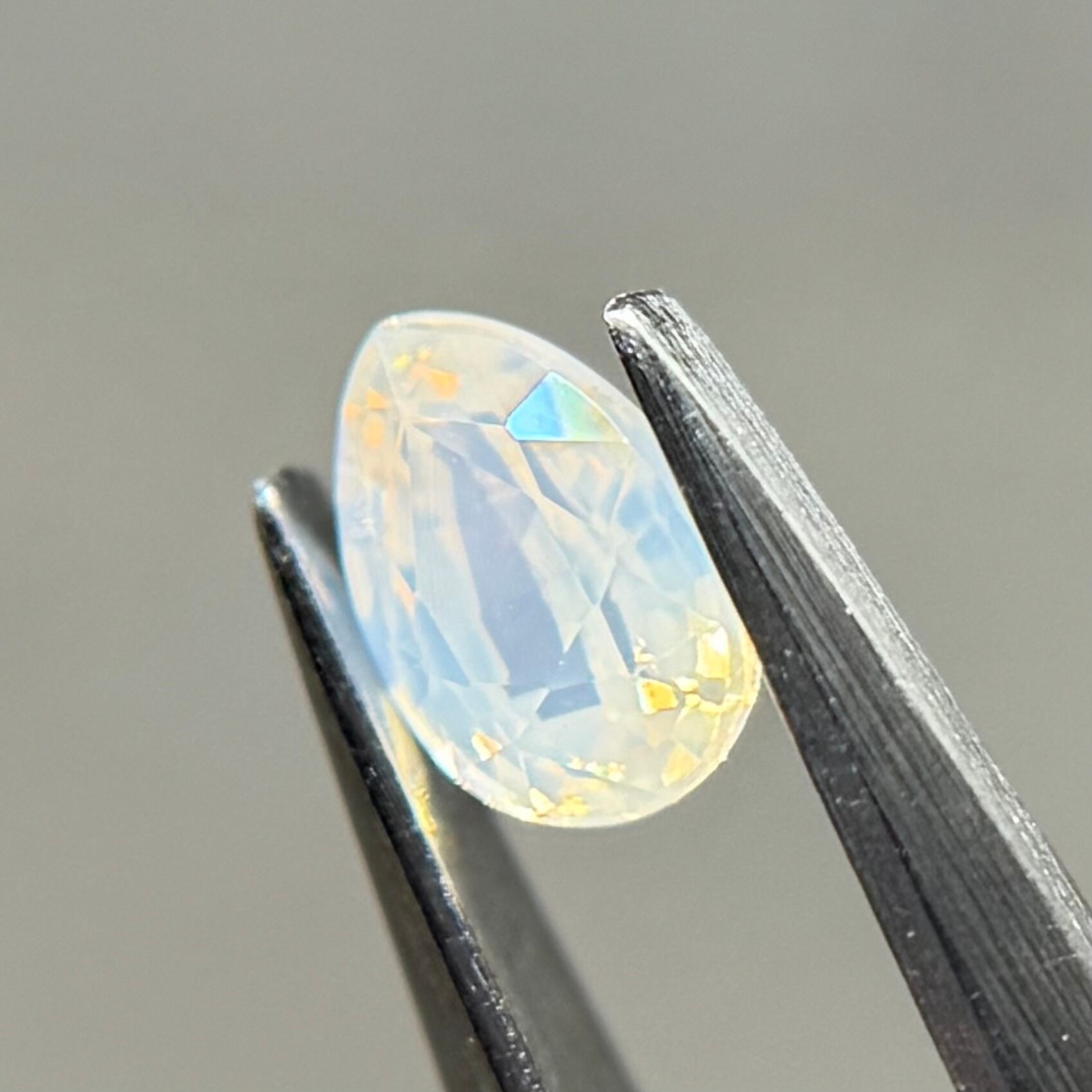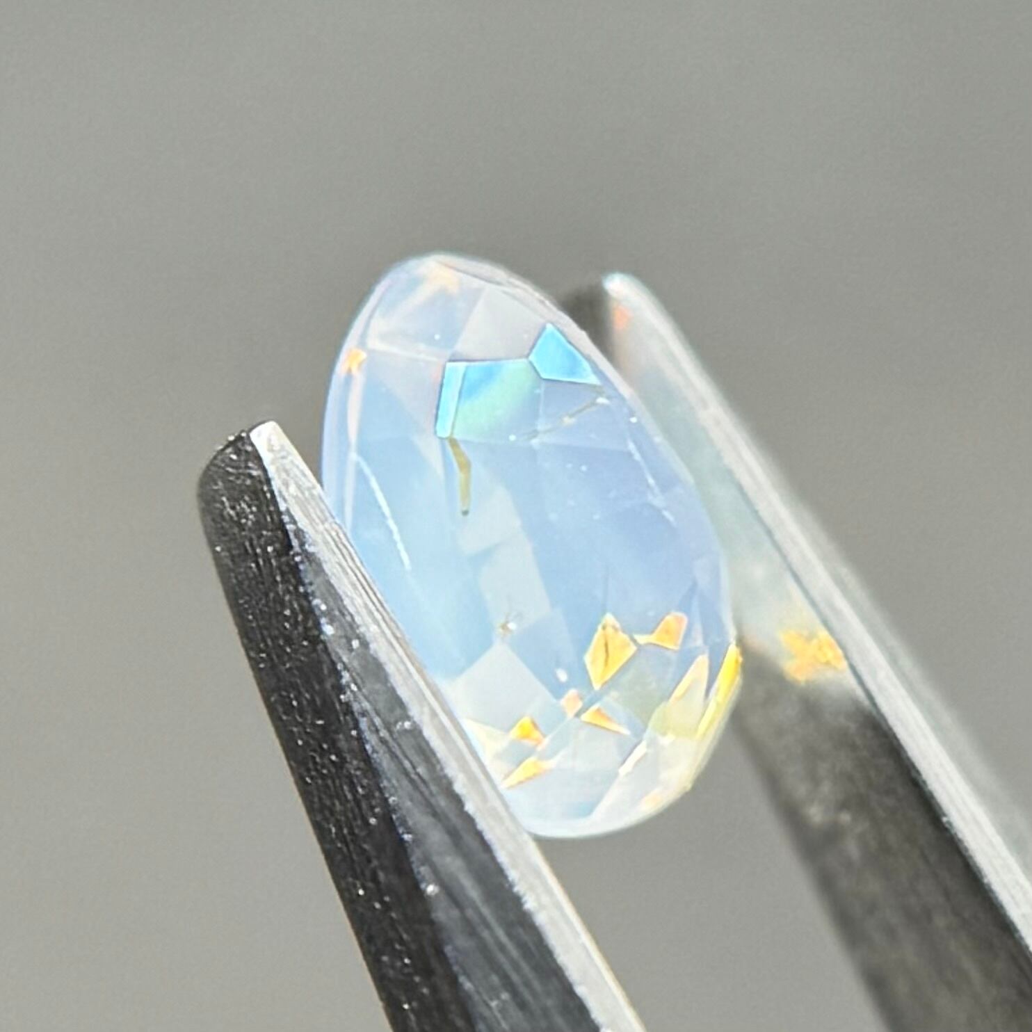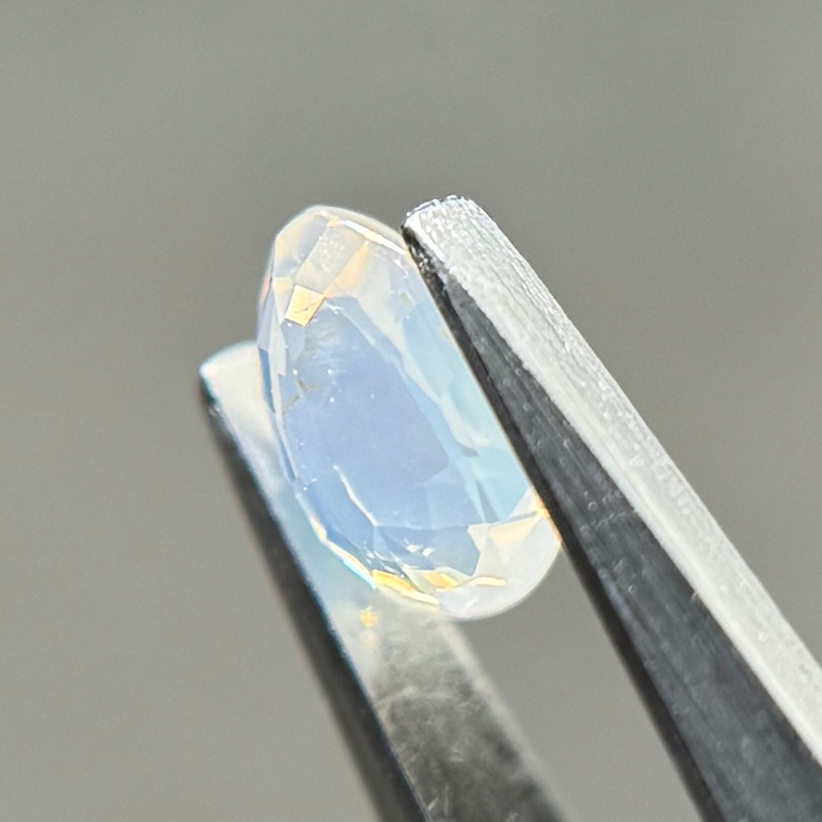 ベースはホワイトで色だまりがないのに、ほんのり青みが出てくることでグリーンのようなイエローのようなブルーのような不思議な色合いが浮かび上がるシルキーサファイアです。オレンジテリがまたいいギャップです。なかなか見ない色合いです