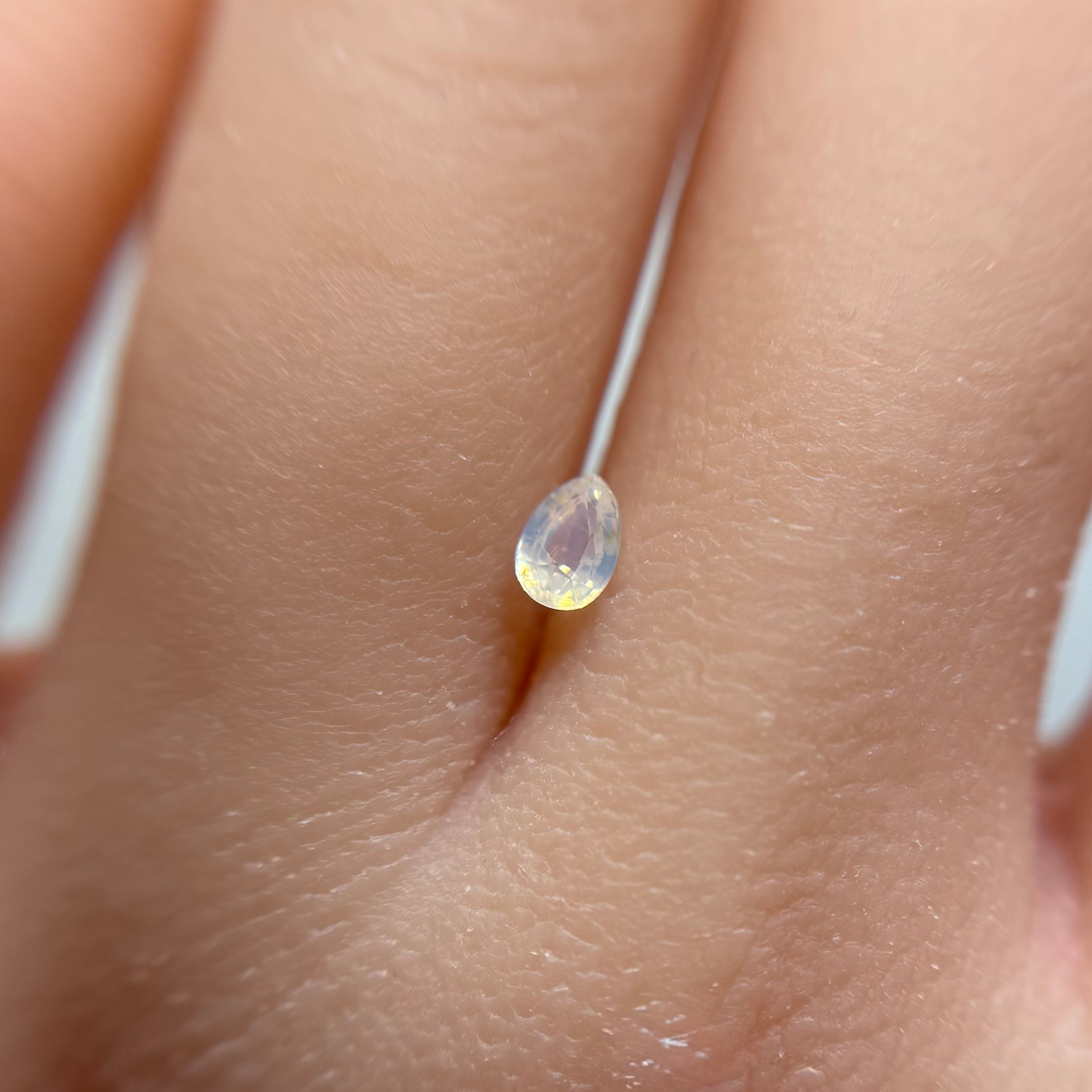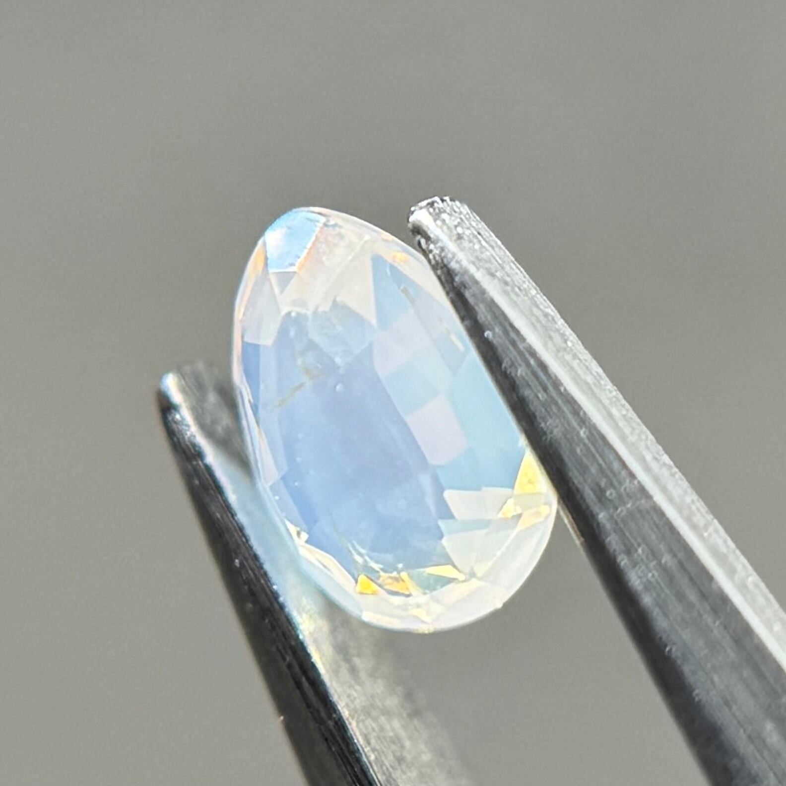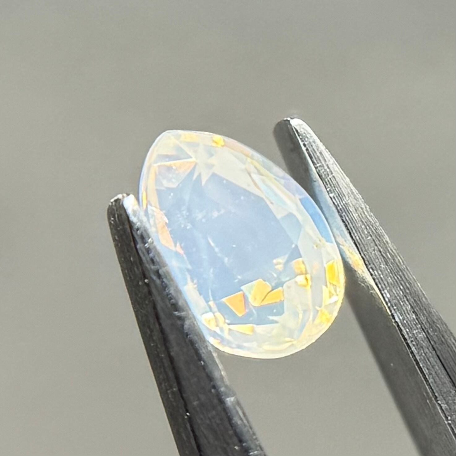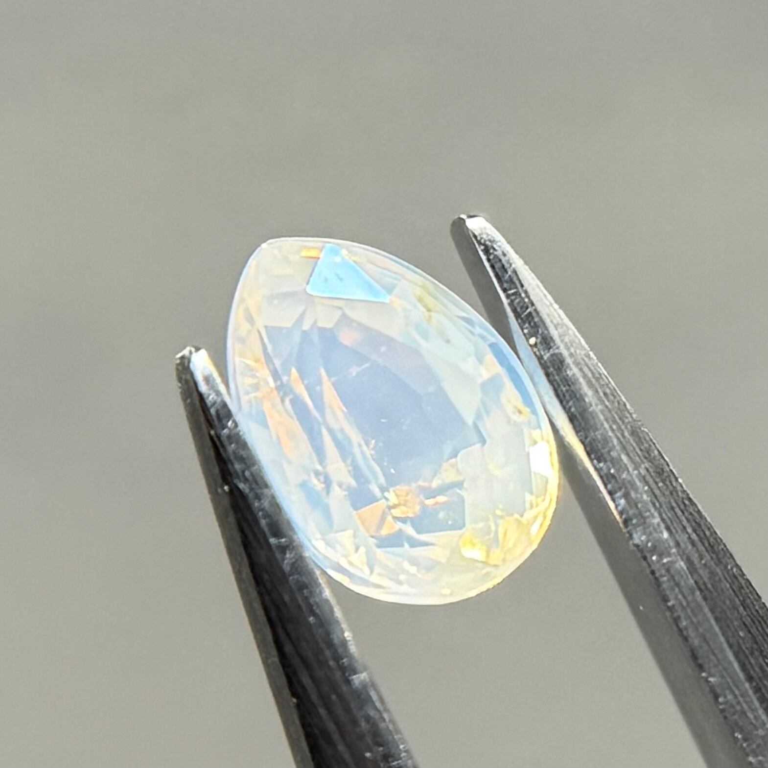 ベースはホワイトで色だまりがないのに、ほんのり青みが出てくることでグリーンのようなイエローのようなブルーのような不思議な色合いが浮かび上がるシルキーサファイアです。オレンジテリがまたいいギャップです。なかなか見ない色合いです