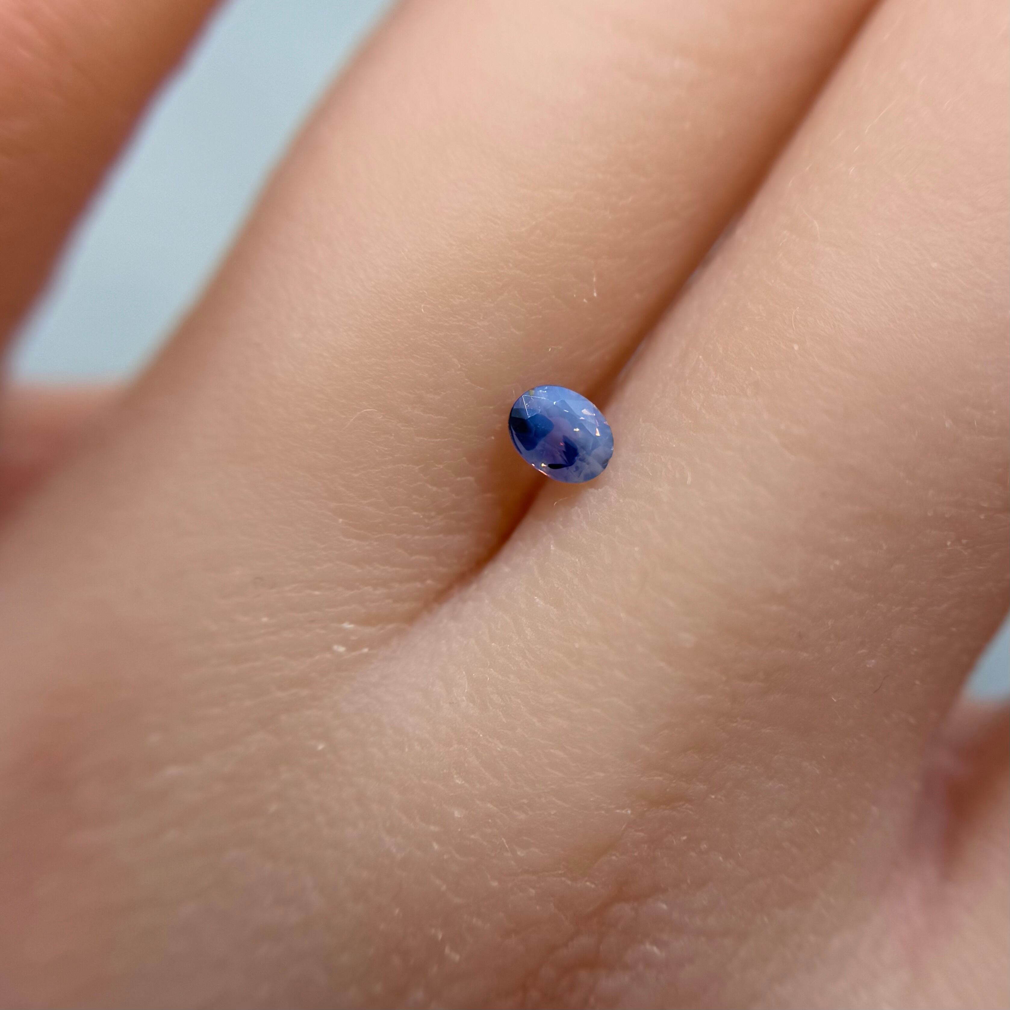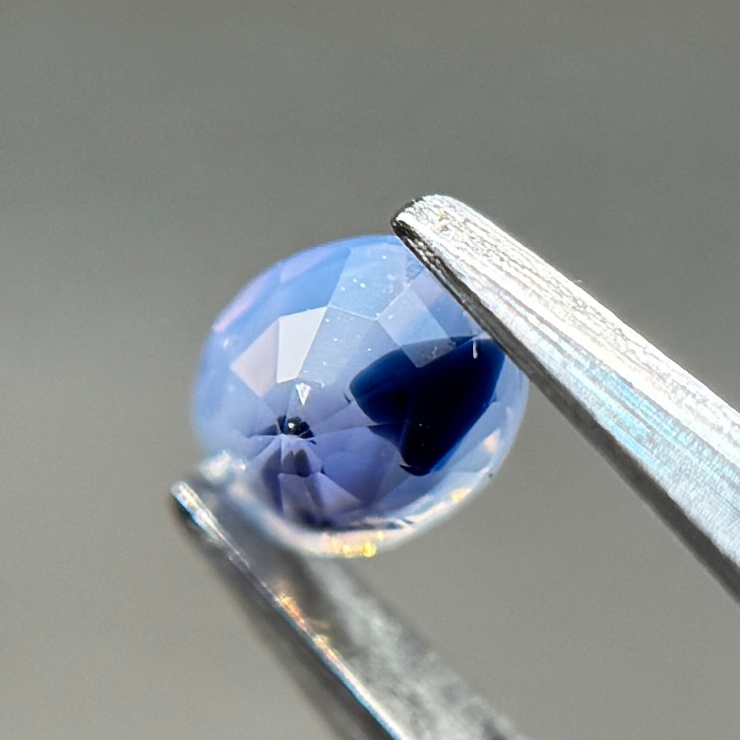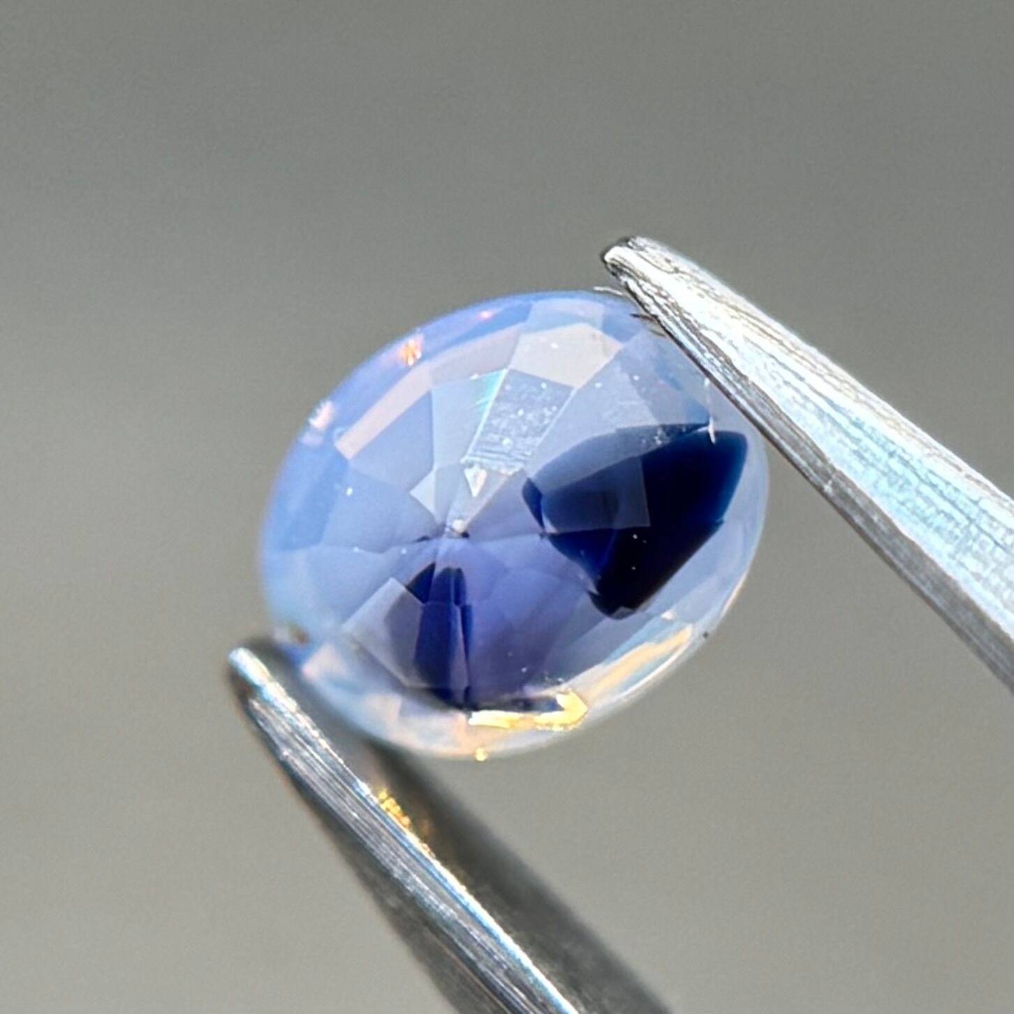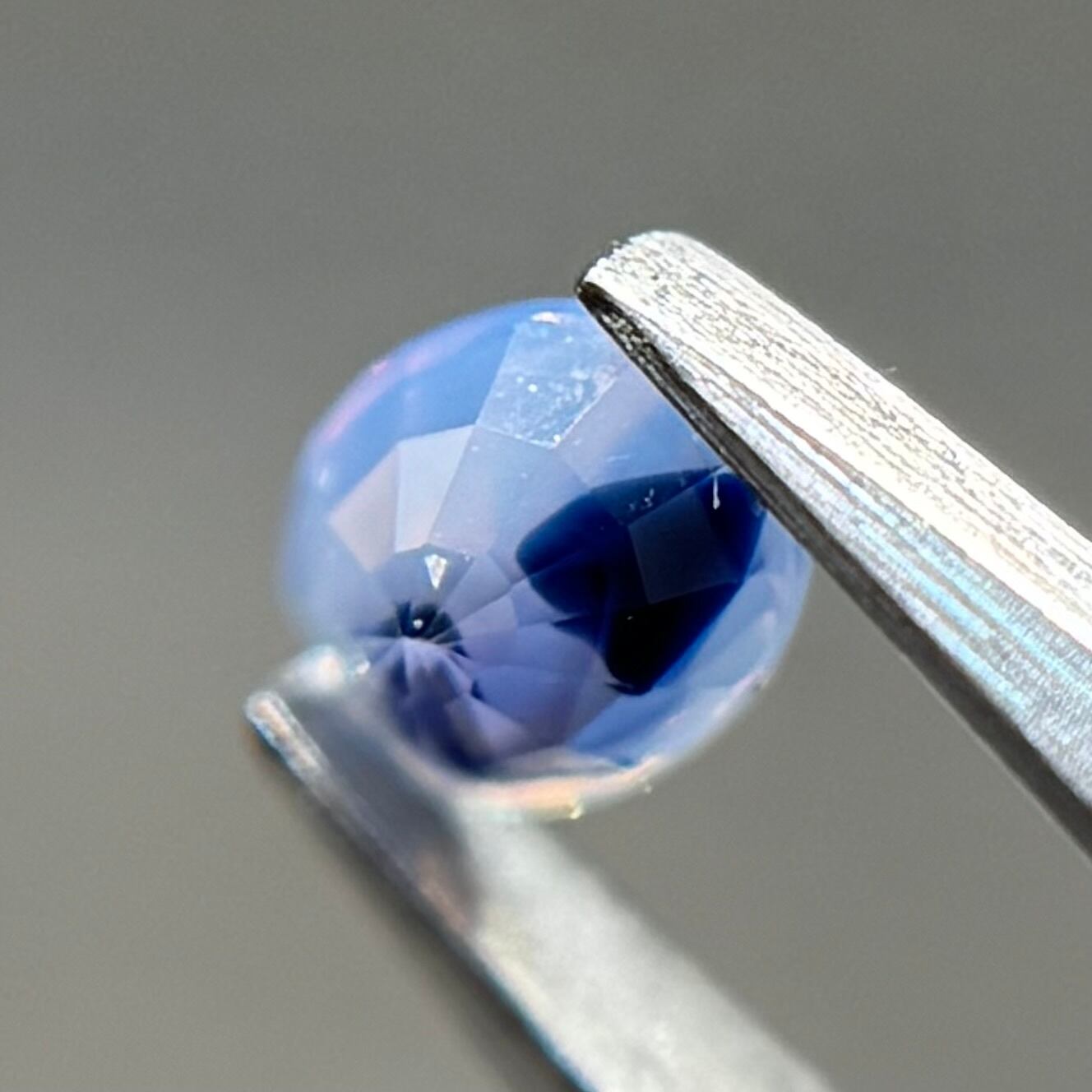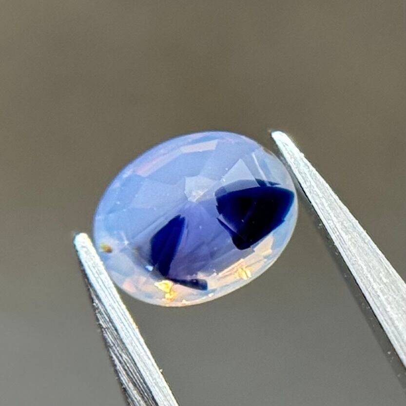 水色の中に濃い青とピンクがゆらめき、軽くグラデーションが楽しめるシルキーサファイアです。テリが向きによってピンクが強く出るところとオレンジが強く出るところがあるので、お気に入りの向きを見つけてください