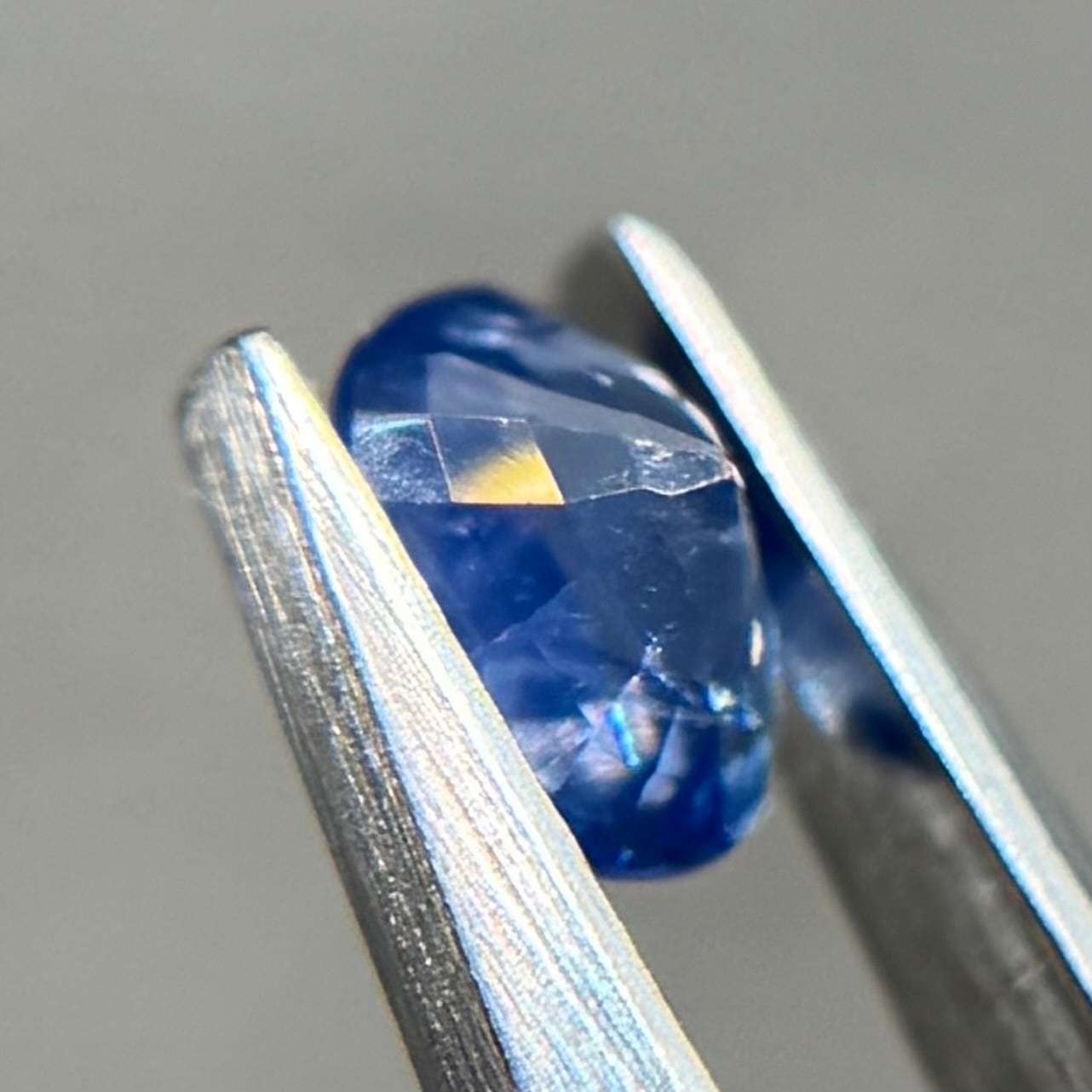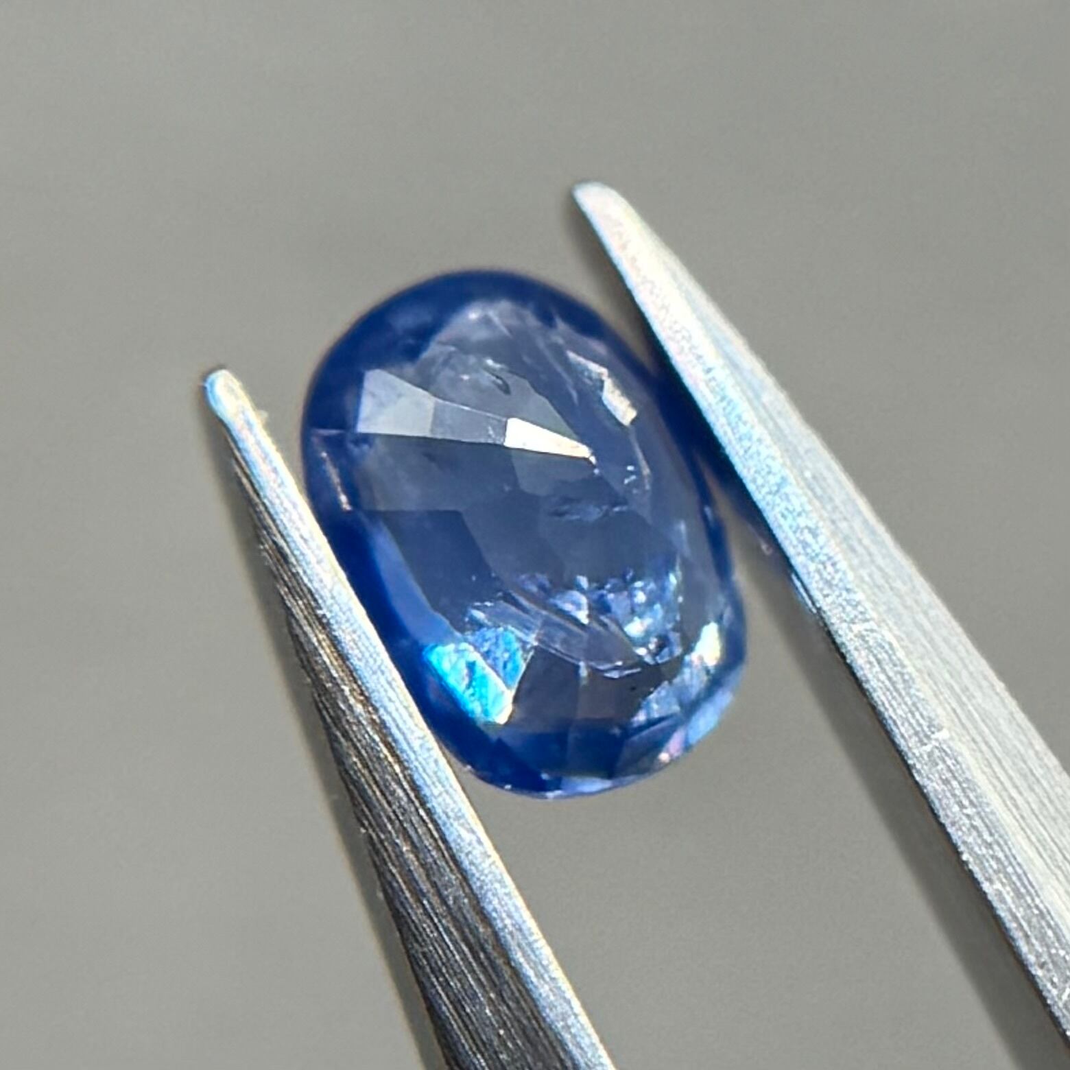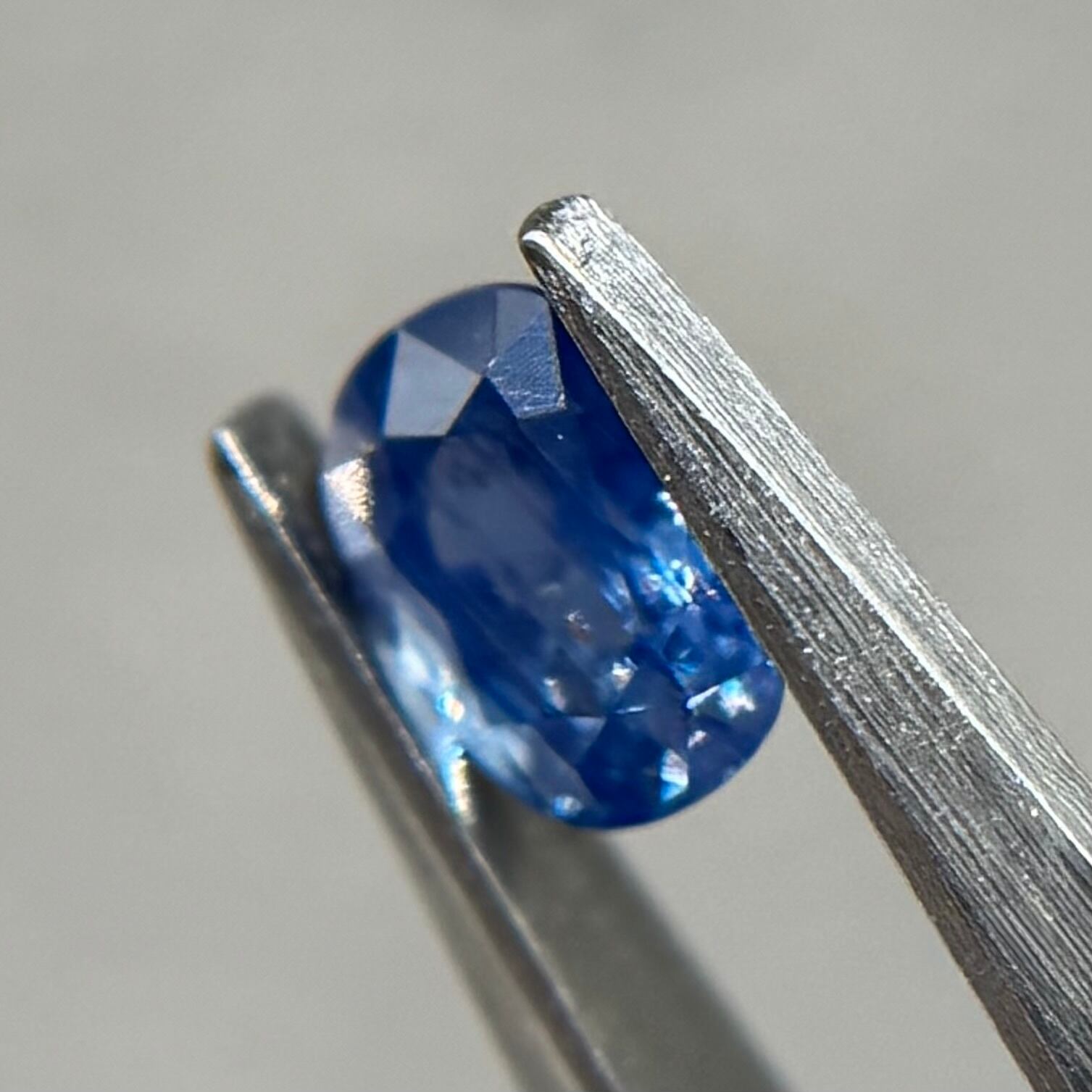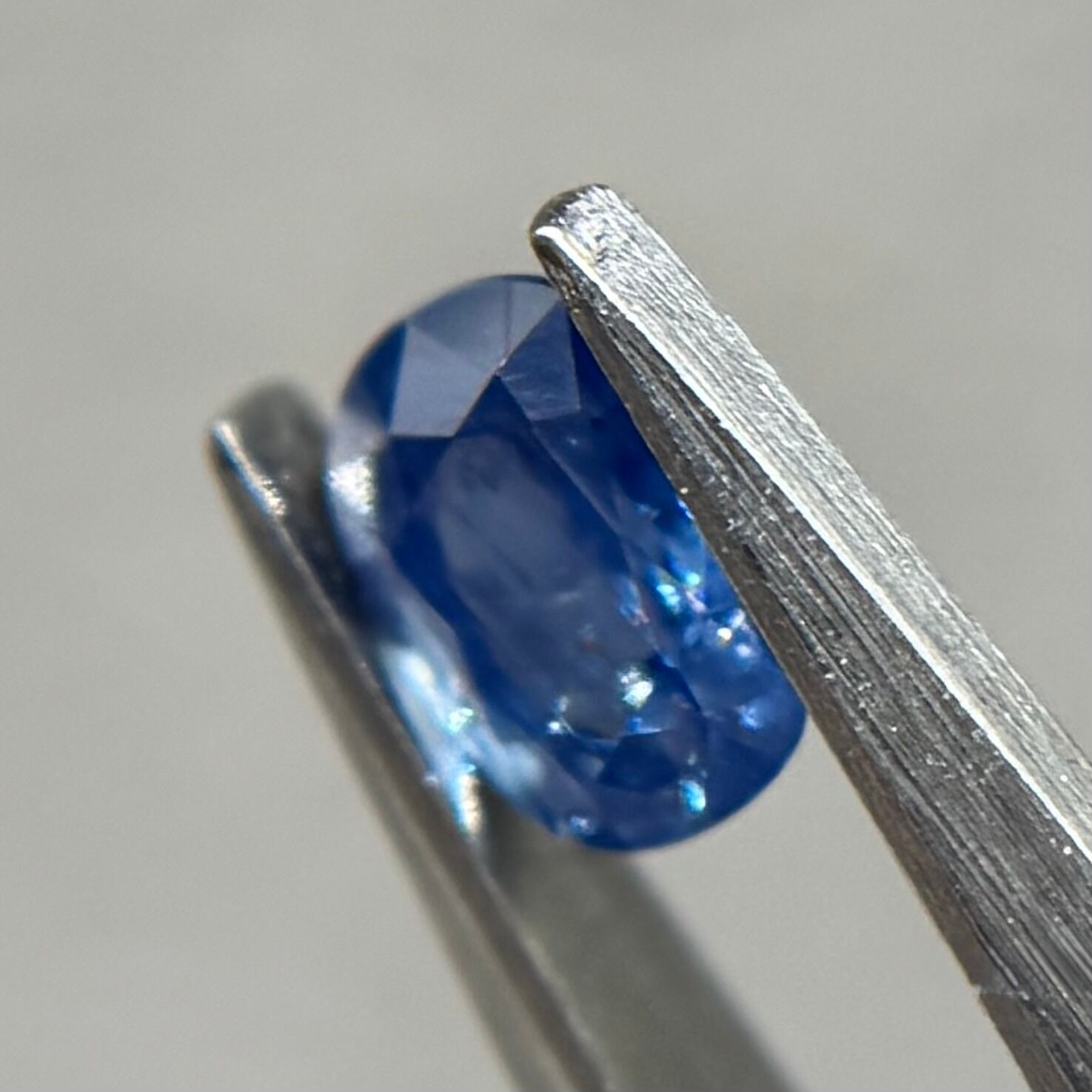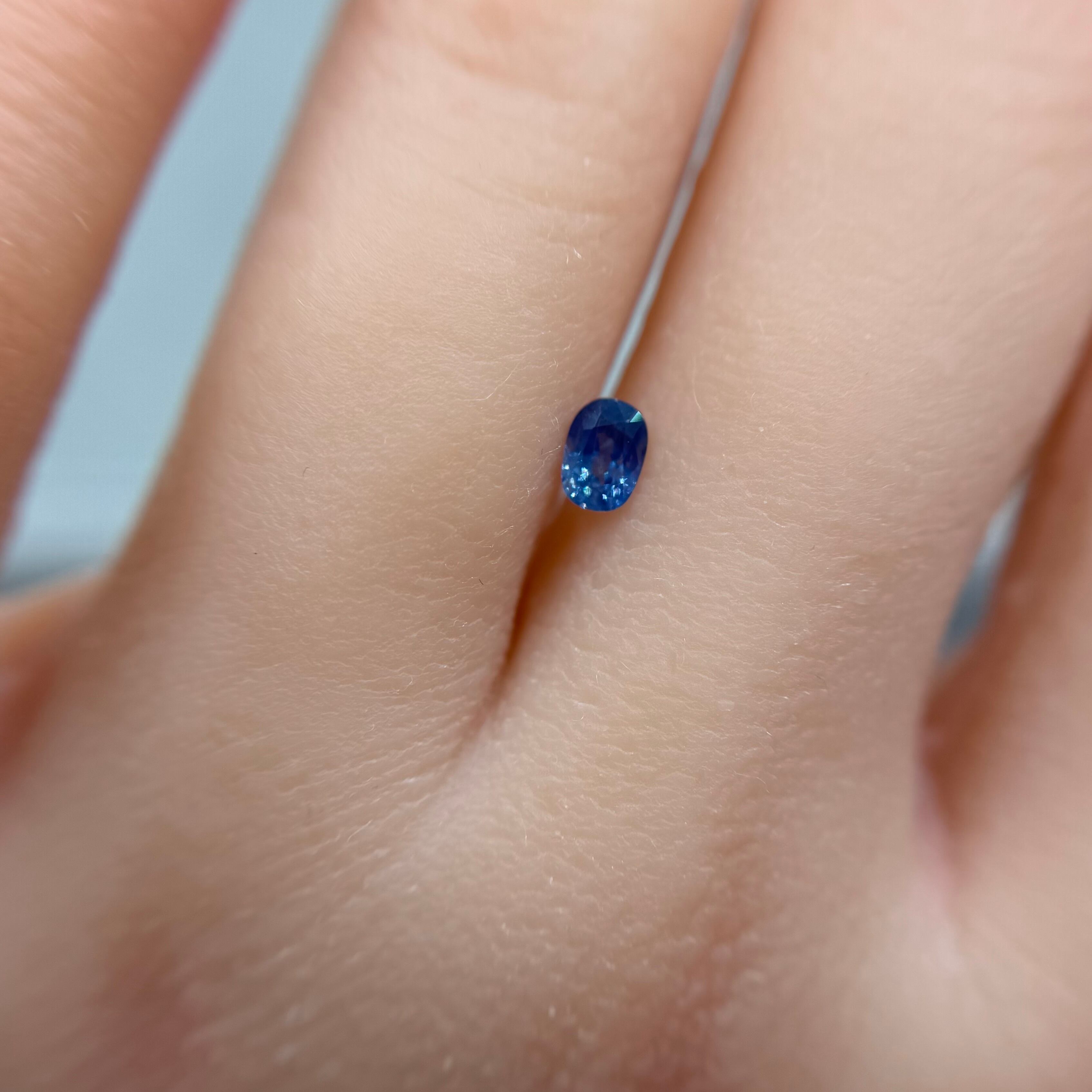 グリーンっぽ青にテリが煌めきまるで海の水面のようなサファイアです。一部虹も楽しめます(最後のお写真)