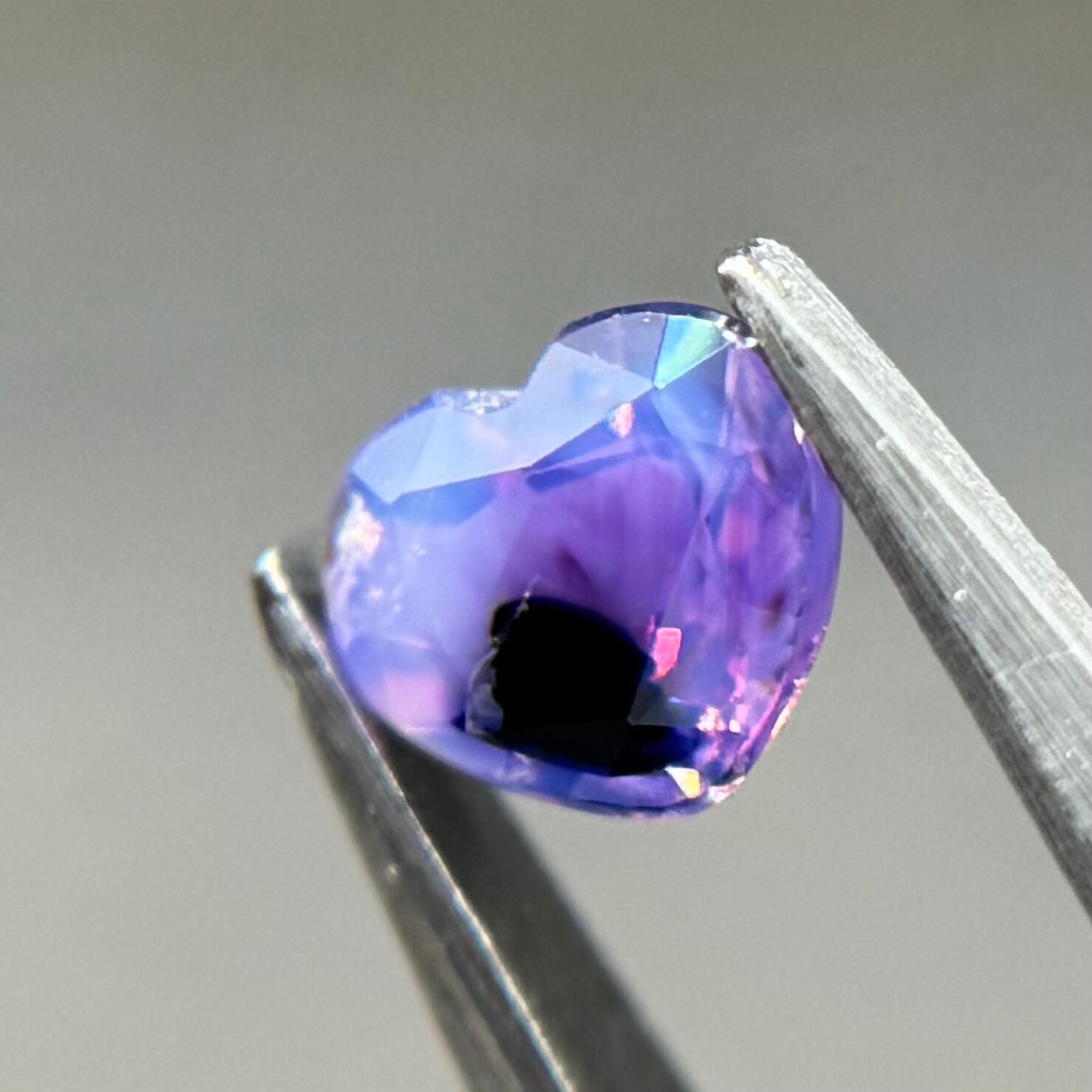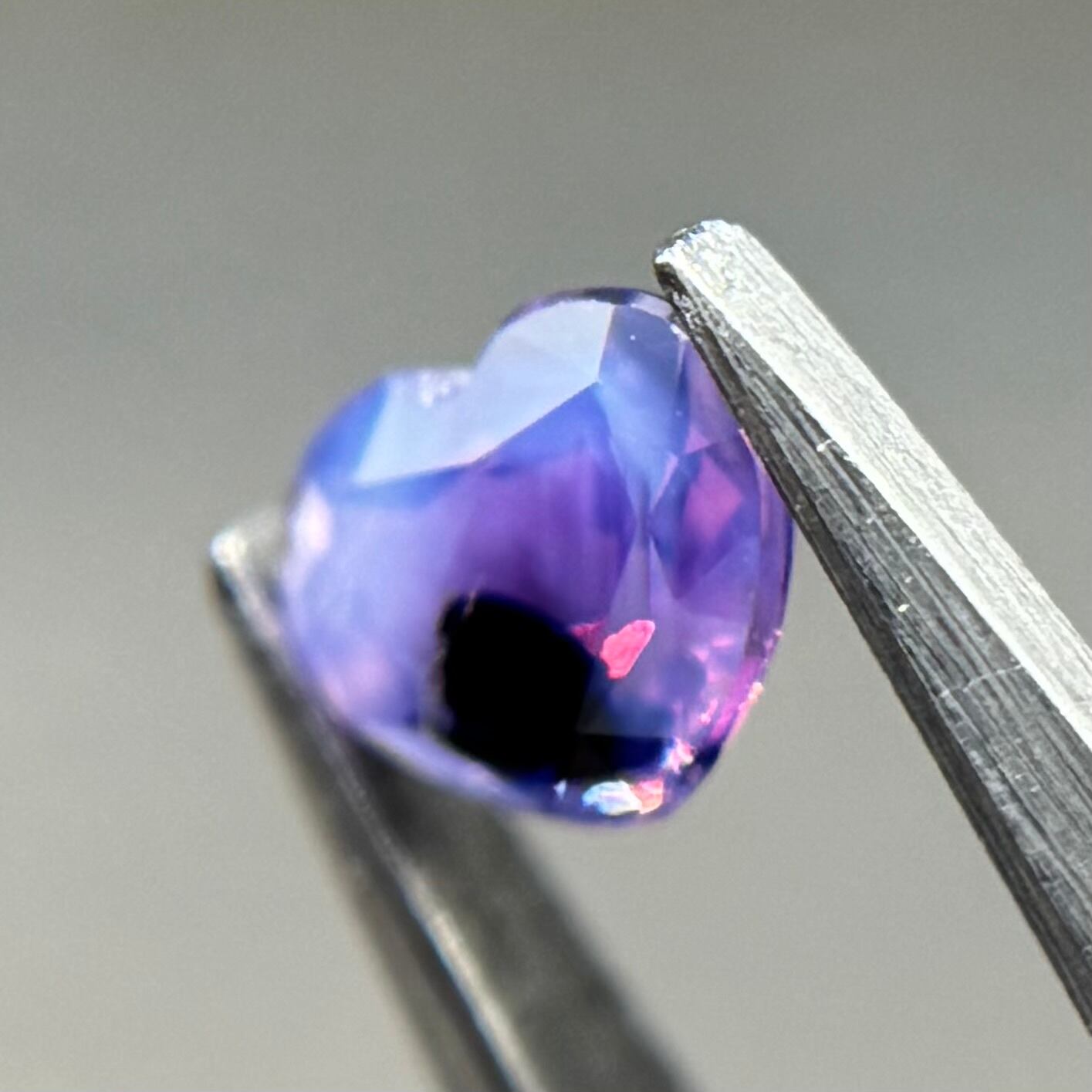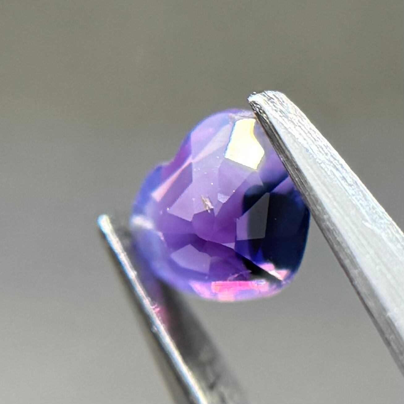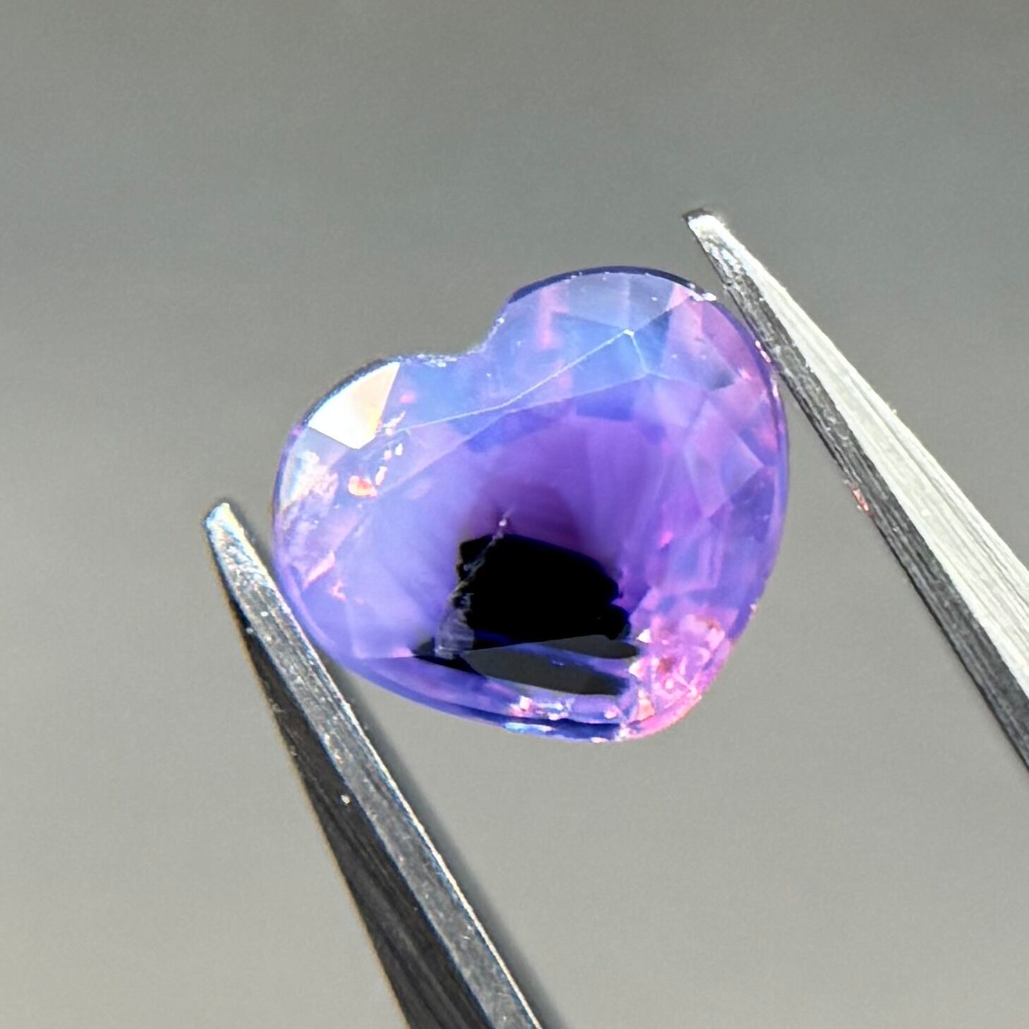 闇落ちハートなシルキーサファイアです。ピンクのテリの合間にある青だまりの奥底で青がキラッと煌めくのが堪らないです