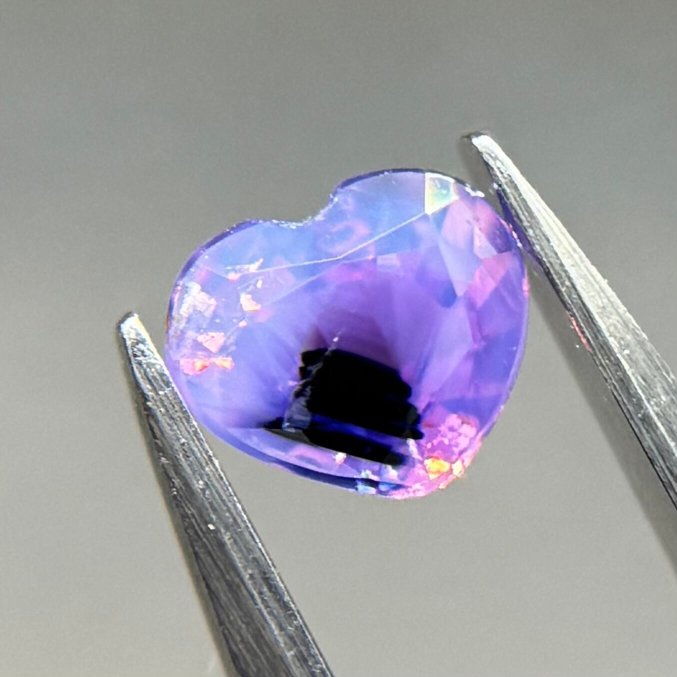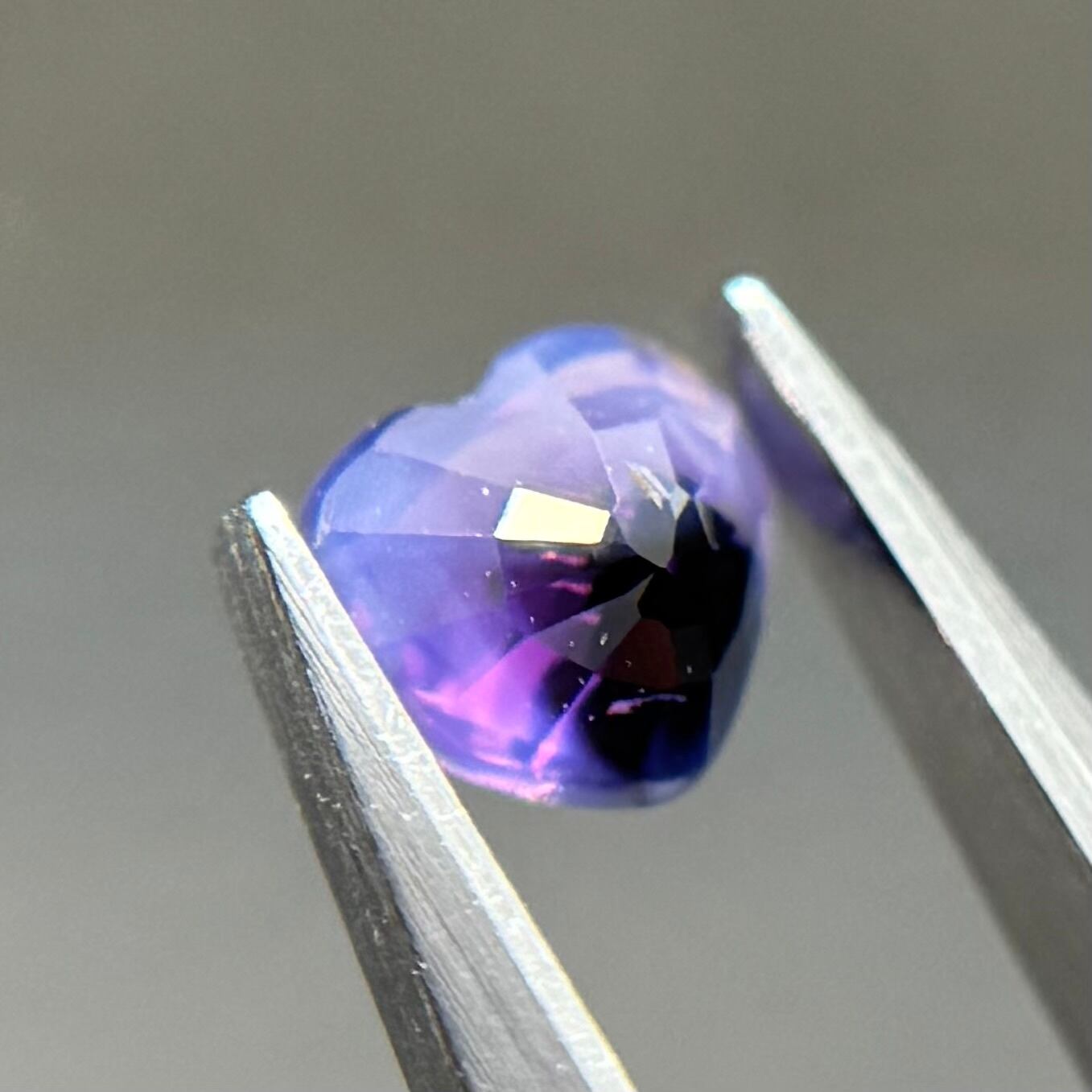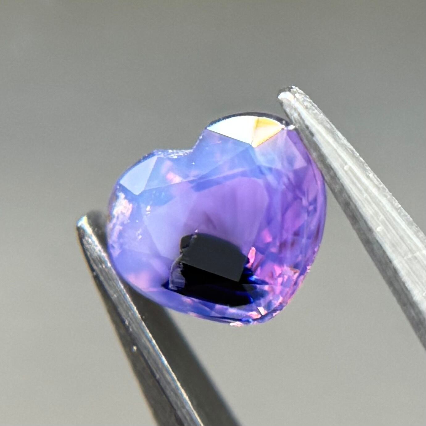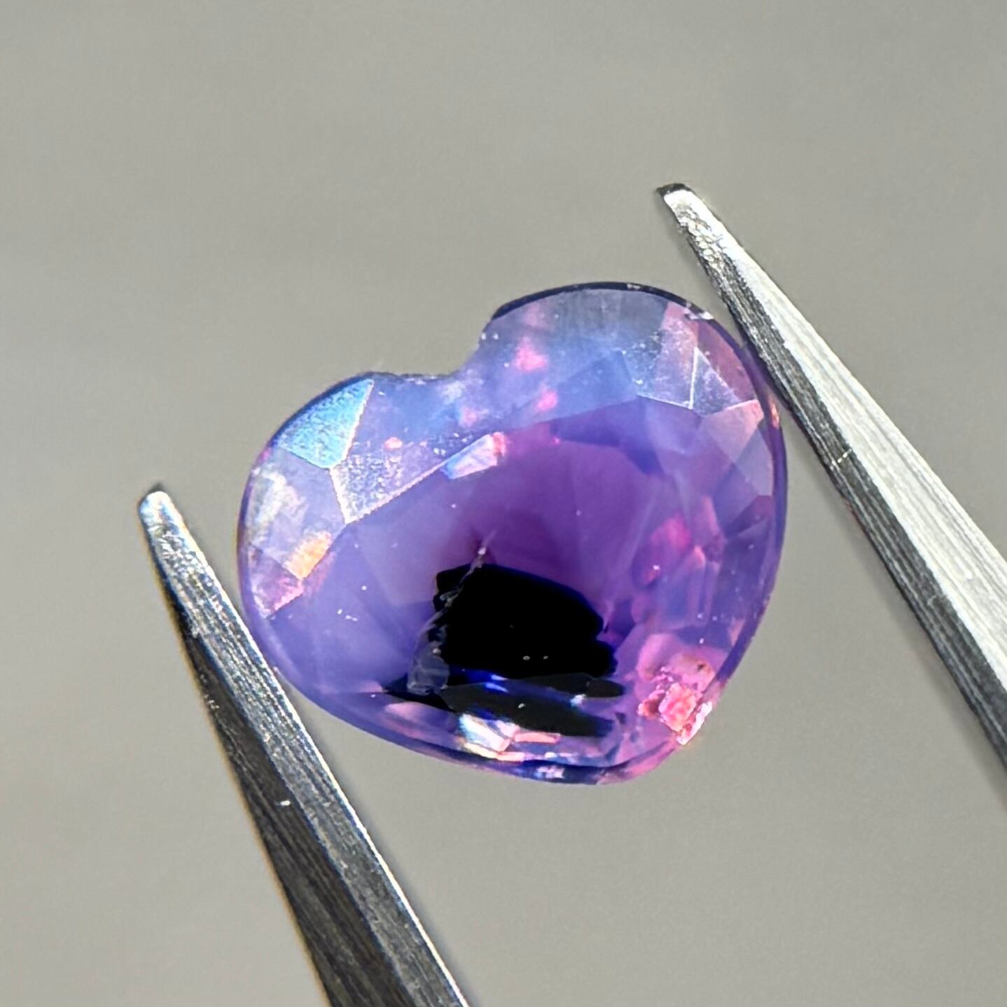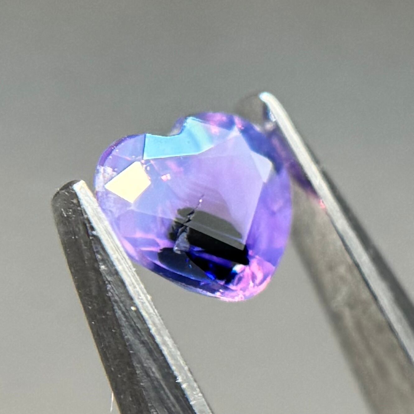 闇落ちハートなシルキーサファイアです。ピンクのテリの合間にある青だまりの奥底で青がキラッと煌めくのが堪らないです