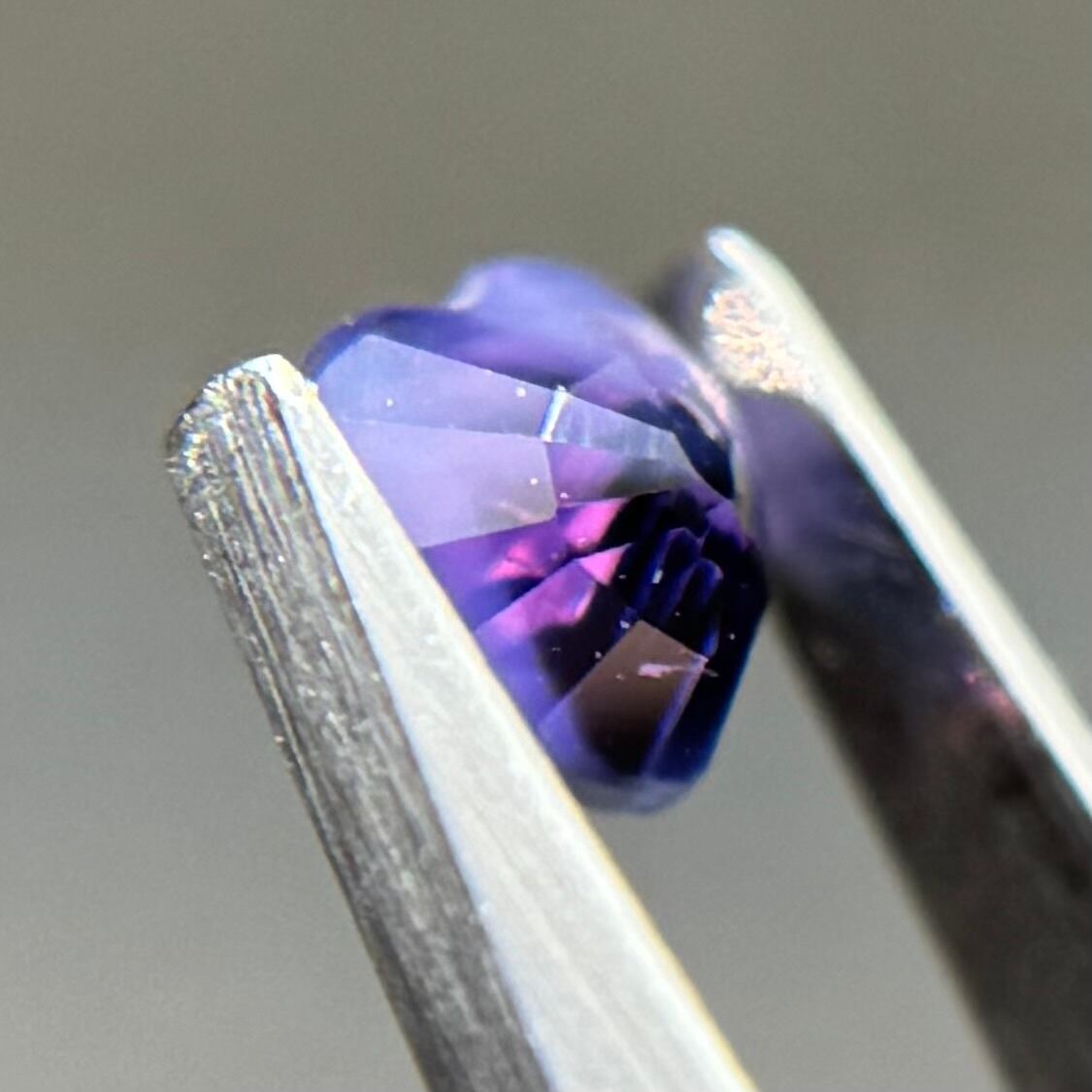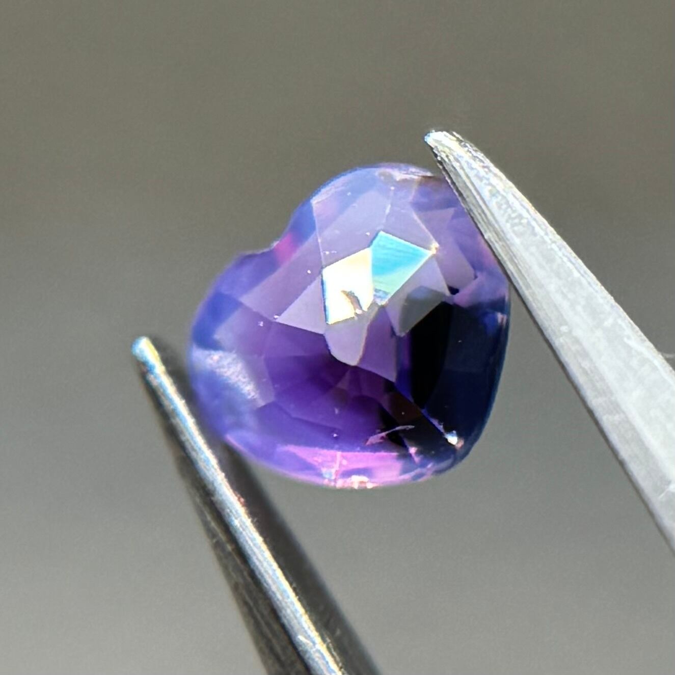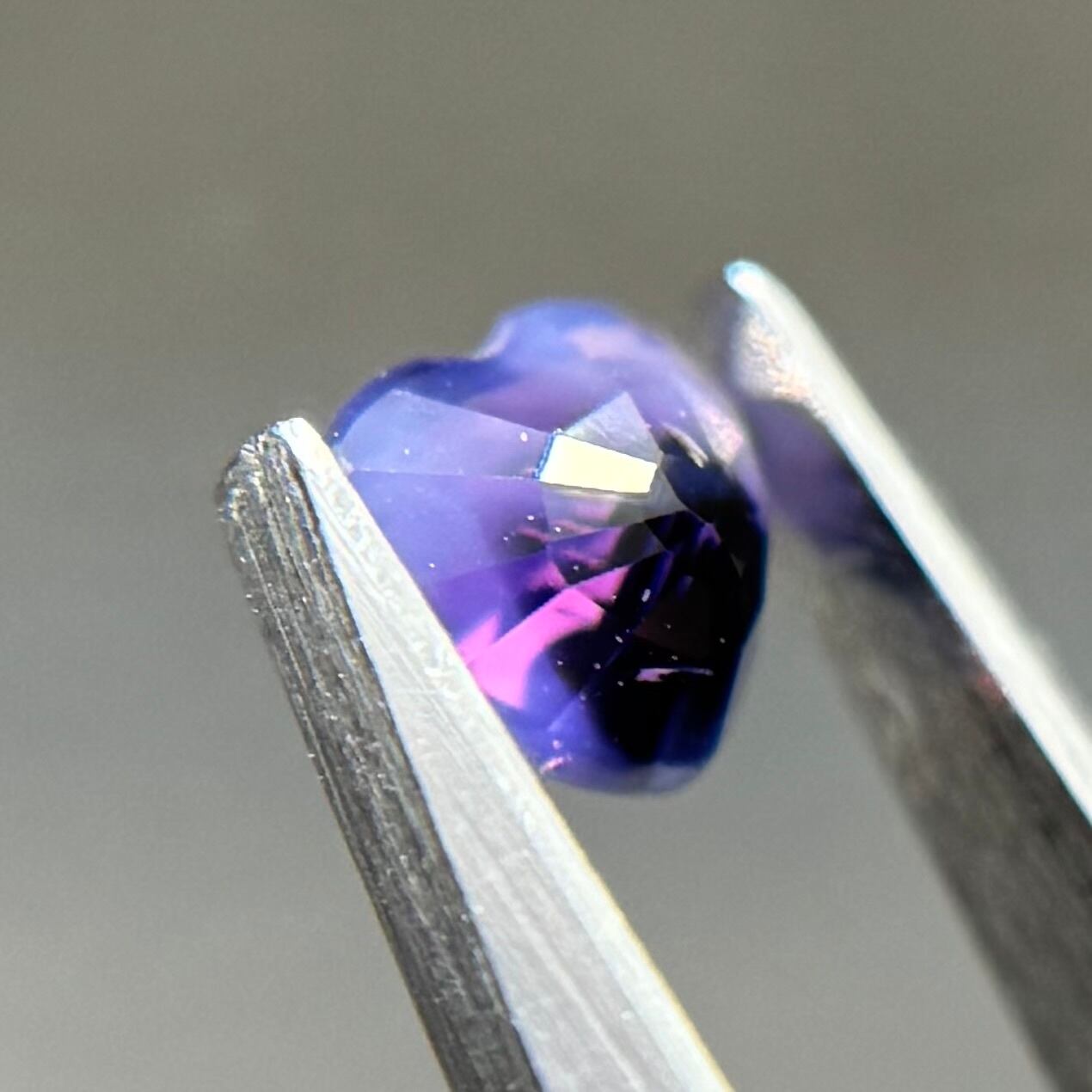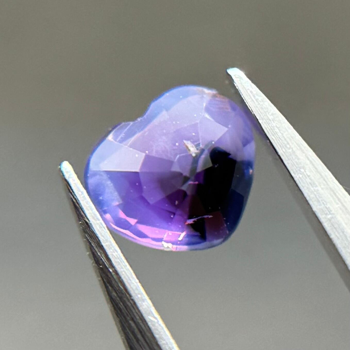 闇落ちハートなシルキーサファイアです。ピンクのテリの合間にある青だまりの奥底で青がキラッと煌めくのが堪らないです