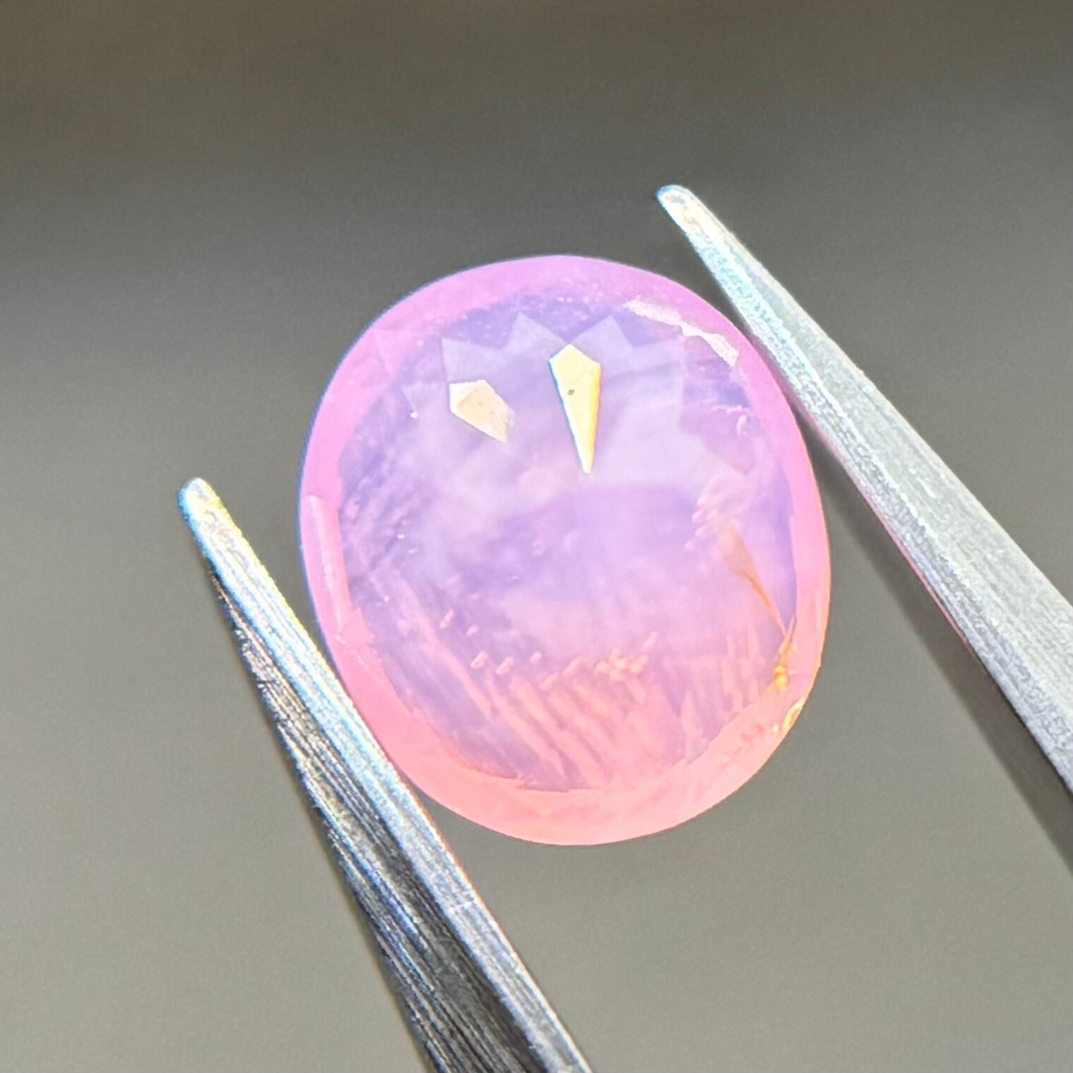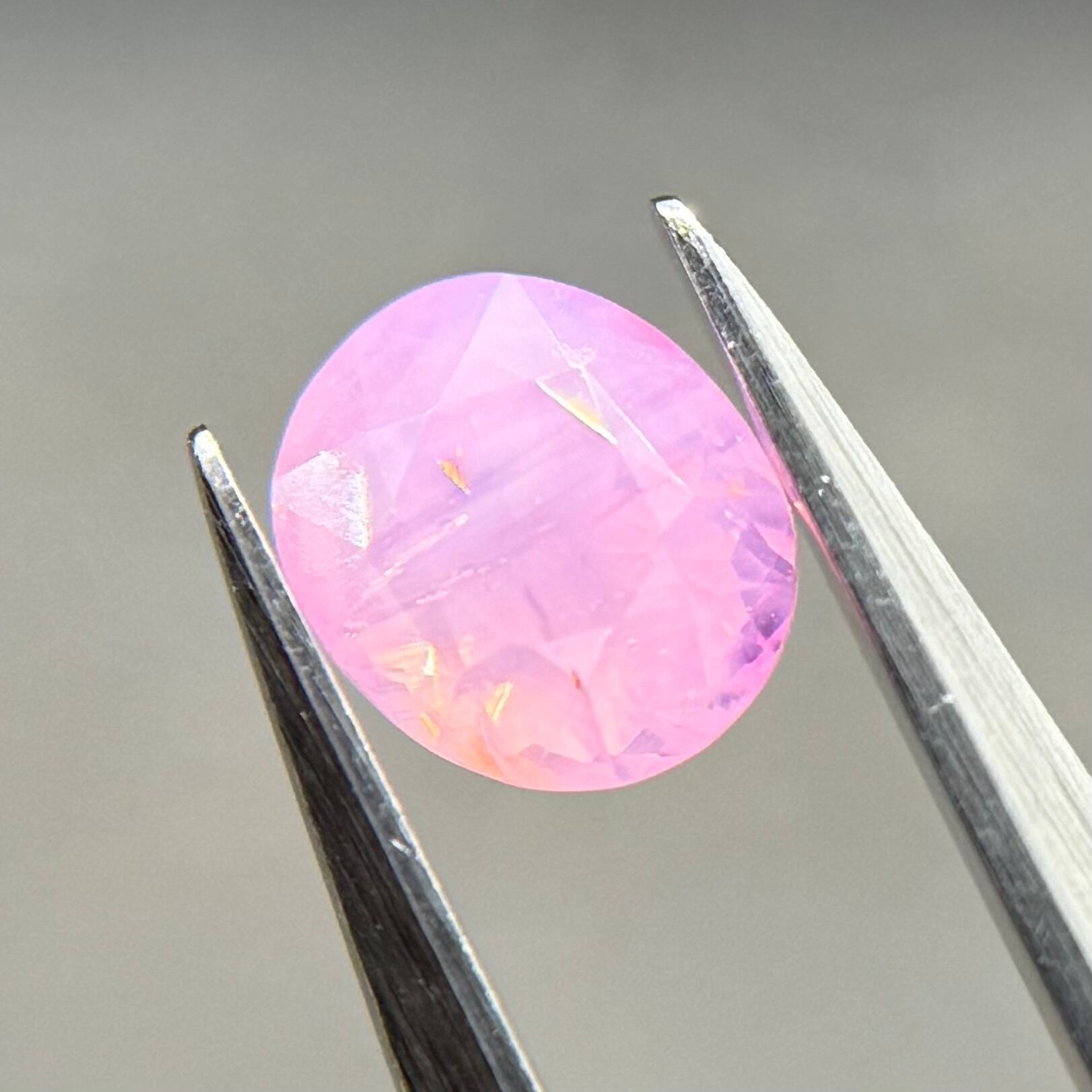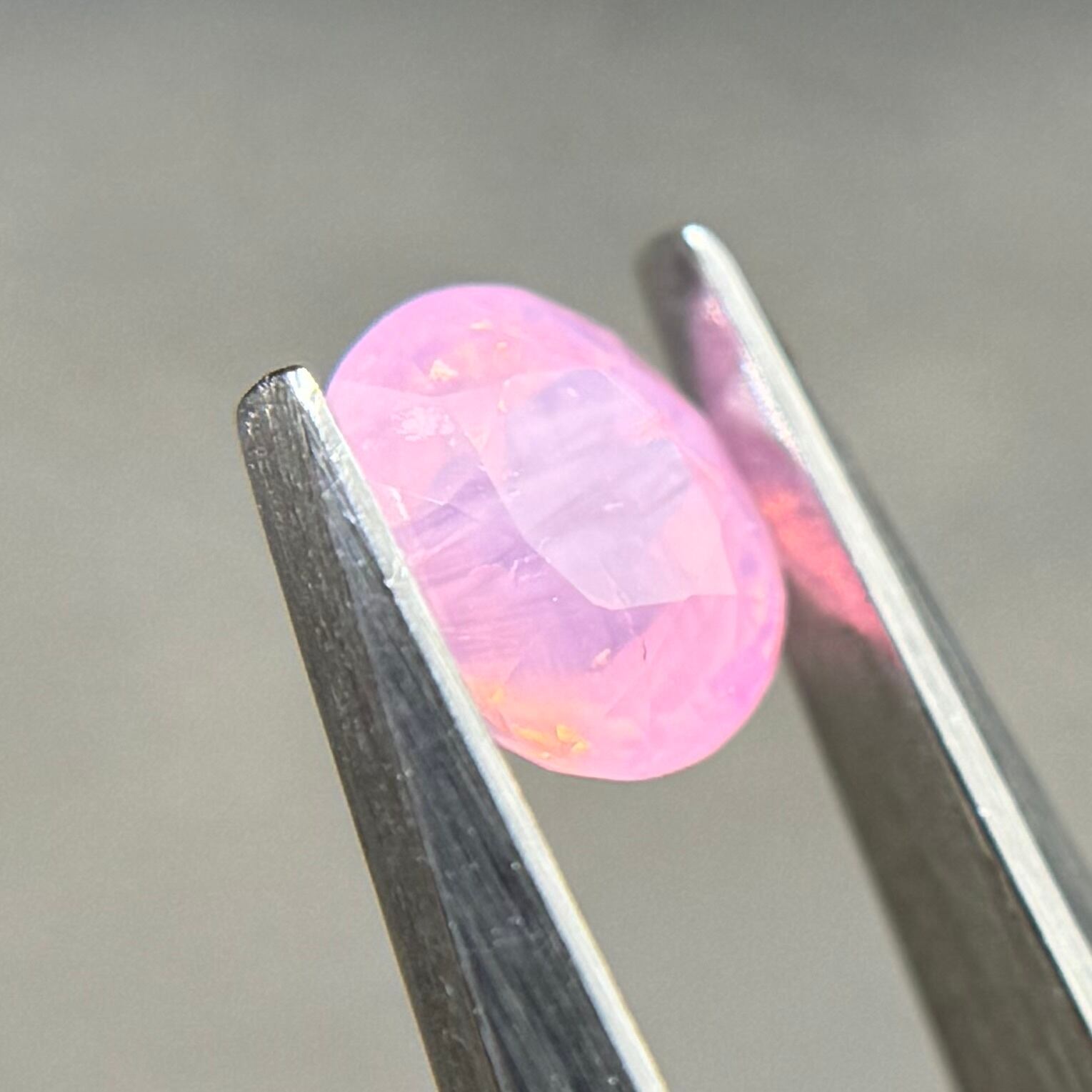 王道のミルキーな青みピンクに色だまりとオレンジのテリがアクセントになっており、可愛さと華やかさのバランスが絶妙なシルキーサファイアです大きさとお尻が深めでずっしりとしており、見応えがあります