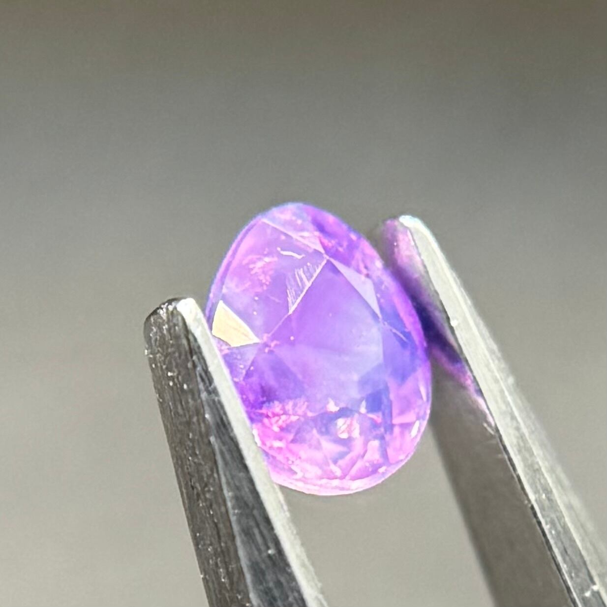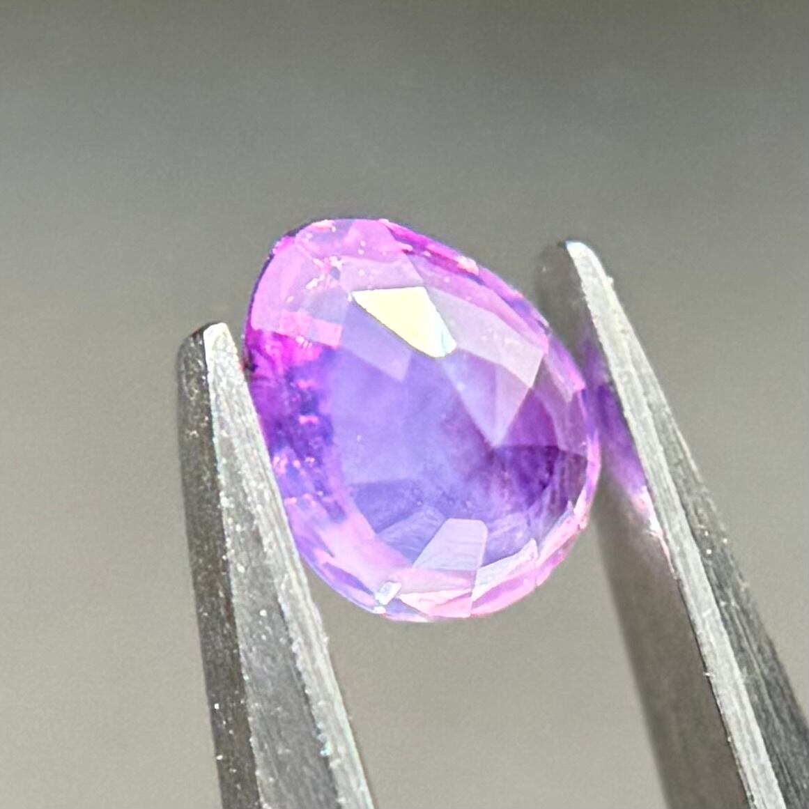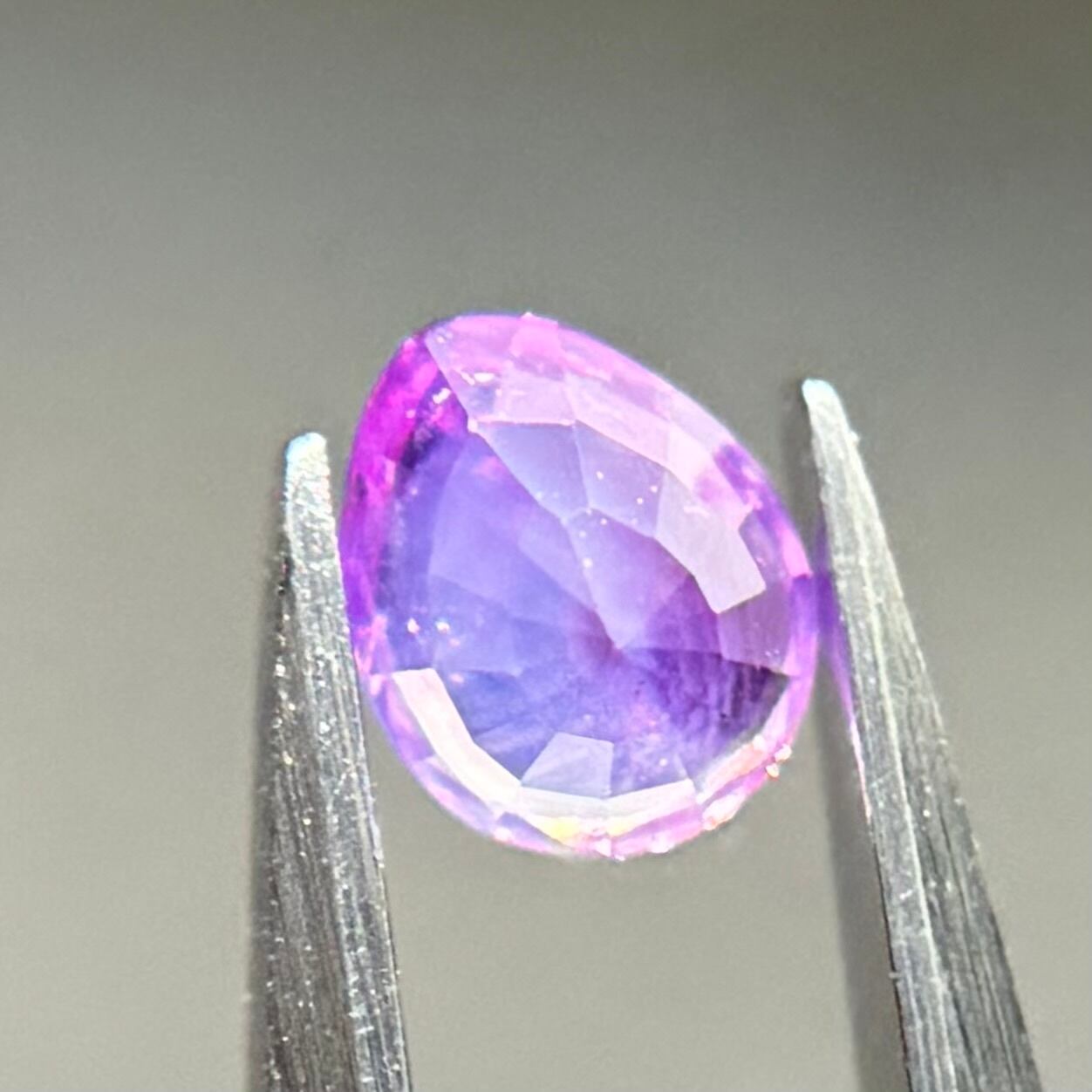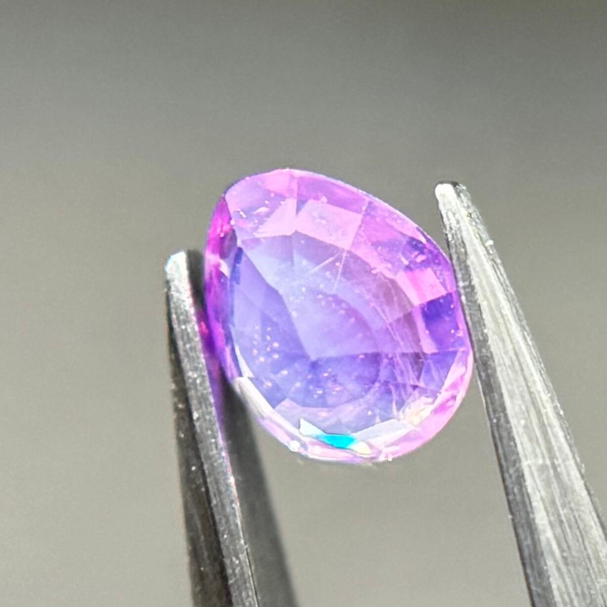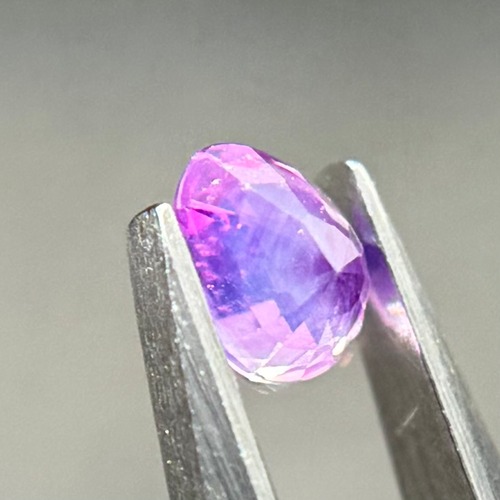 ちょうど半分で淡い紫と濃いピンク紫が楽しめるシルキーサファイアです。ぶどうのようなイチゴのようなミルクのような絶妙な色合いが可愛らしいです