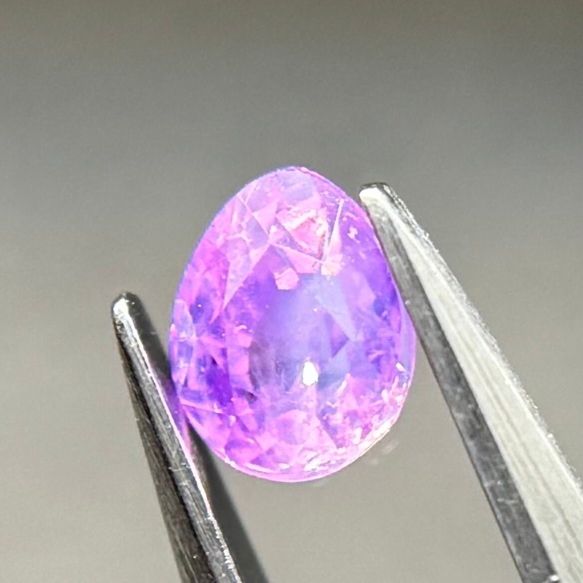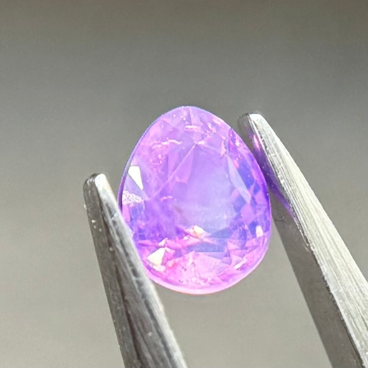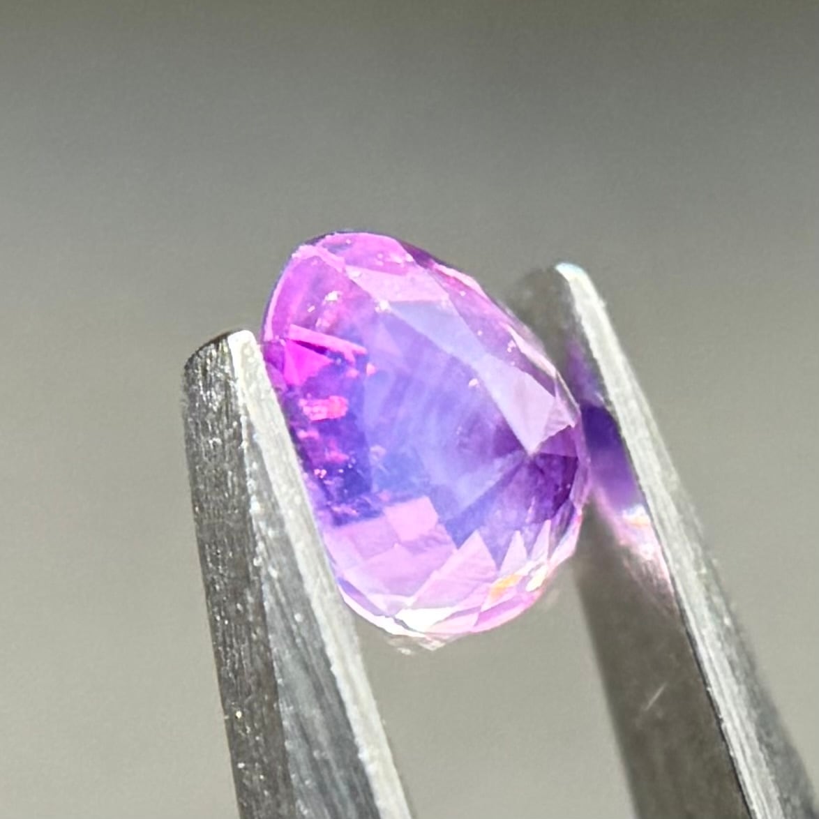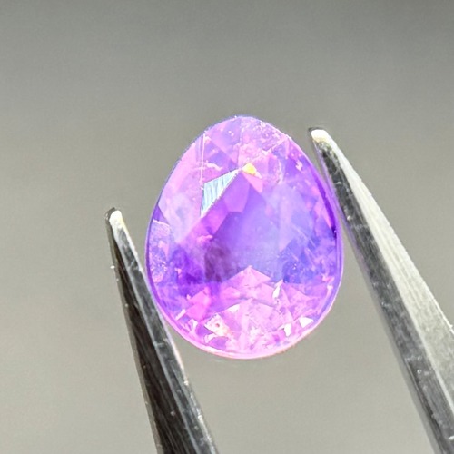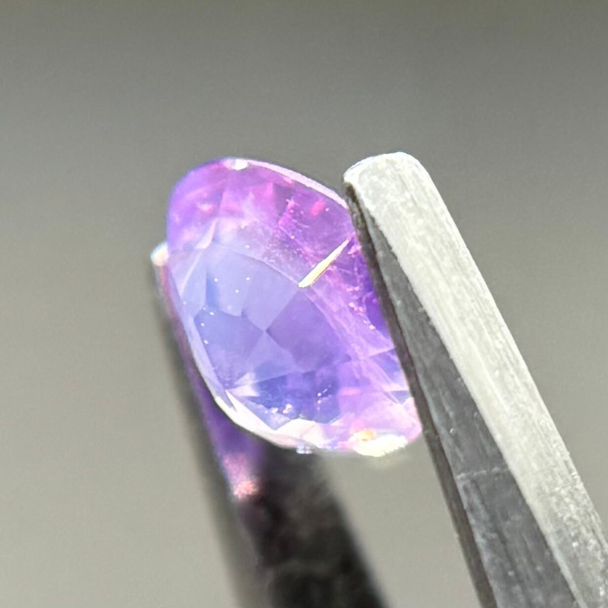 ちょうど半分で淡い紫と濃いピンク紫が楽しめるシルキーサファイアです。ぶどうのようなイチゴのようなミルクのような絶妙な色合いが可愛らしいです