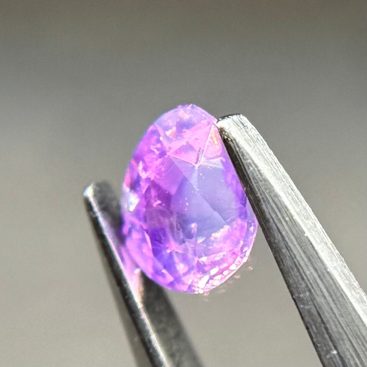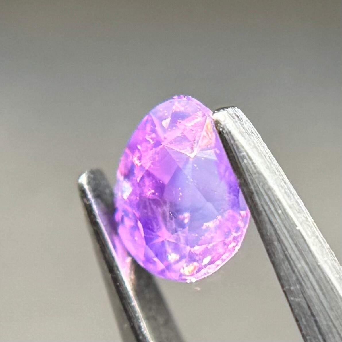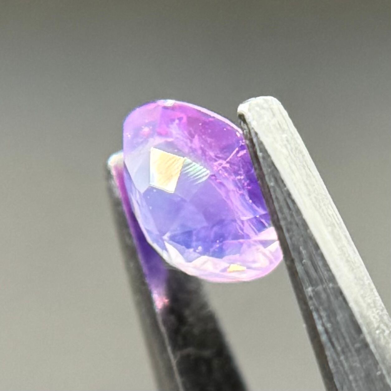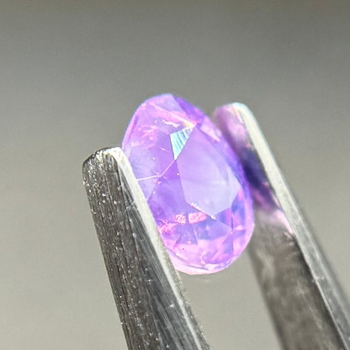 ちょうど半分で淡い紫と濃いピンク紫が楽しめるシルキーサファイアです。ぶどうのようなイチゴのようなミルクのような絶妙な色合いが可愛らしいです