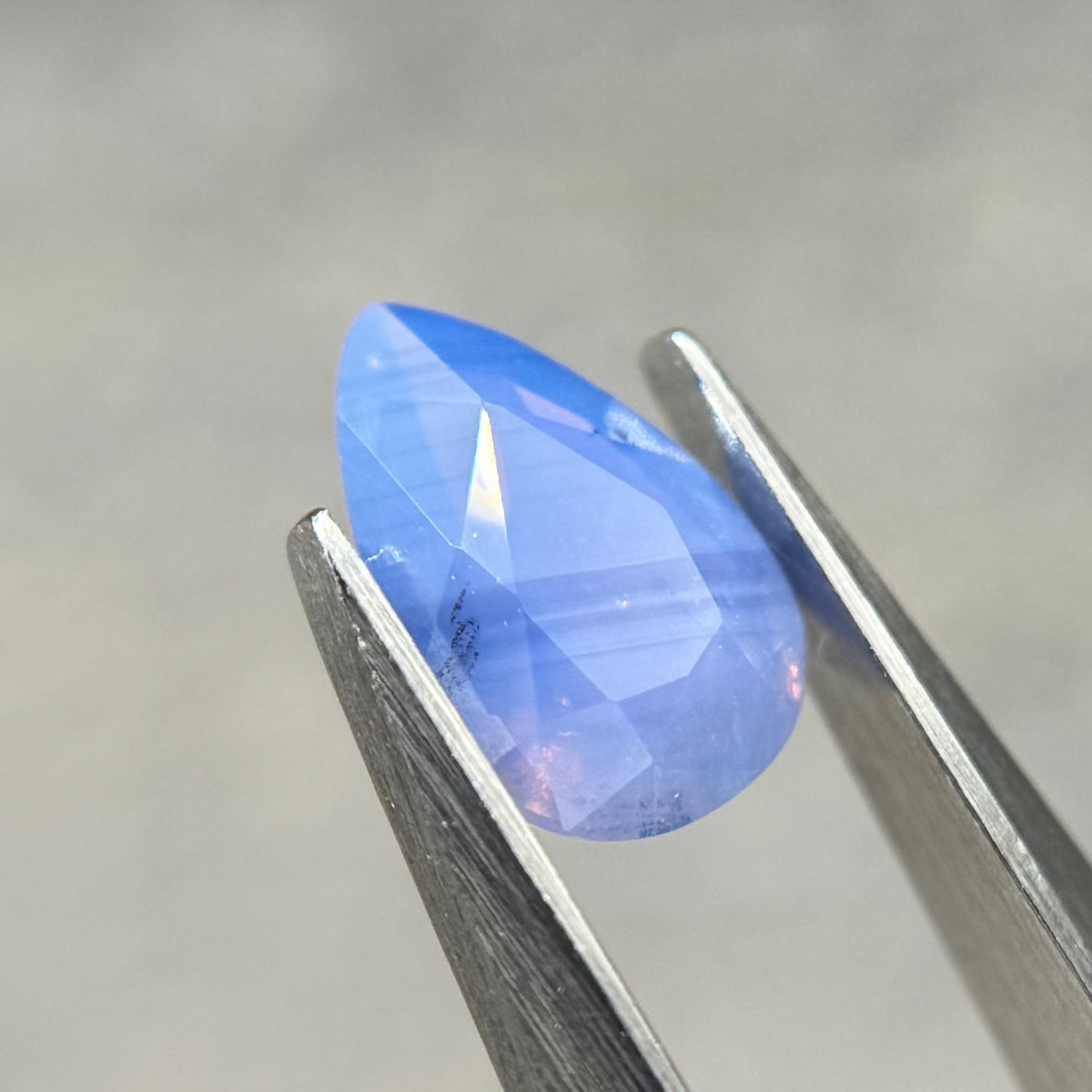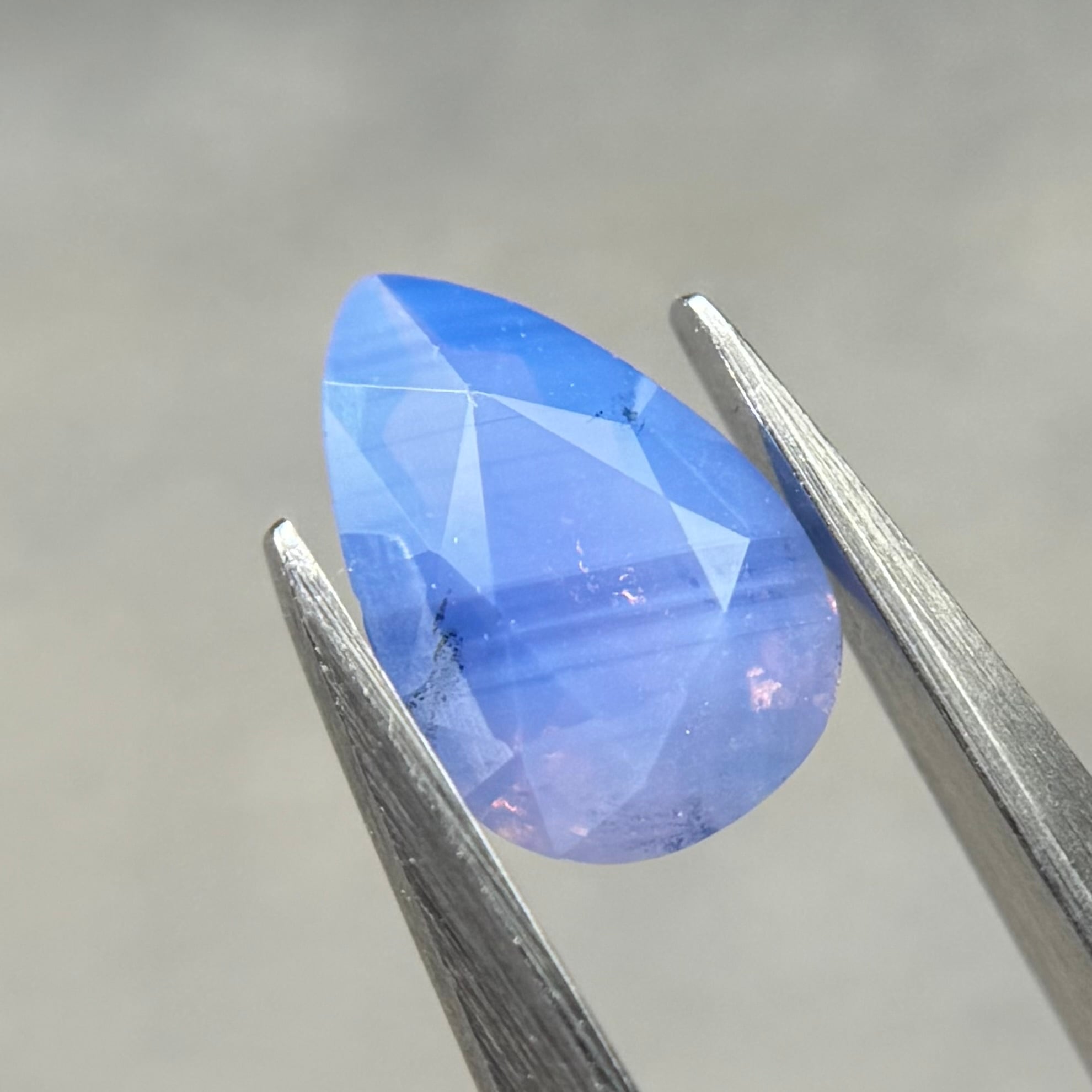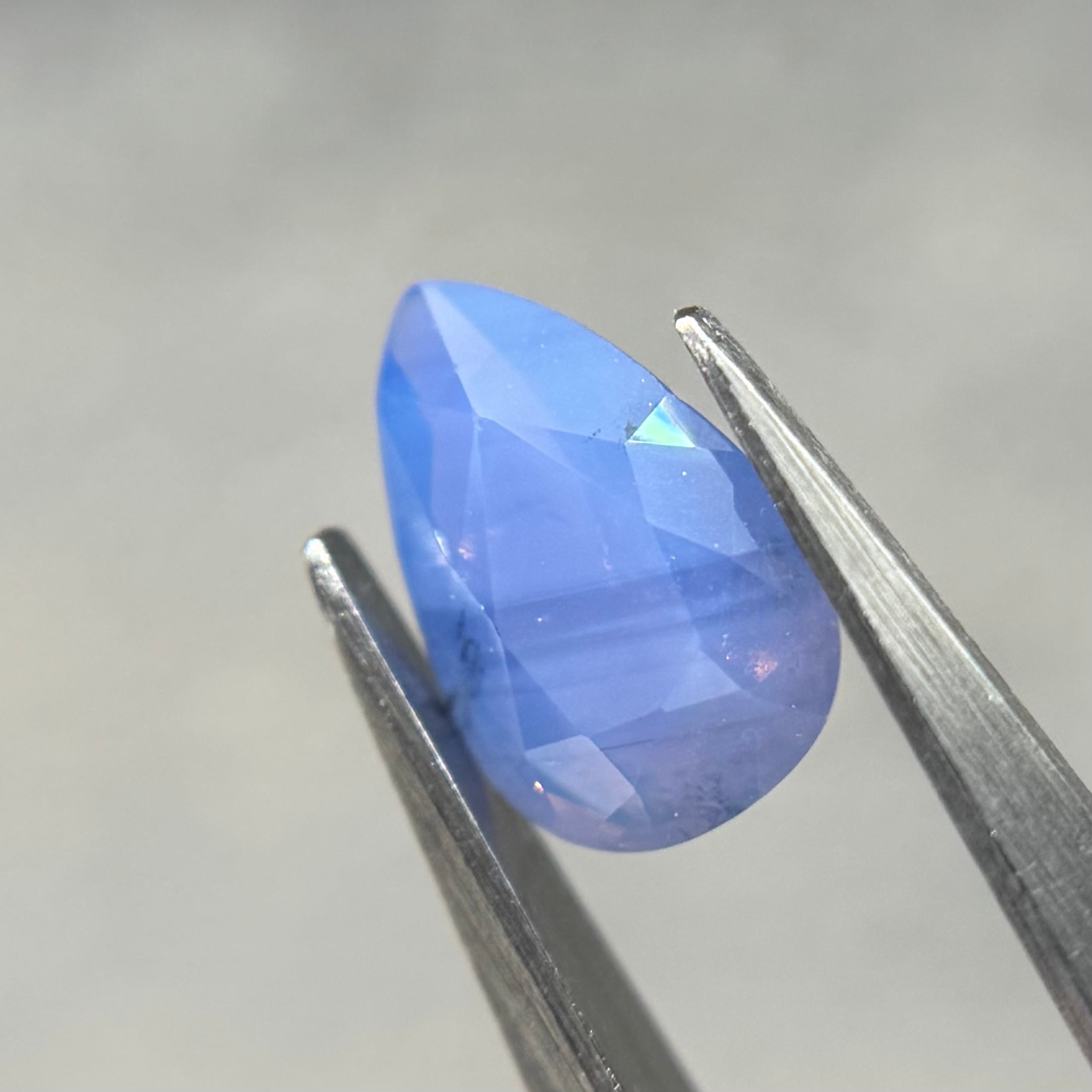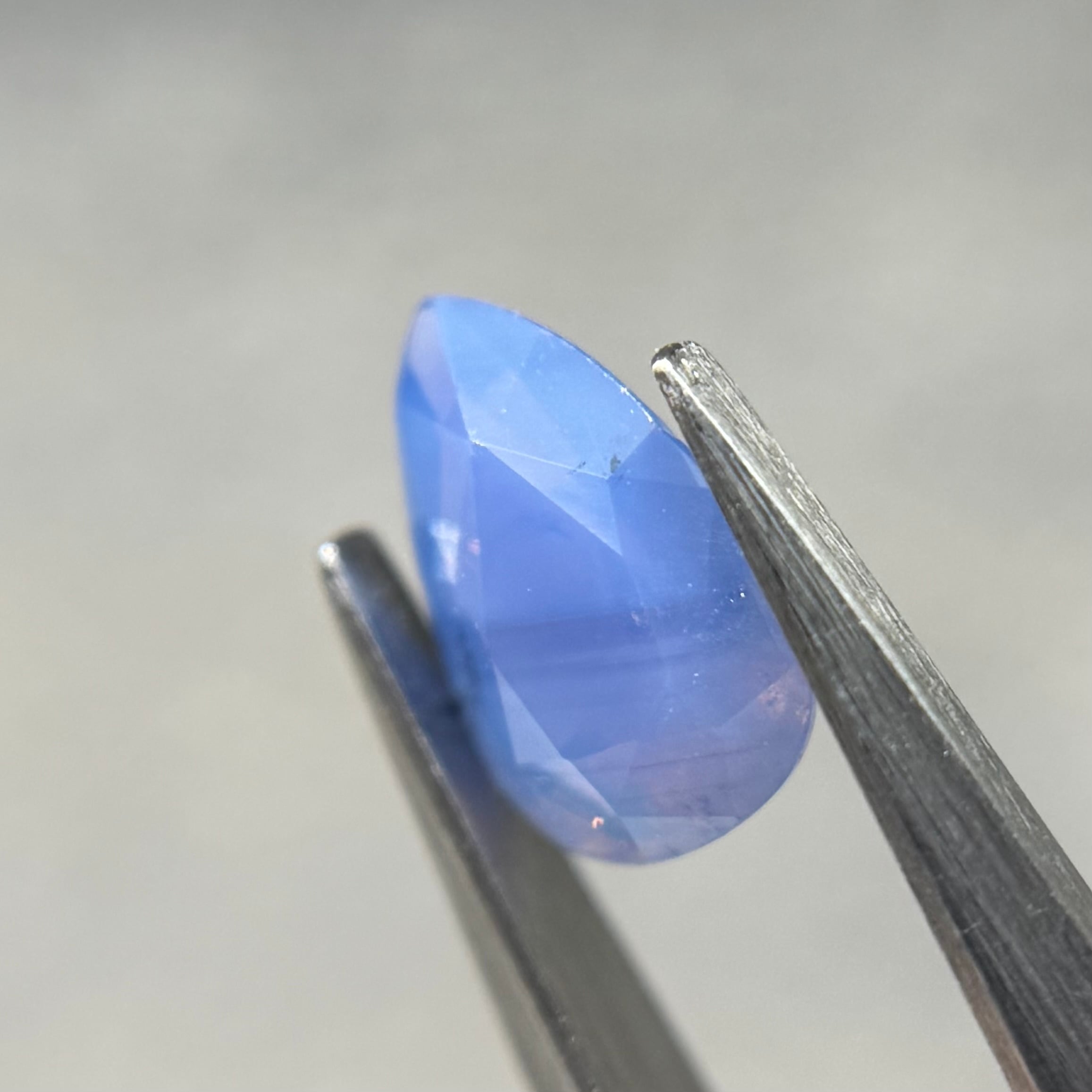 ミルキーなベースの奥側で暖色系のテリがゆらめき、色帯バンドがまた絶妙に入っている贅沢なシルキーサファイアです。1ctUPで見応えがあります