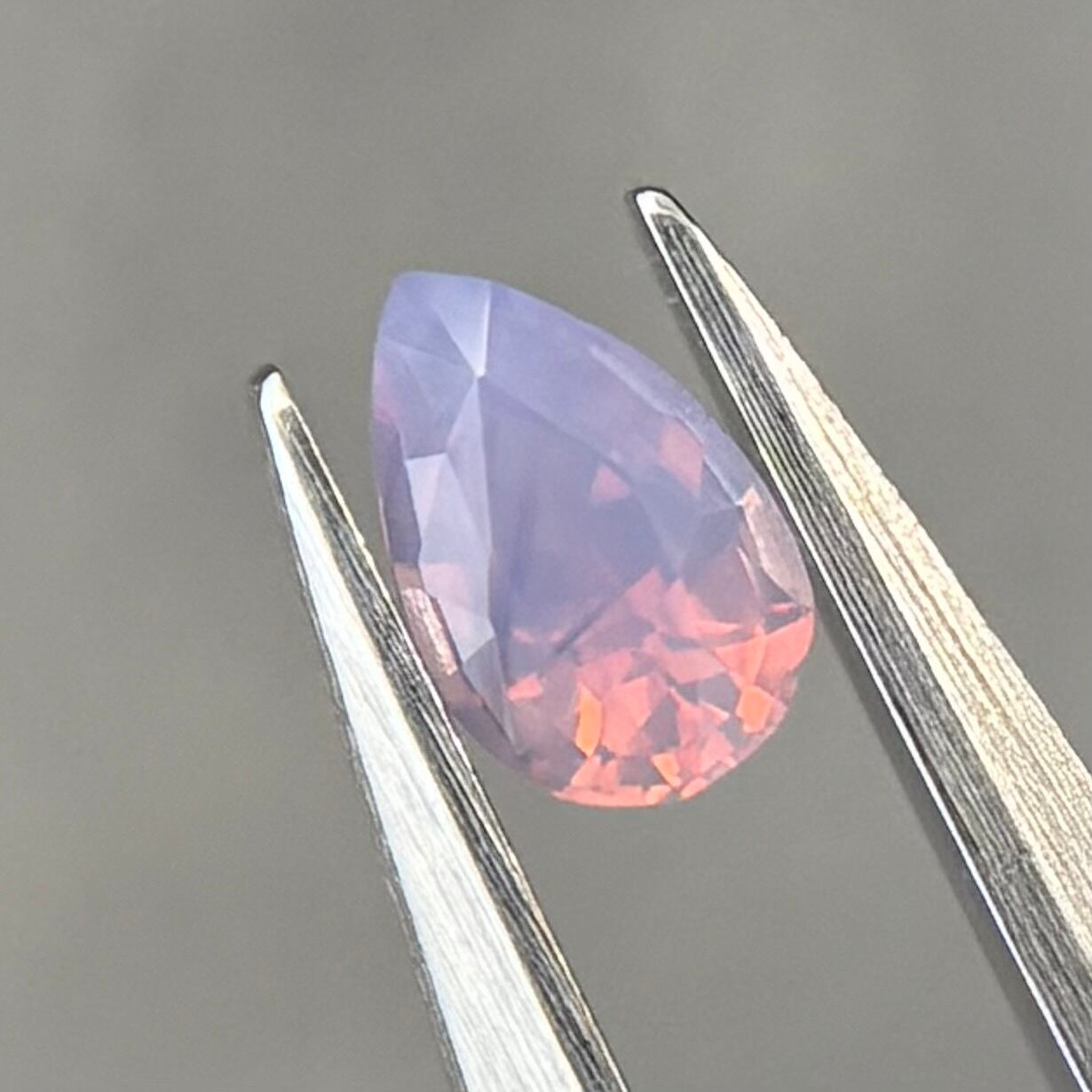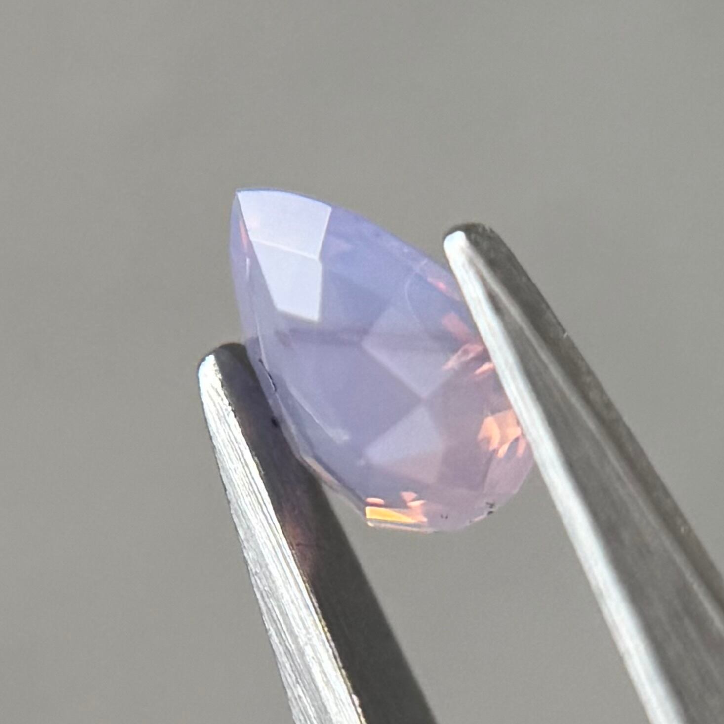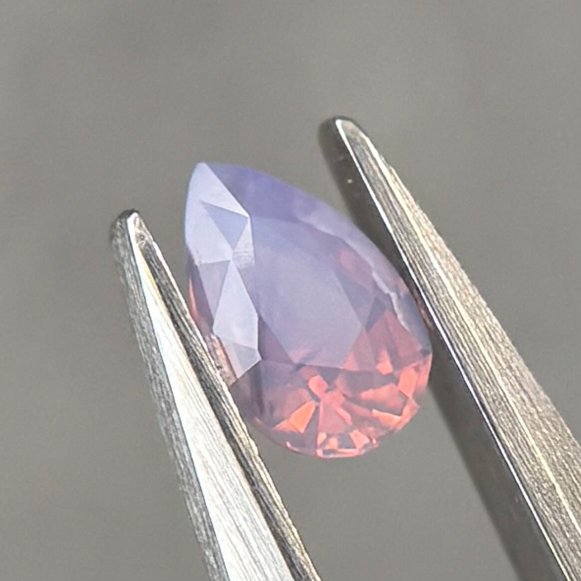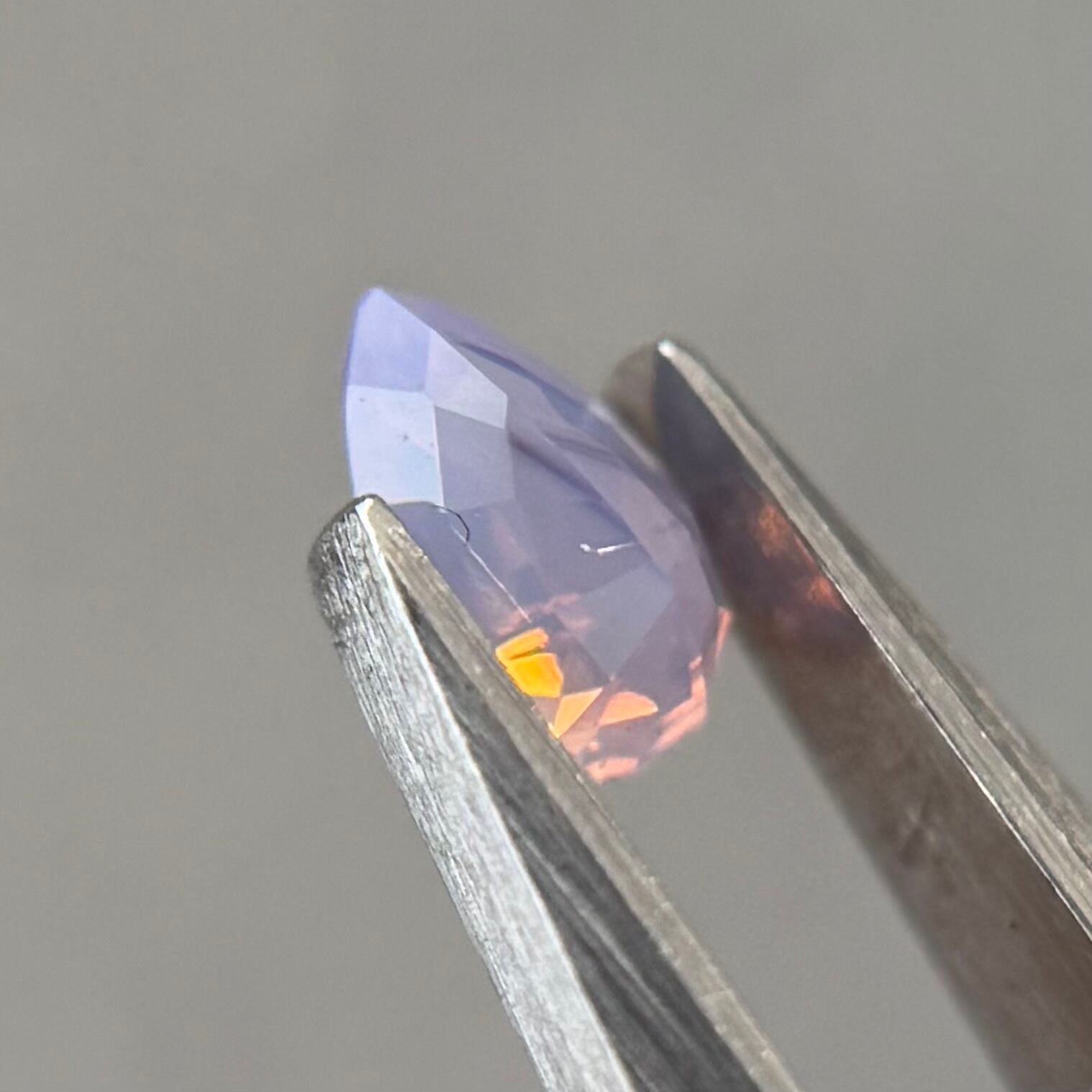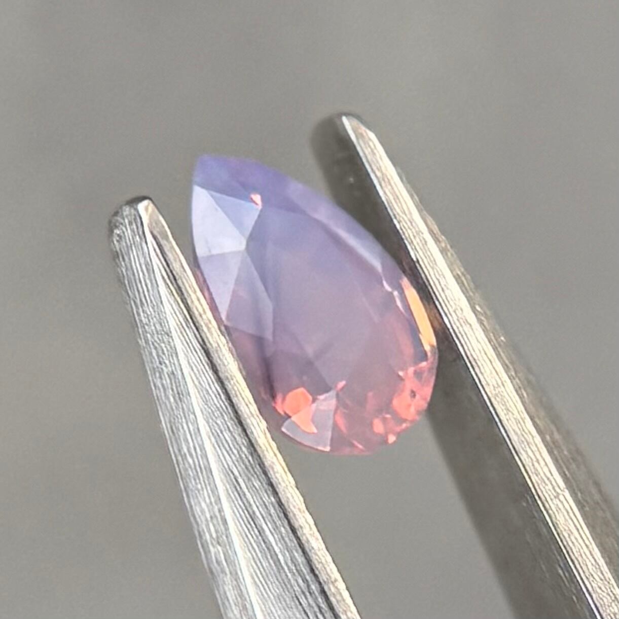 暖色系のテリがまるでマジックアワーのように煌めくシルキーサファイアです。紫とも青とも取れる不思議な色合いで、インクルージョンが縞模様のようで可愛らしいです
